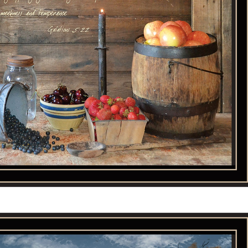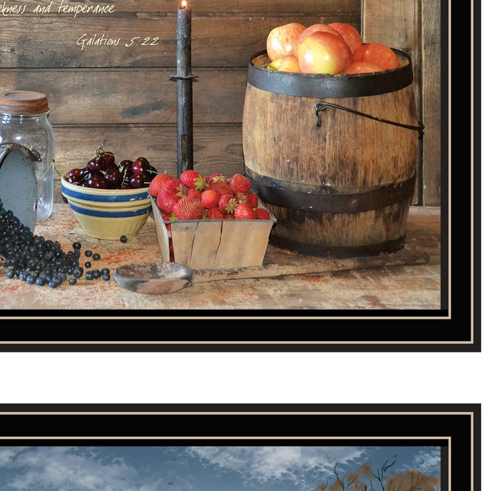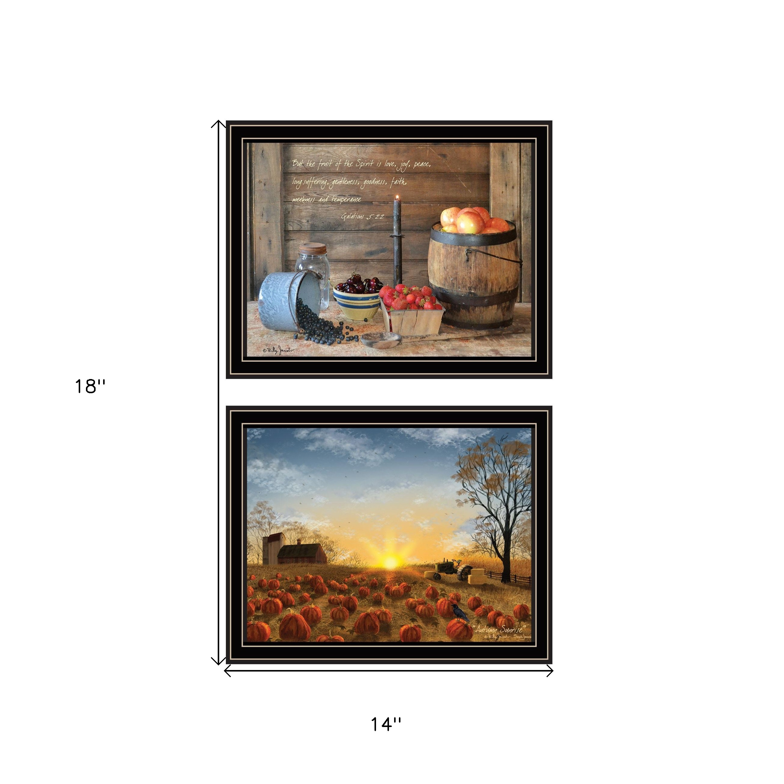 The set of two vignette autumn sunrise and fruit of the spirit black framed wall art is the perfect decorative accessory for your home. This acrylic painting is a way to express your artistic style and add some fashion to your walls. Reproduced for you on paper, this hanging decorative accent will be a trendy and fashionable way to dress your walls. Hang on your wall to add some up to date fashion and decoration. Instantly liven up your space with this art that brings color and dimension to your walls. 14-inch h x 18-inch w x 1-inch d.