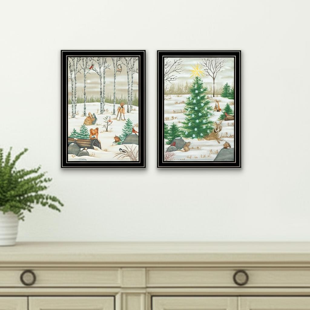 Set a festive christmas mood with this set of two woodland "critters for christmas" black framed wall art. This acrylic painting is a way to express your artistic style and add some fashion to your walls. Reproduced for you on paper, this hanging decorative accent will be a trendy and fashionable way to dress your walls. Adding this hanging wall art to your space to make your room feel more finished and attractive. Utilize this opportunity to create a focal point in the room with this fabulous wall decor option. 18-inch h x 14-inch w x 1-inch d.