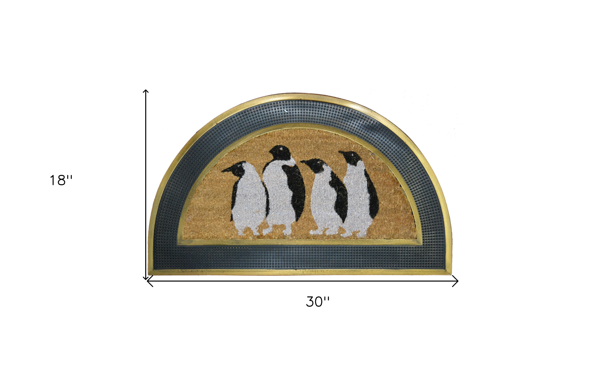Ready to withstand heavy foot traffic, this 18-inch x 30-inch beige and black rubber and coir outdoor semi circle door mat is an ideal option for the front door or entrance way of your home or business. Crafted from rubber and coir, this mat is not only functional but is a visually appealing accessory to welcome people to your home or business. Add this decorative mat to create a practical yet inviting welcome to all who enter. 18-inch H x 30-inch W x 1-inch D