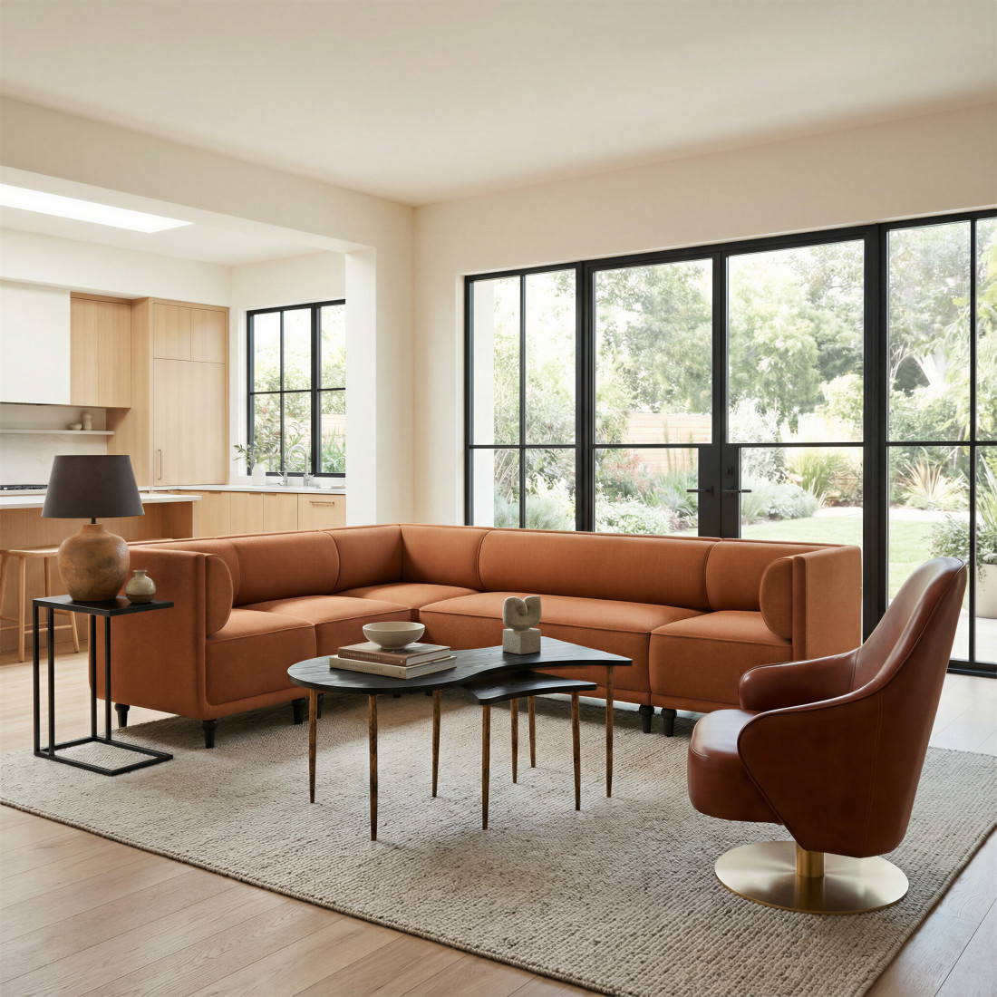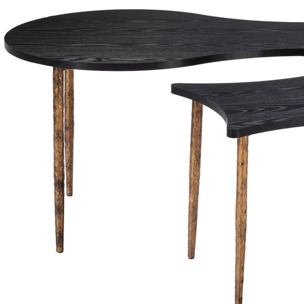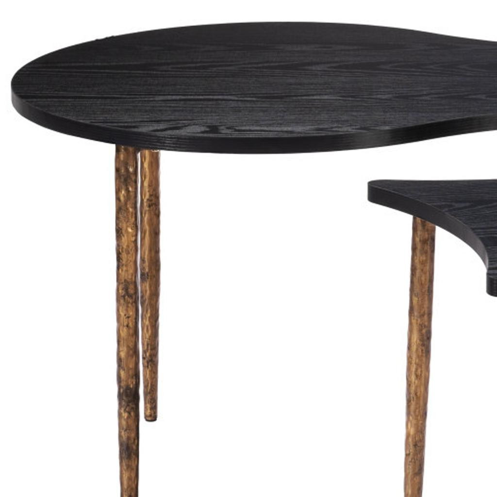 bunching coffee tables, form bunching coffee tables, free form bunching coffee tables, wood steel free form bunching, set black bronze wood |