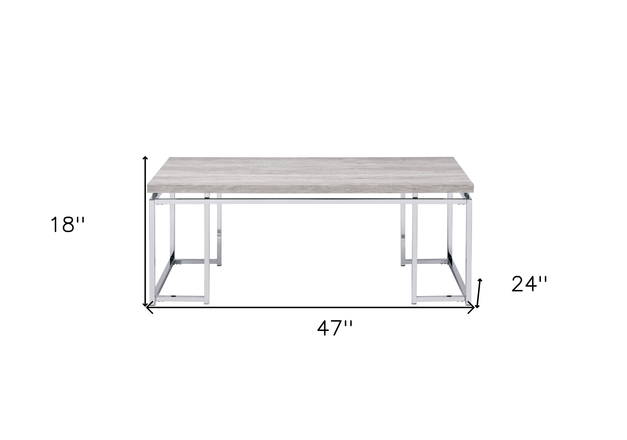 wood metal frame coffee table, metal frame coffee table, frame coffee table, 47" oak silver wood, oak silver wood metal frame |