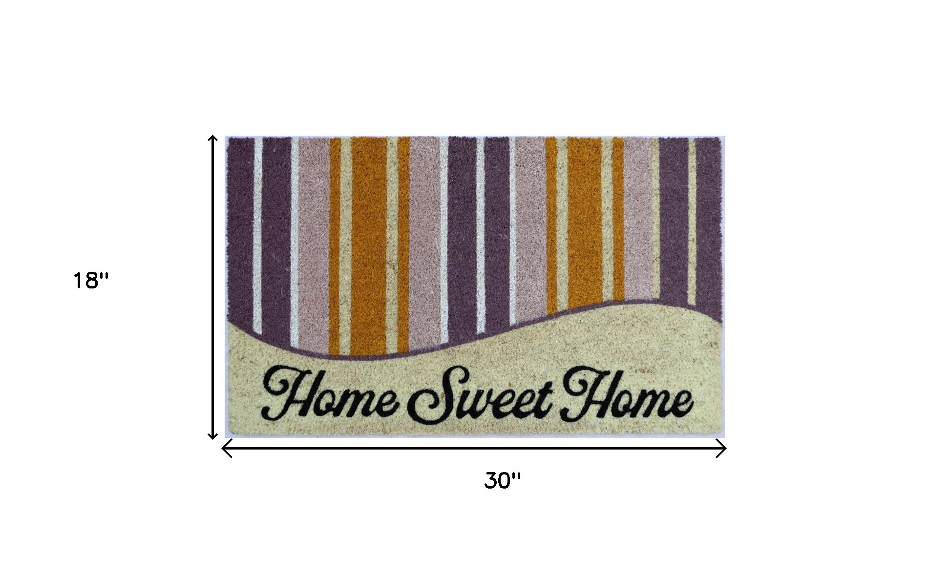 Known for it's extreme durability and ability to withstand heavy foot traffic, this 18-inch x 30-inch beige and black coir home sweet home outdoor door mat is an ideal option for the front door or entrance way of your home or business. Crafted from coconut husks, this mat is not only functional but is an an eco-friendly and visually appealing accessory. The naturally bristled texture of coir is an efficient way to clean dirt and mud from shoes and is easy to clean and maintain. Add this decorative mat to create a practical yet inviting welcome to all who enter. 18-inch H x 30-inch W x 0.5-inch D