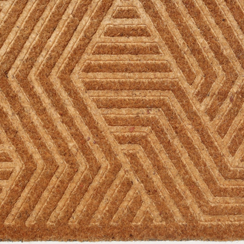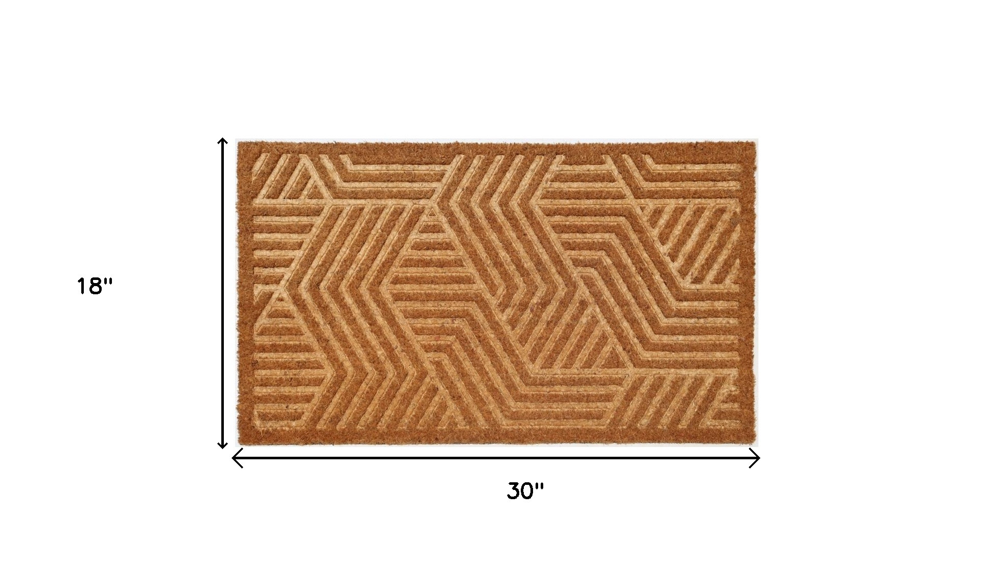 Known for it's extreme durability and ability to withstand heavy foot traffic, this 18-inch x 30-inch beige and white coir outdoor door mat is an ideal option for the front door or entrance way of your home or business. Crafted from coconut husks, this mat is not only functional but is an an eco-friendly and visually appealing accessory. The naturally bristled texture of coir is an efficient way to clean dirt and mud from shoes and is easy to clean and maintain. Add this decorative mat to create a practical yet inviting welcome to all who enter. 18-inch H x 30-inch W x 0.5-inch D
