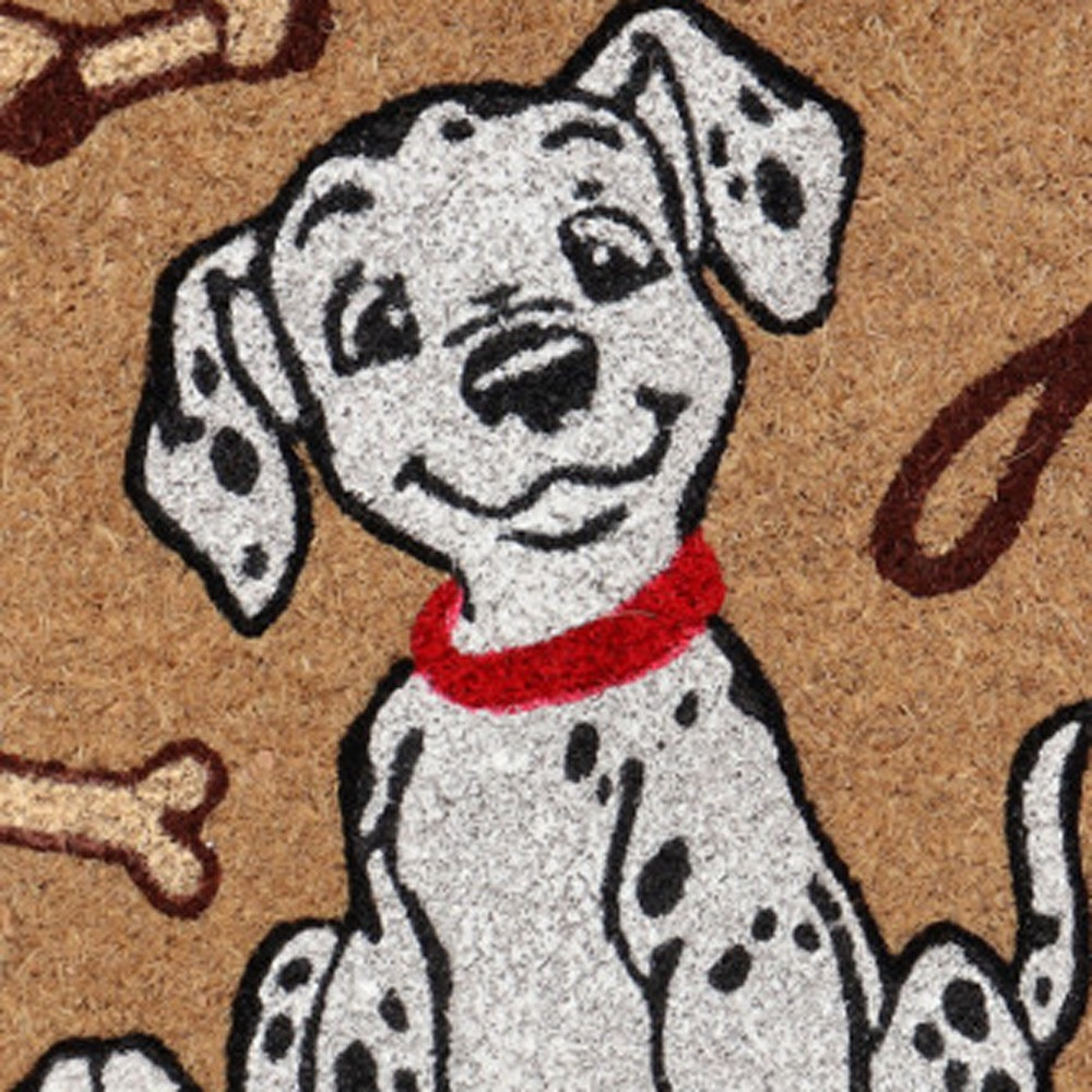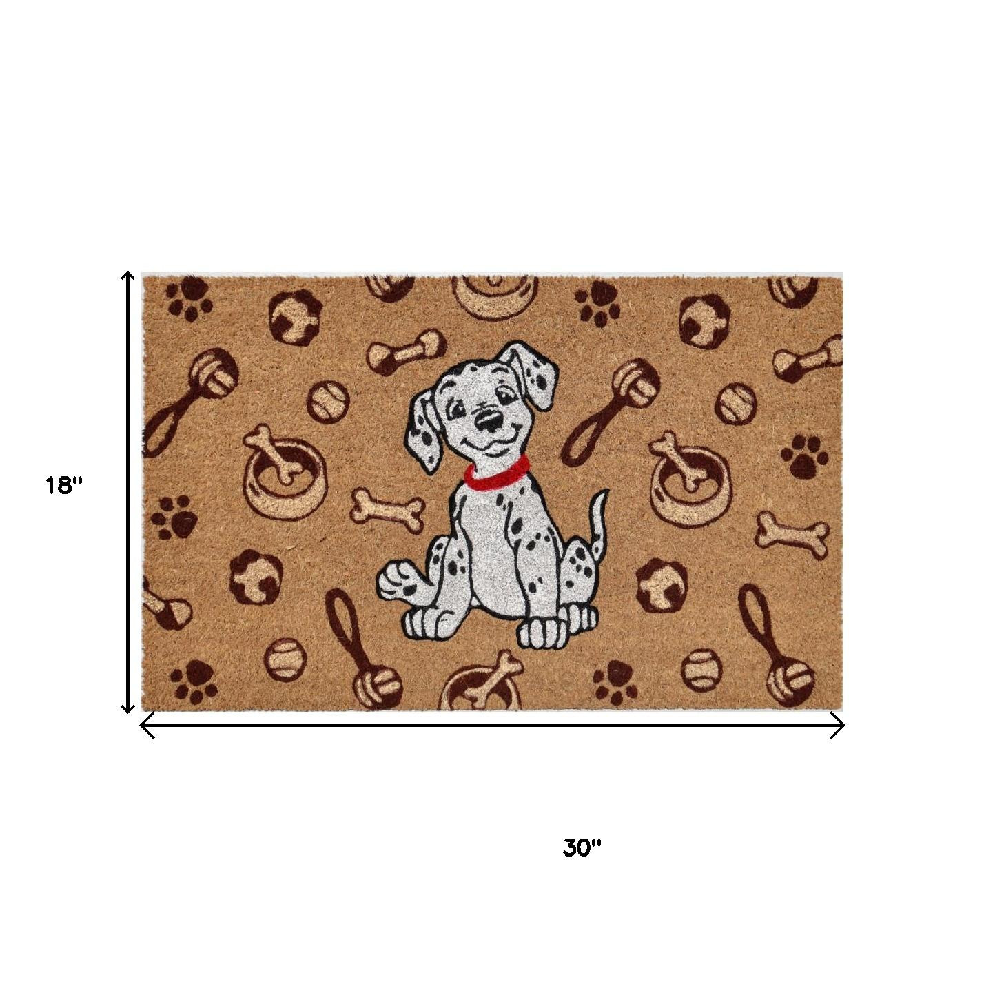 Known for it's extreme durability and ability to withstand heavy foot traffic, this 18-inch x 30-inch beige and white coir dog outdoor door mat is an ideal option for the front door or entrance way of your home or business. Crafted from coconut husks, this mat is not only functional but is an an eco-friendly and visually appealing accessory. The naturally bristled texture of coir is an efficient way to clean dirt and mud from shoes and is easy to clean and maintain. Add this decorative mat to create a practical yet inviting welcome to all who enter. 18-inch H x 30-inch W x 0.5-inch D