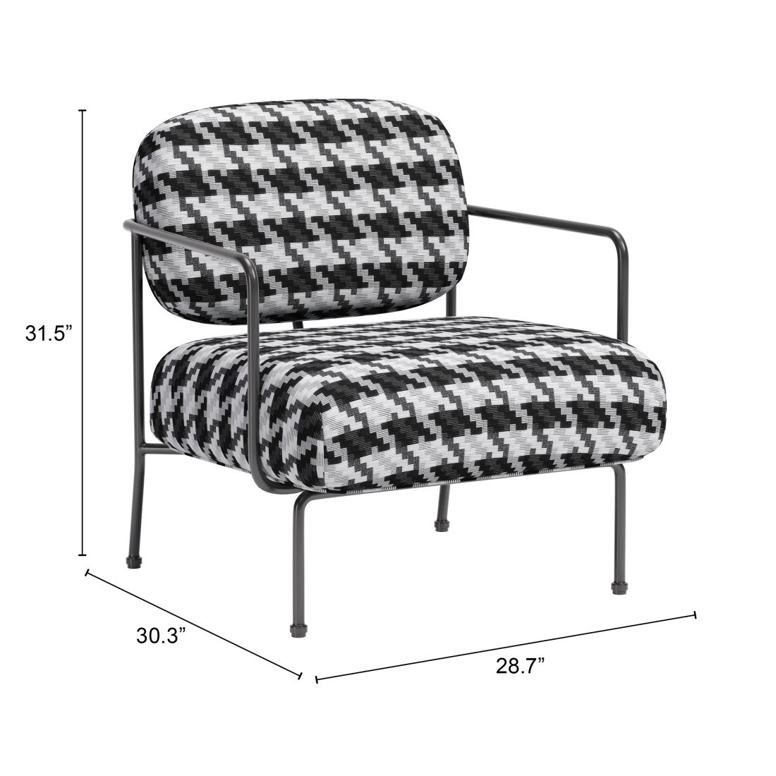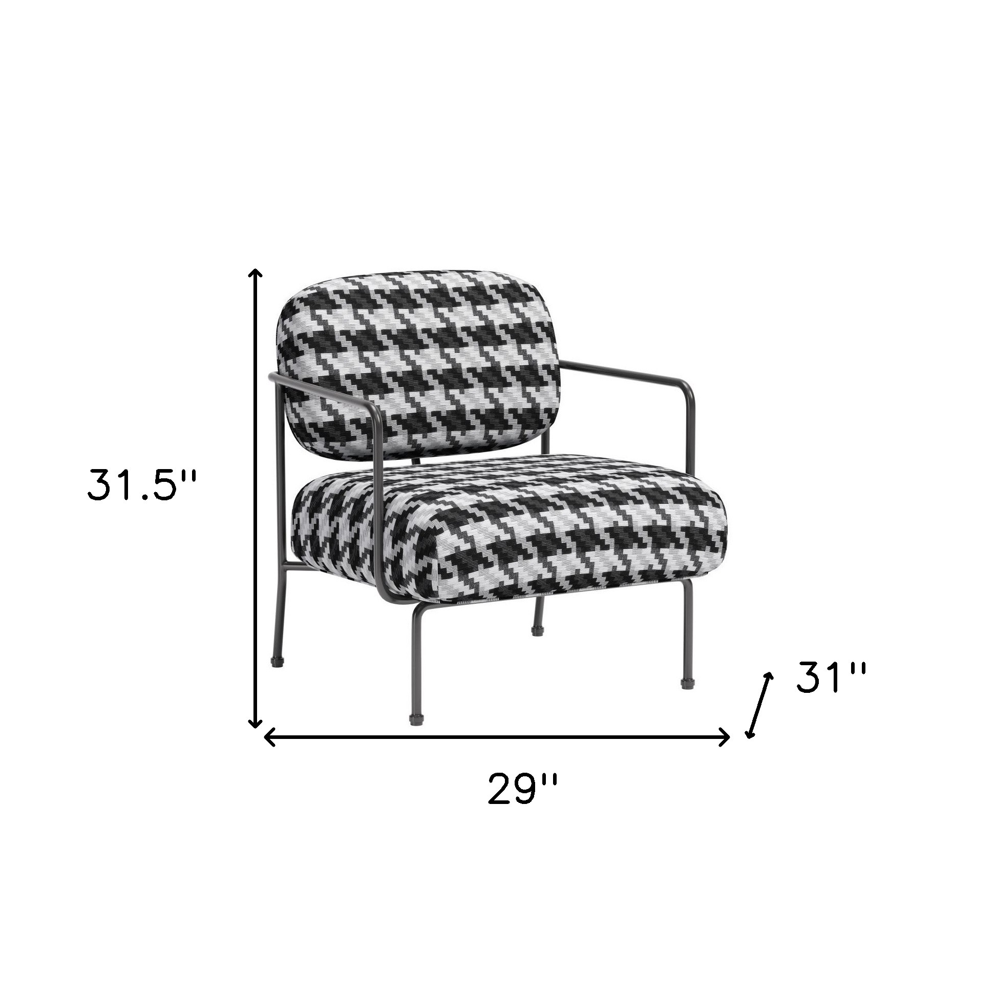 black upholstered houndstooth arm chair, upholstered houndstooth arm chair, houndstooth arm chair, white black upholstered houndstooth arm, 29" black white black upholstered |
