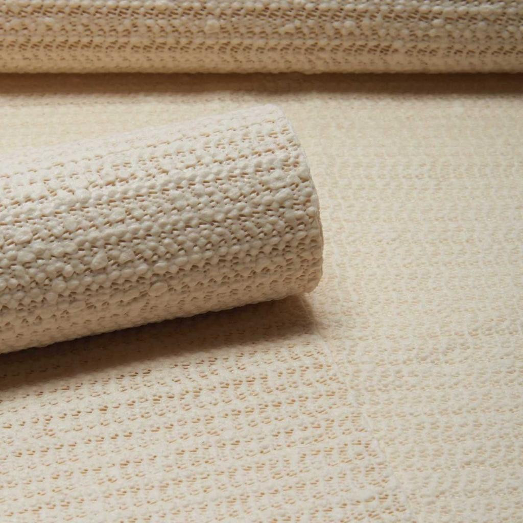 The 10-foot x 14-foot ivory striped weave rug pad enhances your flooring while providing essential support and comfort. Designed in a rectangular shape, this rug pad fits perfectly under larger area rugs, ensuring stability and cushioning. Made from durable polyvinyl chloride, it offers superior grip to prevent slipping and sliding, keeping your rug securely in place. The ivory striped weave adds a touch of elegance and sophistication, making it an attractive base for any decor. Ideal for high-traffic areas, this rug pad not only prolongs the life of your rugs but also protects your floors from scratches and wear. Elevate your home's ambiance with this functional and stylish accessory that combines practicality with aesthetic appeal. 114-inch h x 162-inch w x 0.2-inch d.