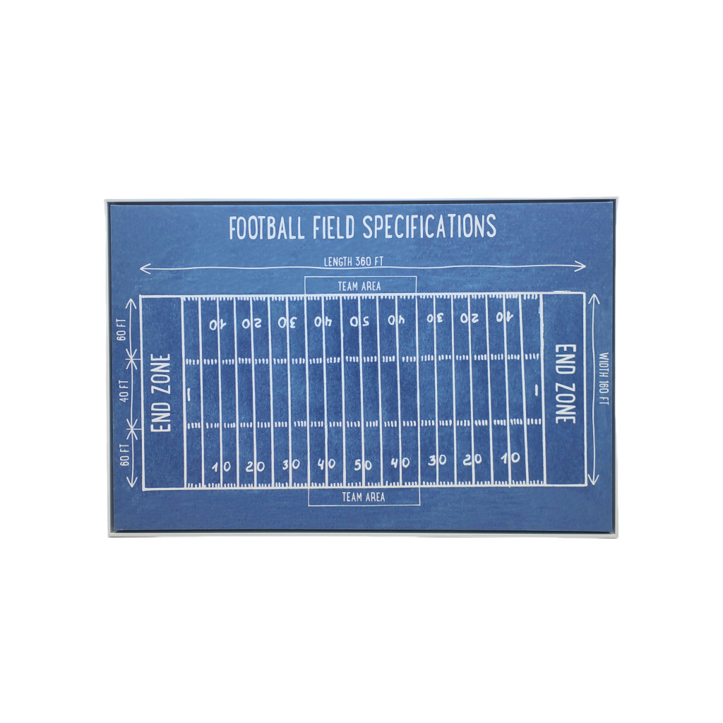 The football field white floater frame print wall art is the perfect decorative accessory for your home. This watercolor painting is a way to express your artistic style and add some fashion to your walls. Reproduced for you on canvas, this hanging decorative accent will be a trendy and fashionable way to dress your walls. Utilize this opportunity to create a focal point in the room with this fabulous wall decor option. Instantly liven up your space with this art that brings color and dimension to your walls. 24-inch h x 36-inch w x 1.37-inch d.