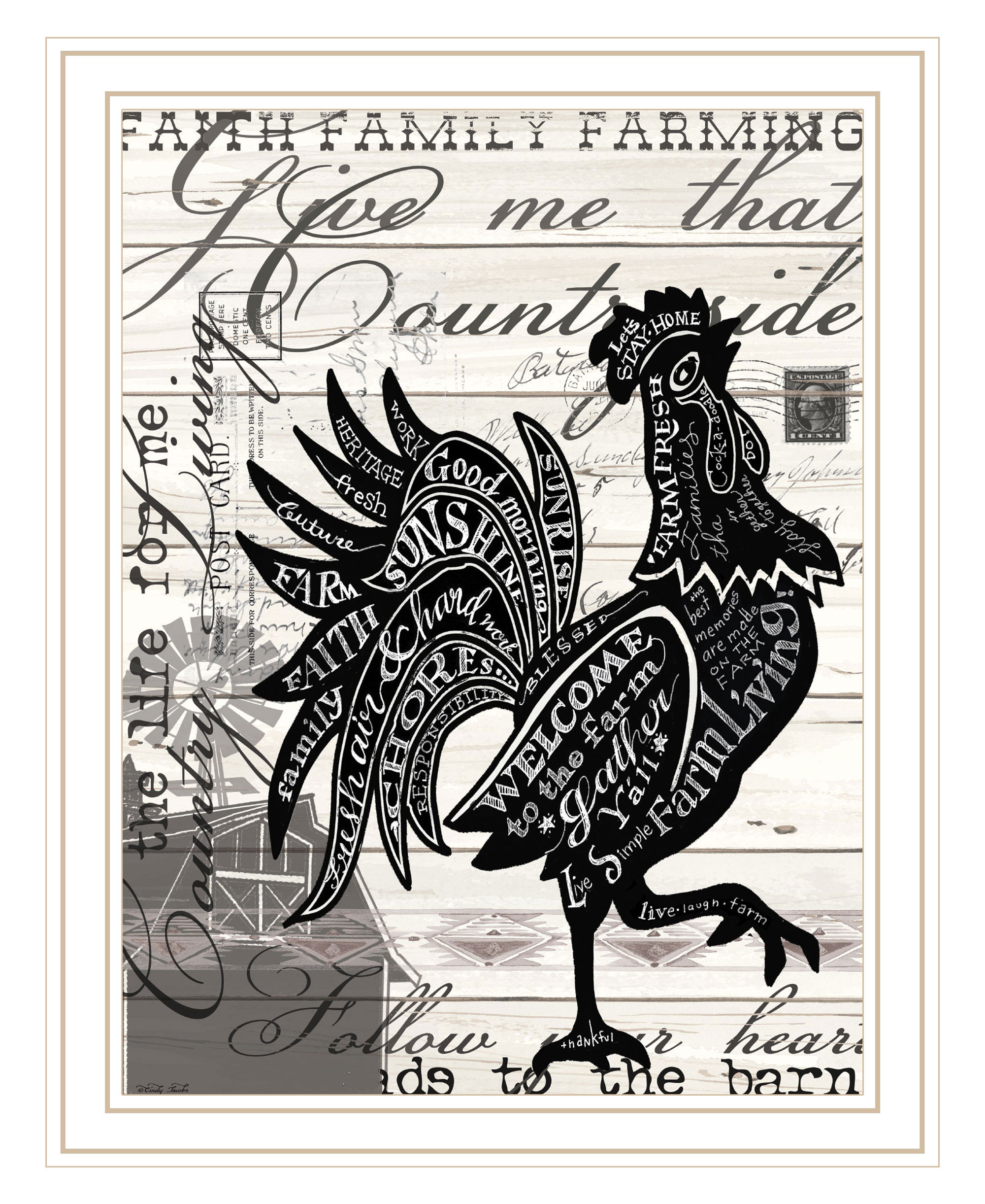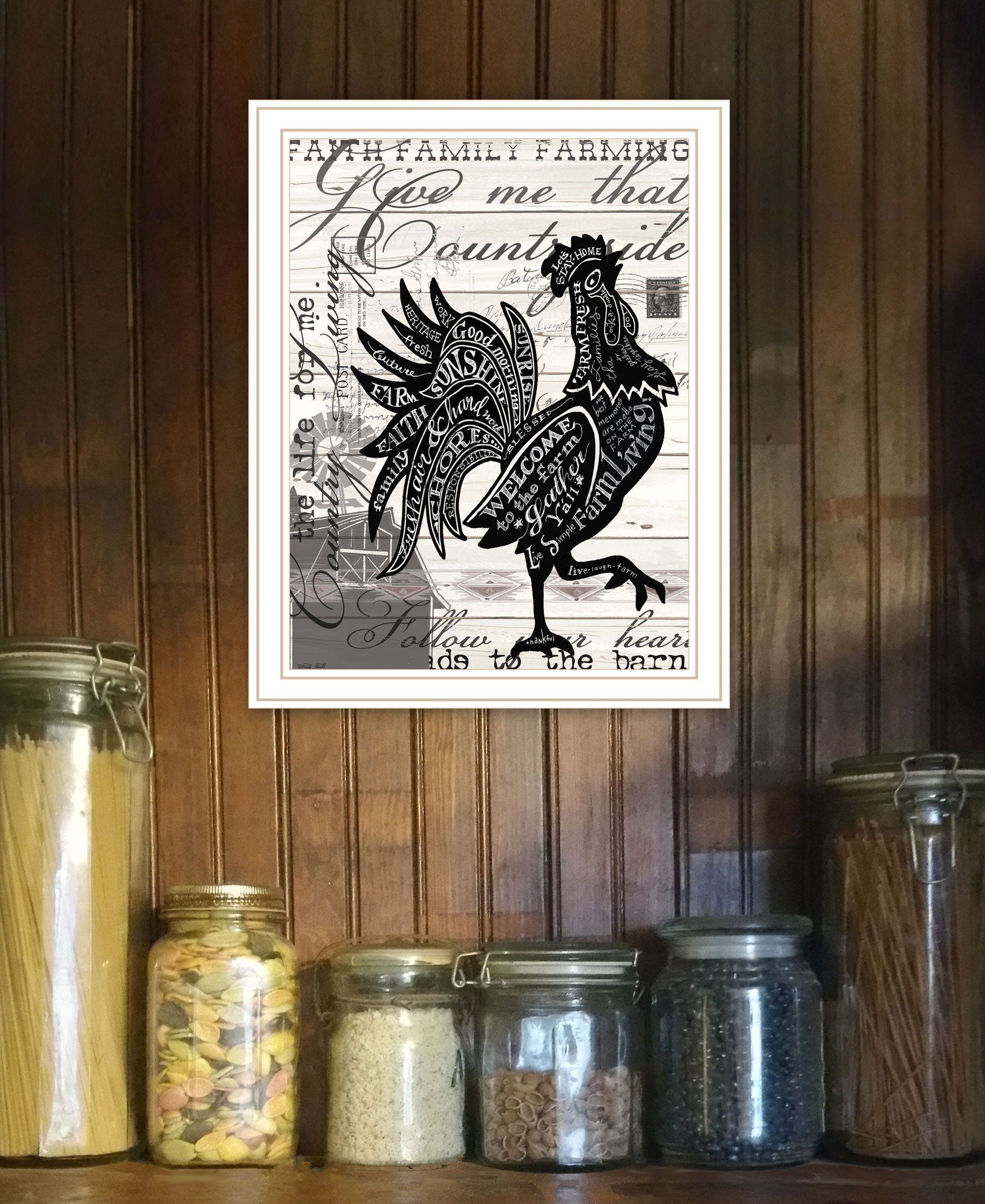 Unique and decorative, this faith family farm rooster white framed wall art will leave a lasting impression. This acrylic painting is a way to express your artistic style and add some fashion to your walls. Reproduced for you on paper, this hanging decorative accent will be a trendy and fashionable way to dress your walls. Adding this hanging wall art to your space to make your room feel more finished and attractive. Utilize this opportunity to create a focal point in the room with this fabulous wall decor option. 18-inch h x 14-inch w x 1-inch d.