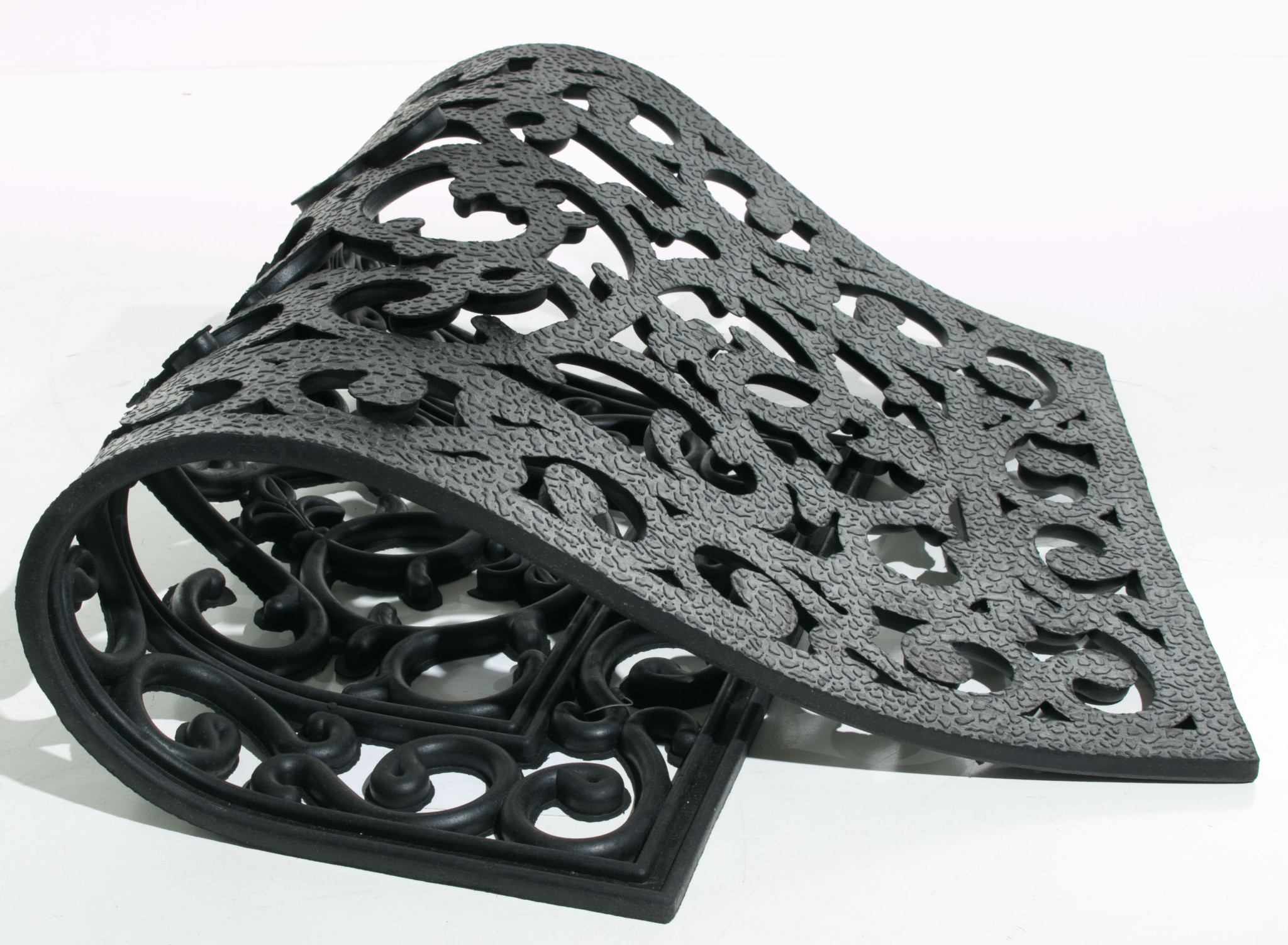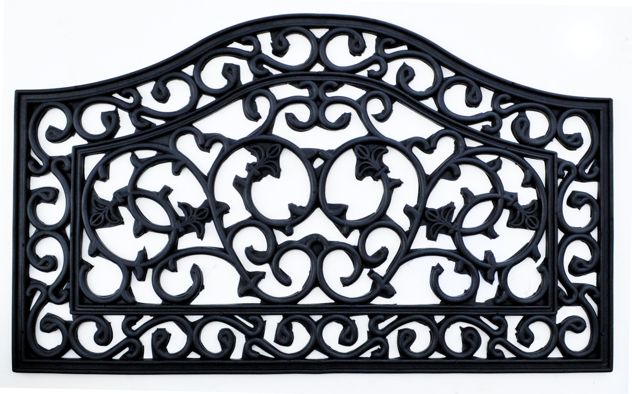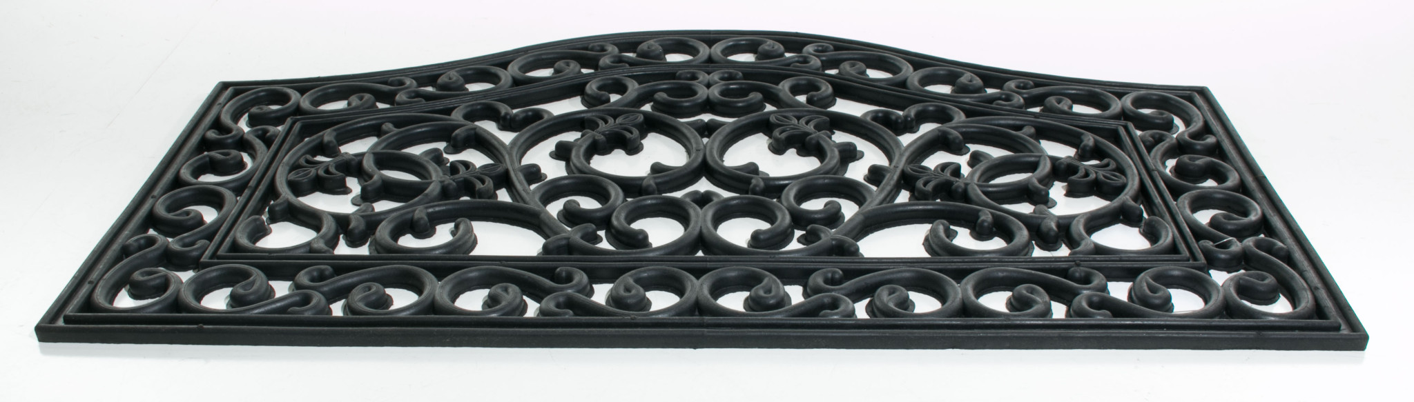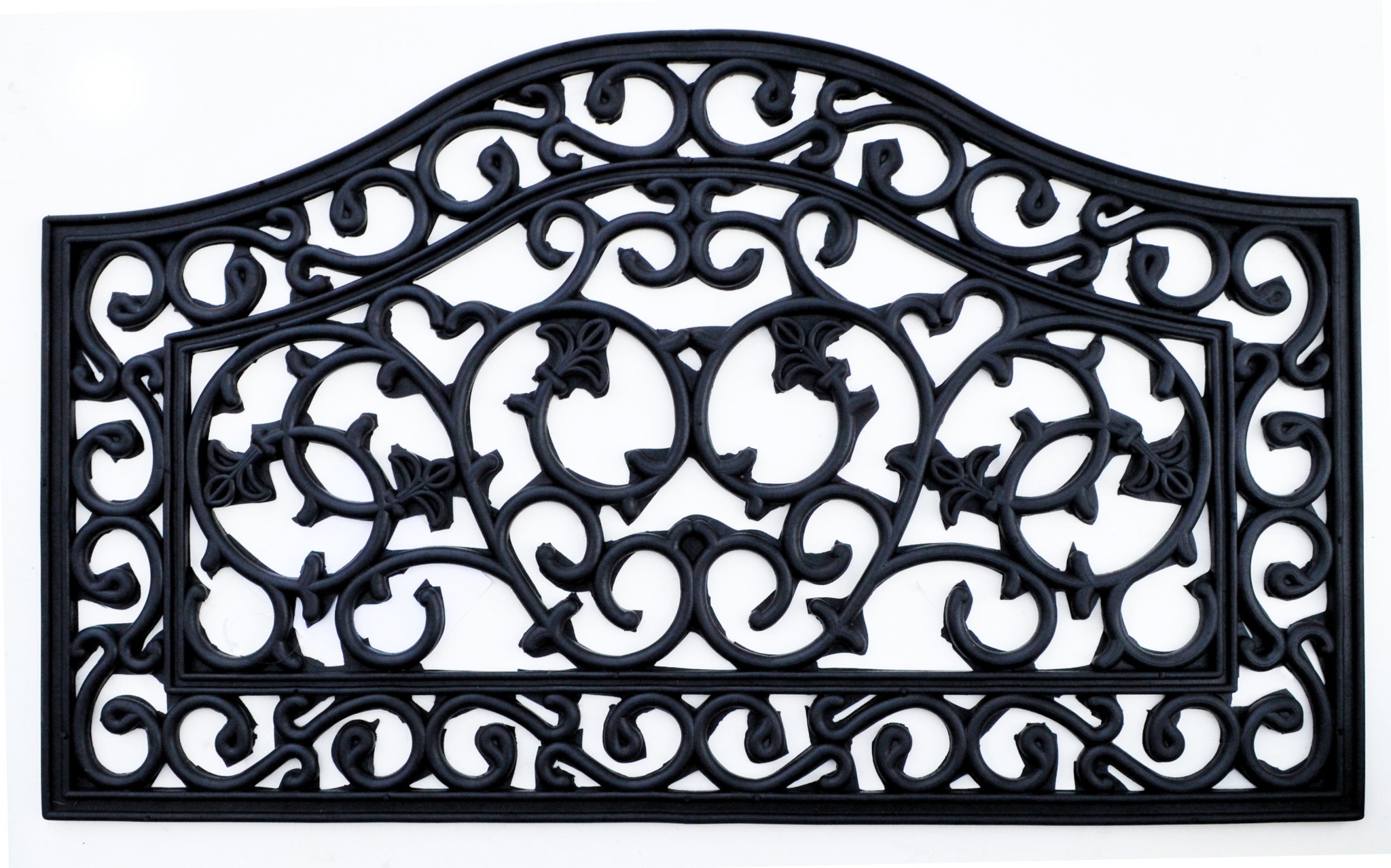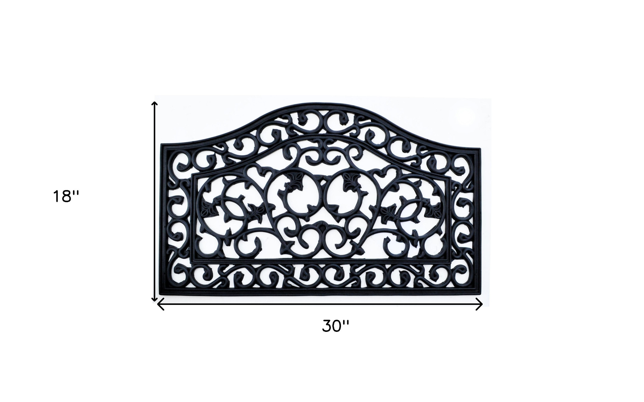 Ready to withstand heavy foot traffic, this 18-inch x 30-inch black rubber outdoor door mat is an ideal option for the front door or entrance way of your home or business. Crafted from rubber, this mat is not only functional but is a visually appealing accessory to welcome people to your home or business. Add this decorative mat to create a practical yet inviting welcome to all who enter. 18-inch H x 30-inch W x 0.5-inch D