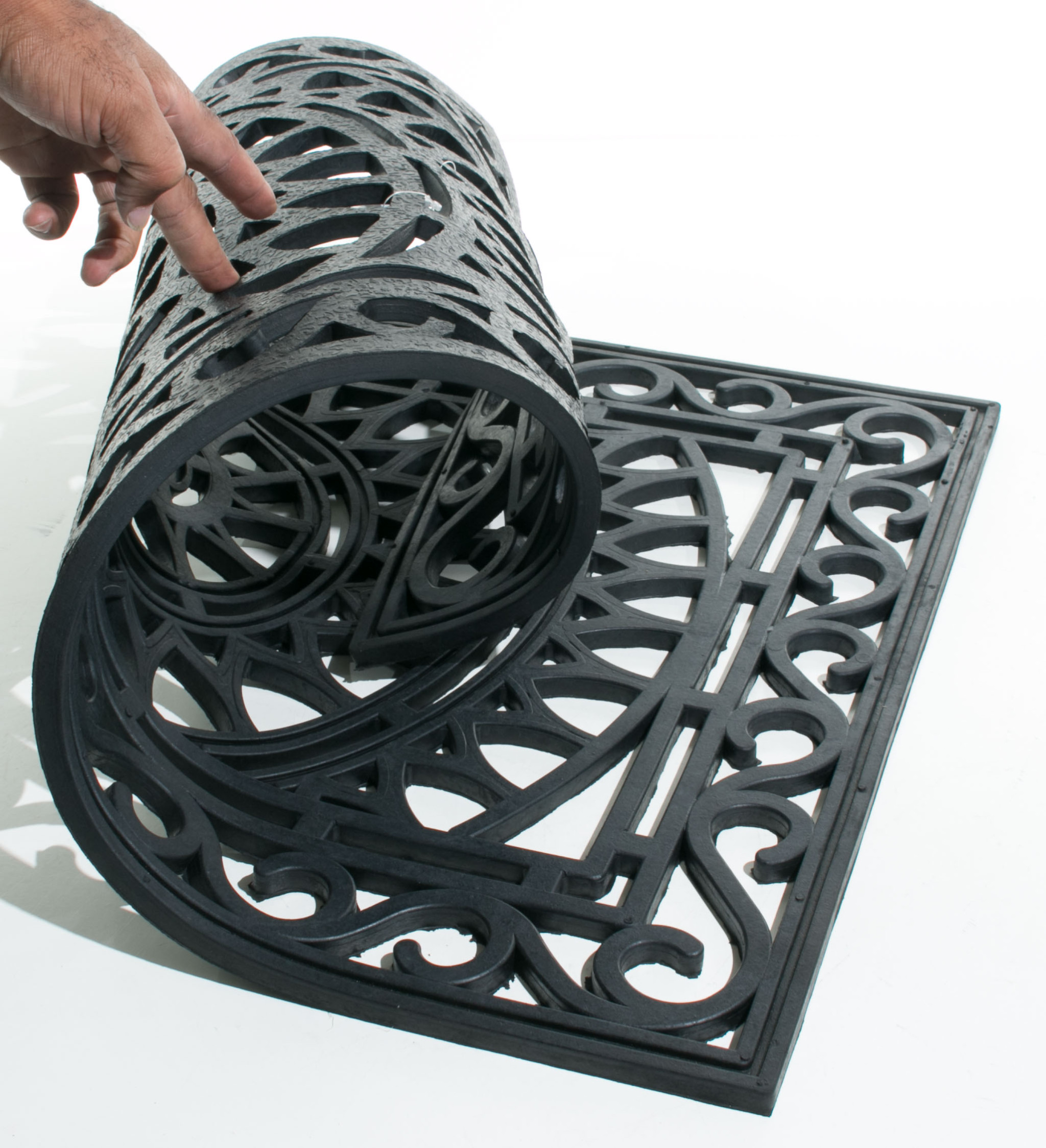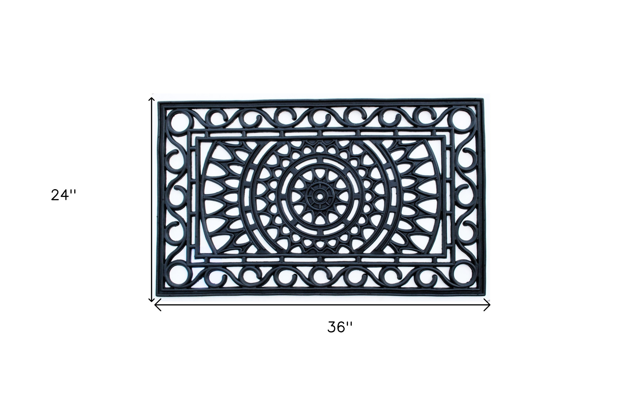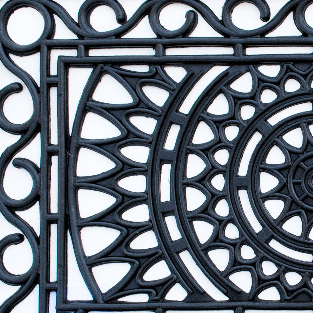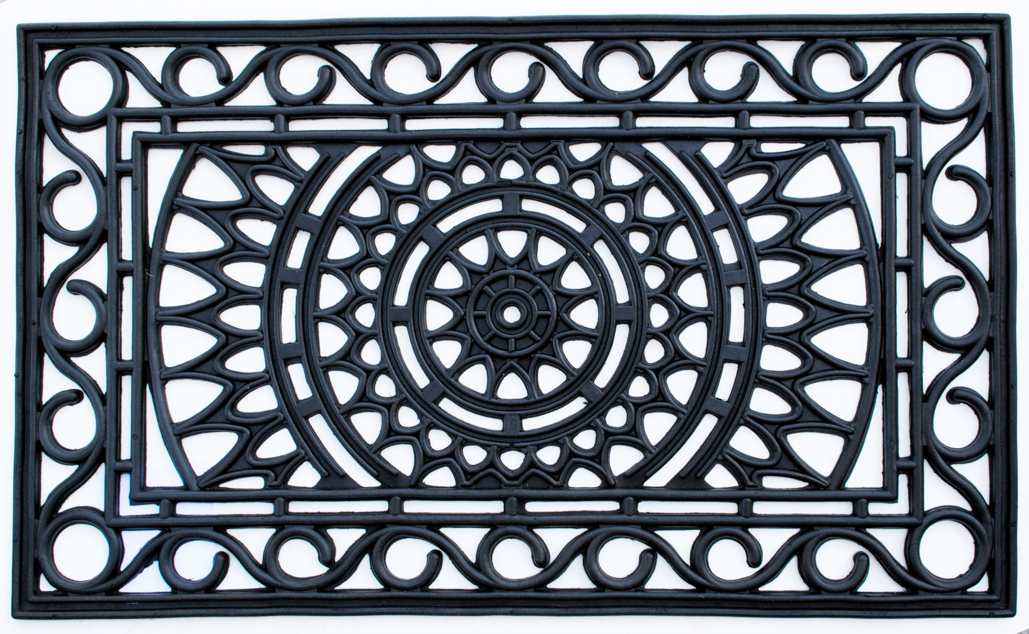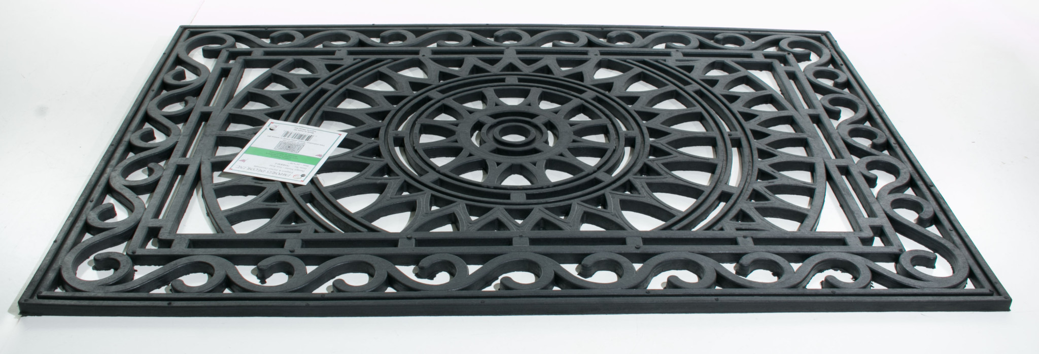 Ready to withstand heavy foot traffic, this 24-inch x 36-inch black rubber outdoor door mat is an ideal option for the front door or entrance way of your home or business. Crafted from rubber, this mat is not only functional but is a visually appealing accessory to welcome people to your home or business. Add this decorative mat to create a practical yet inviting welcome to all who enter. 24-inch H x 36-inch W x 0.5-inch D