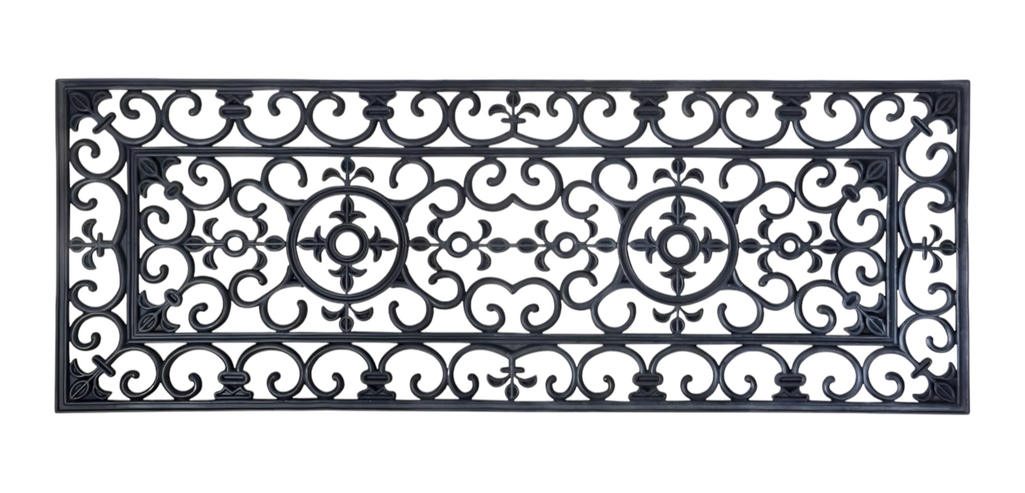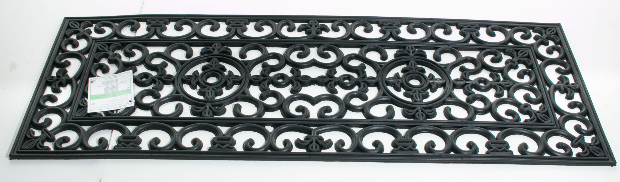 Ready to withstand heavy foot traffic, this 18-inch x 47-inch black rubber outdoor door mat is an ideal option for the front door or entrance way of your home or business. Crafted from rubber, this mat is not only functional but is a visually appealing accessory to welcome people to your home or business. Add this decorative mat to create a practical yet inviting welcome to all who enter. 18-inch H x 47-inch W x 0.5-inch D