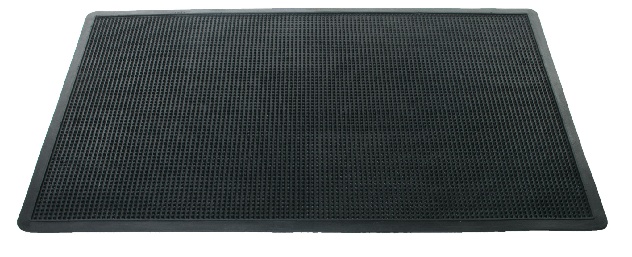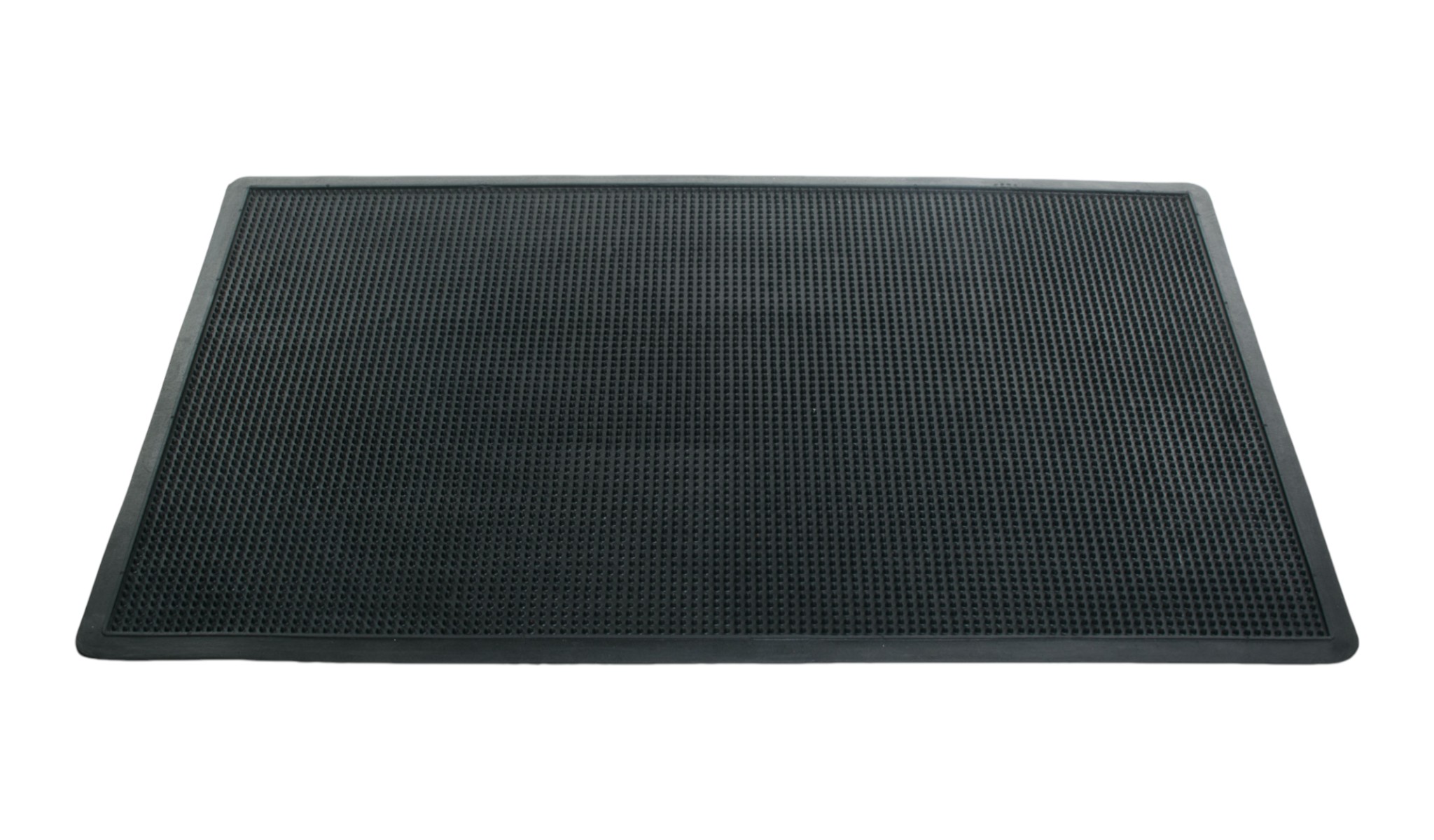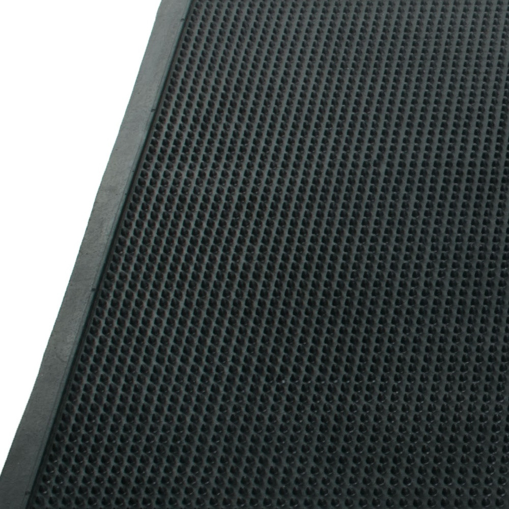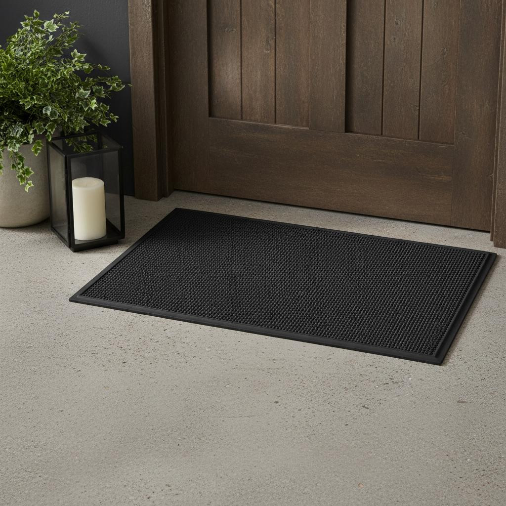 Ready to withstand heavy foot traffic, this 24-inch x 40-inch black rubber outdoor door mat is an ideal option for the front door or entrance way of your home or business. Crafted from rubber, this mat is not only functional but is a visually appealing accessory to welcome people to your home or business. Add this decorative mat to create a practical yet inviting welcome to all who enter. 24-inch H x 40-inch W x 0.25-inch D