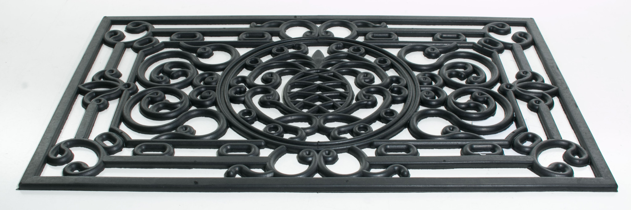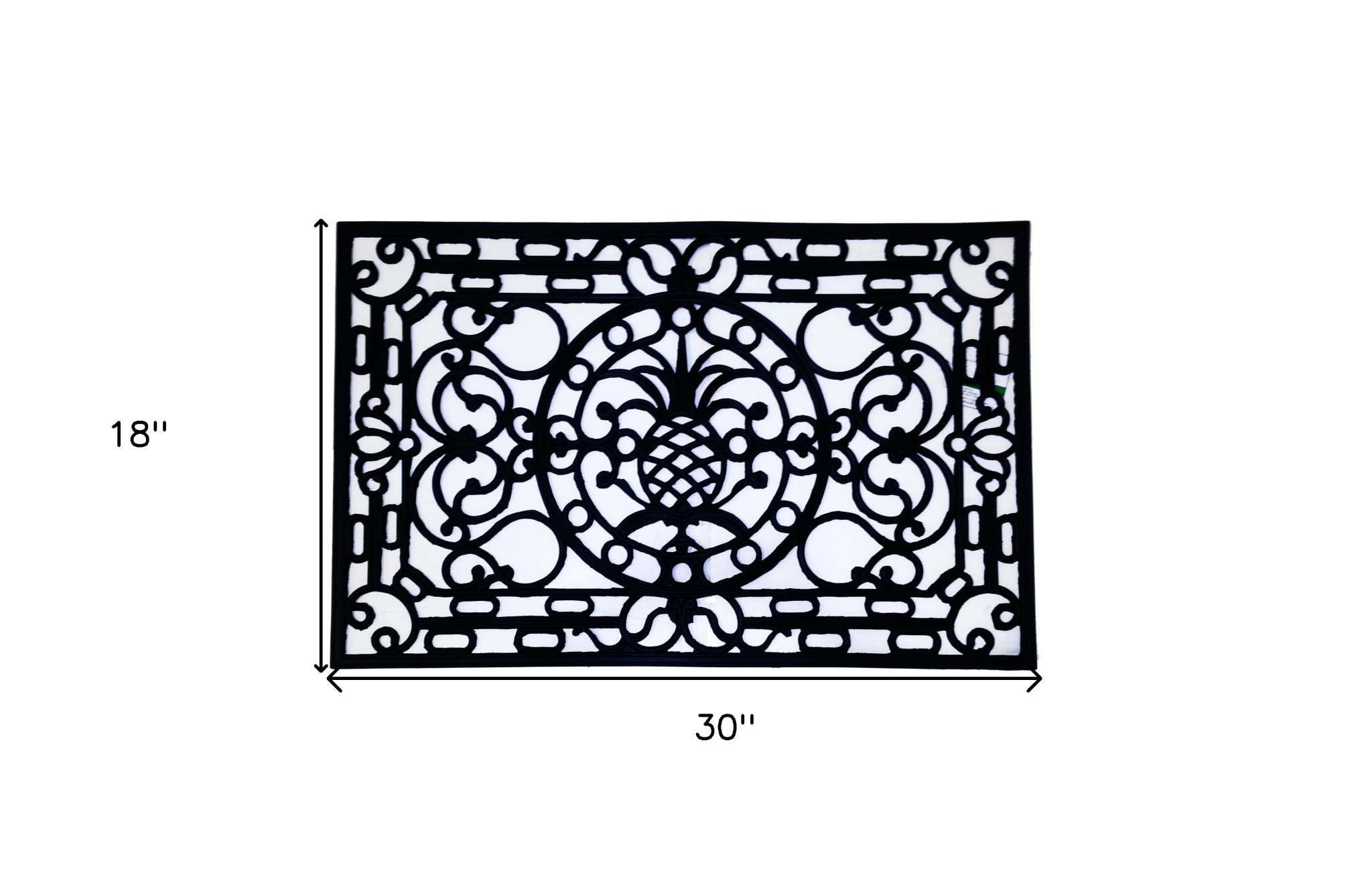 Ready to withstand heavy foot traffic, this 18-inch x 30-inch black rubber pineapple outdoor door mat is an ideal option for the front door or entrance way of your home or business. Crafted from rubber, this mat is not only functional but is a visually appealing accessory to welcome people to your home or business. Add this decorative mat to create a practical yet inviting welcome to all who enter. 18-inch H x 30-inch W x 0.5-inch D