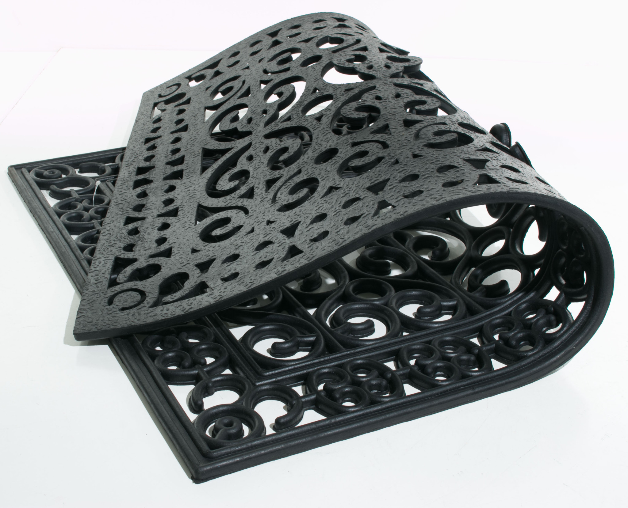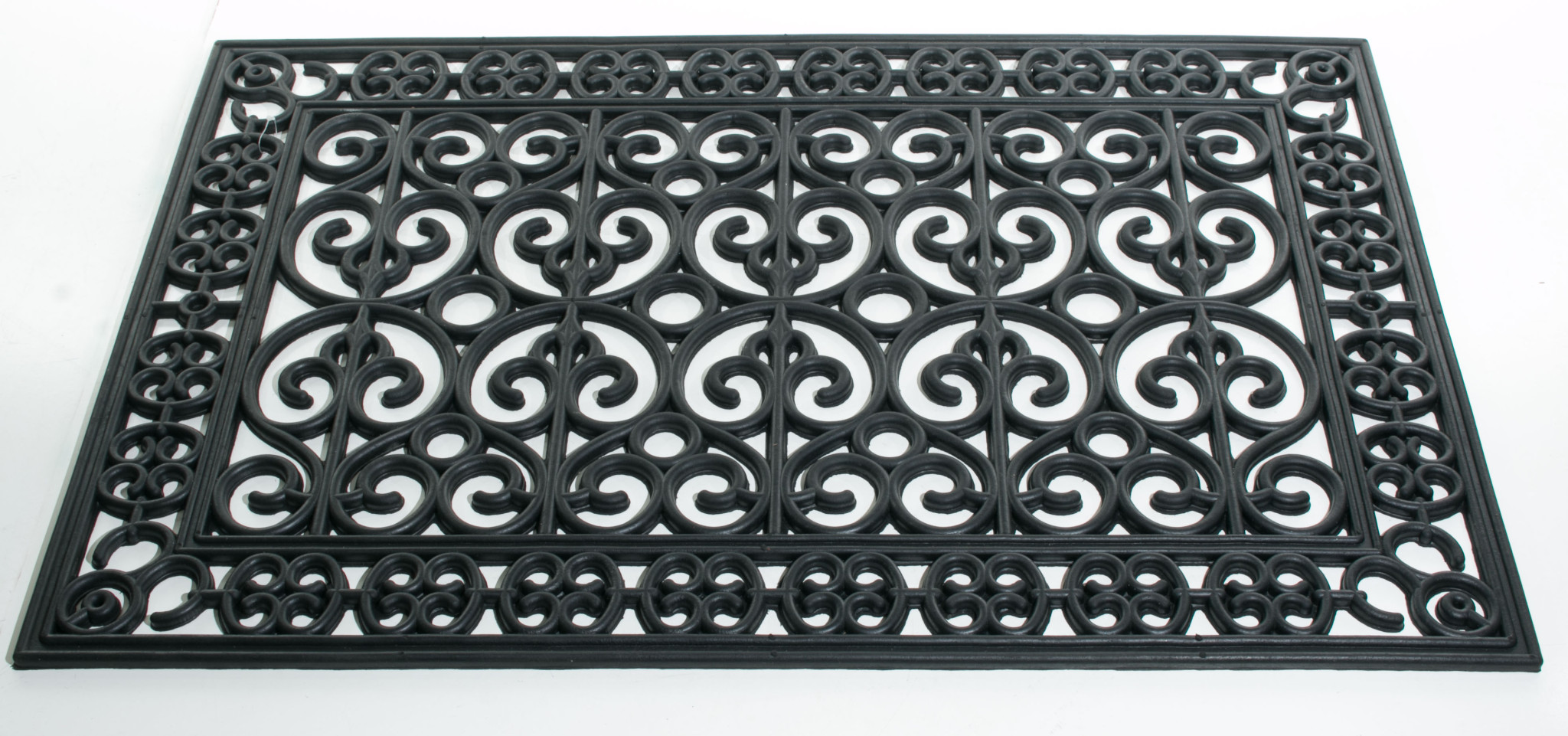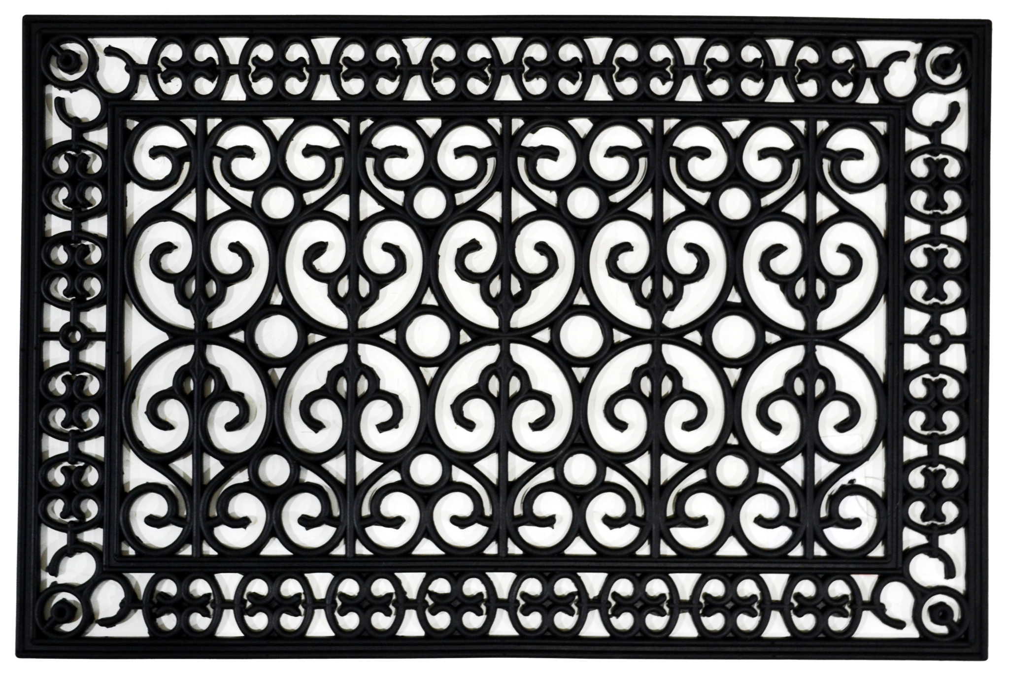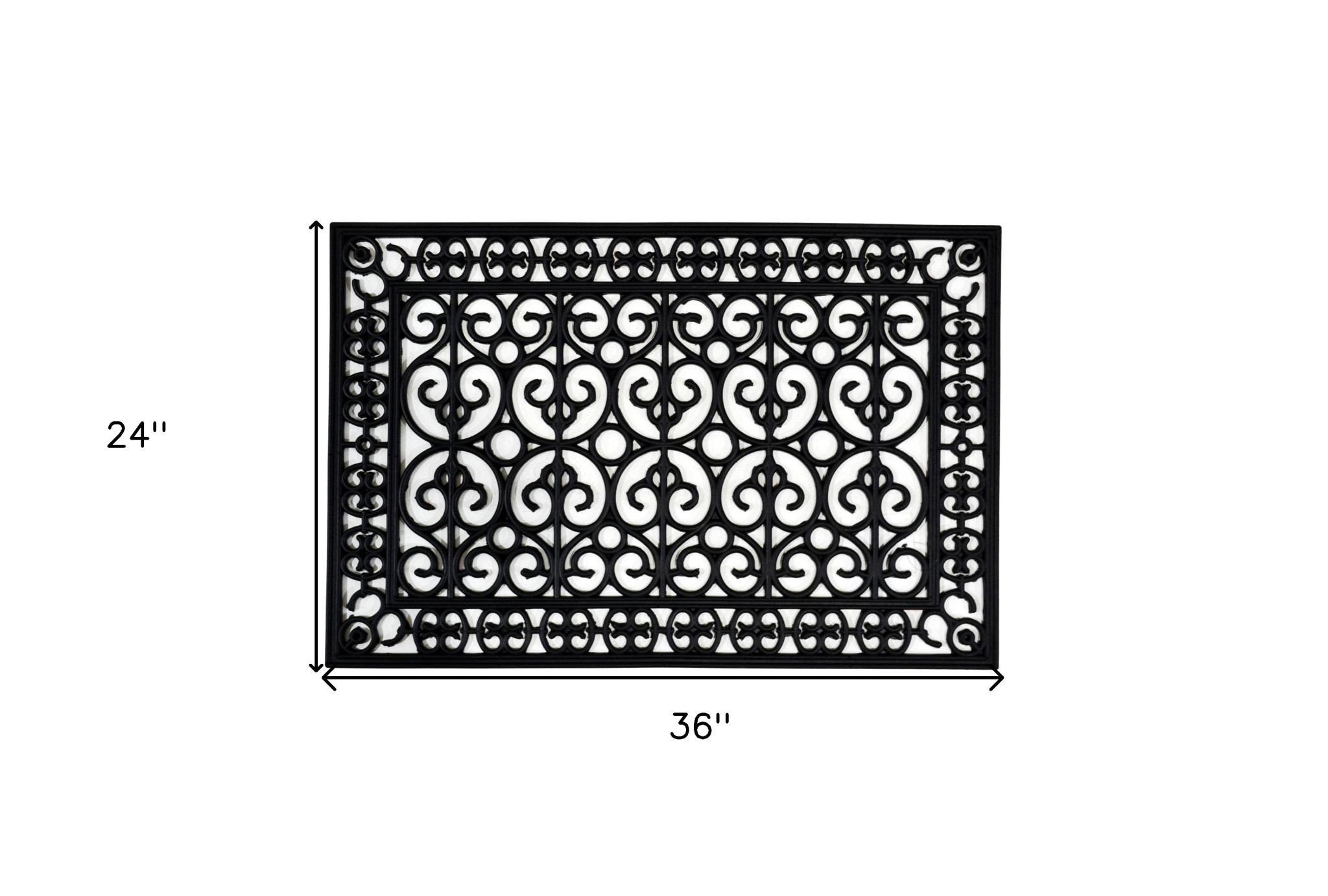 Ready to withstand heavy foot traffic, this 24-inch x 36-inch black rubber outdoor door mat is an ideal option for the front door or entrance way of your home or business. Crafted from rubber, this mat is not only functional but is a visually appealing accessory to welcome people to your home or business. Add this decorative mat to create a practical yet inviting welcome to all who enter. 24-inch H x 36-inch W x 0.5-inch D