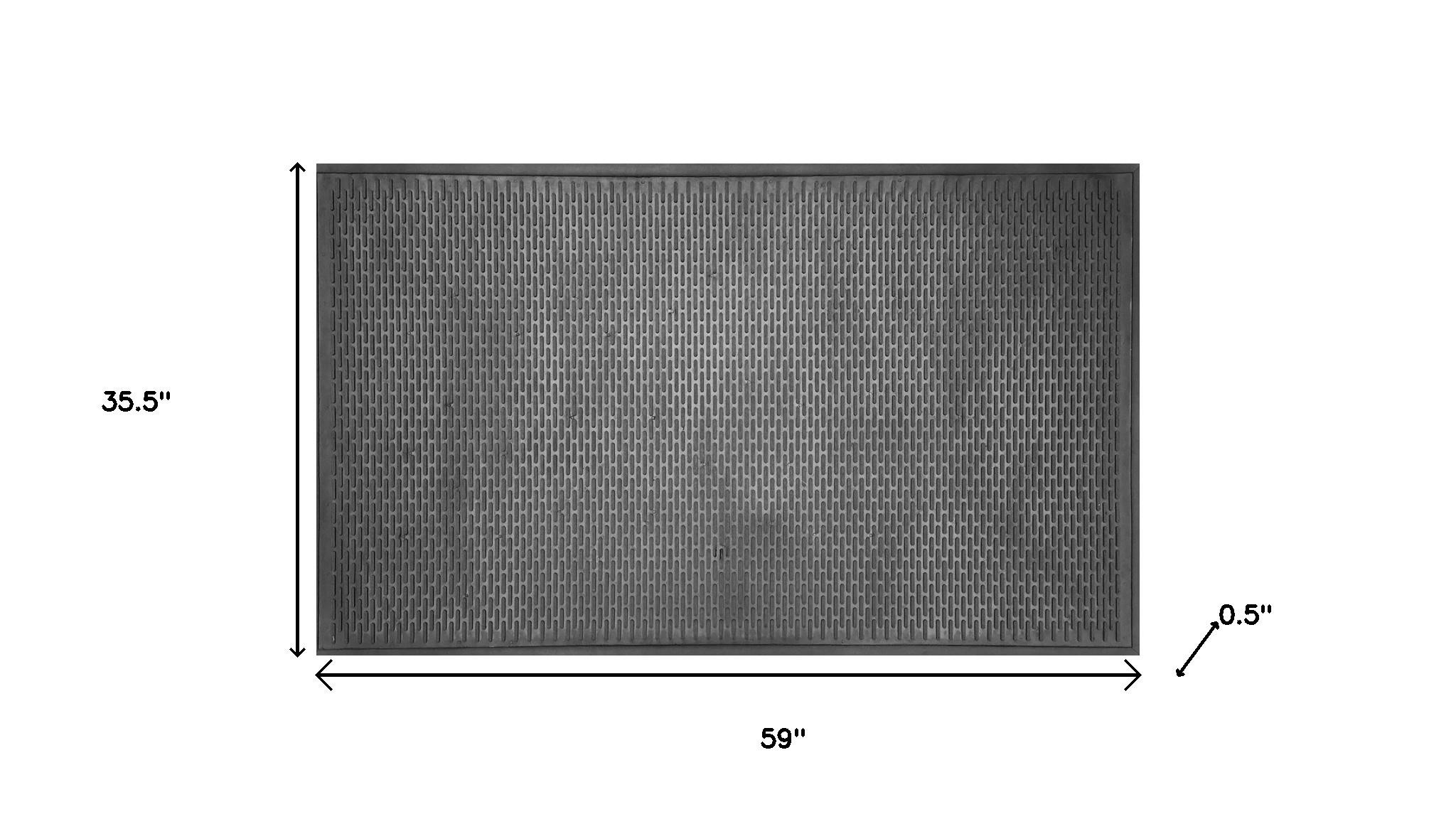 Ready to withstand heavy foot traffic, this 36-inch x 59-inch black rubber outdoor door mat is an ideal option for the front door or entrance way of your home or business. Crafted from rubber, this mat is not only functional but is a visually appealing accessory to welcome people to your home or business. Add this decorative mat to create a practical yet inviting welcome to all who enter. 35.5-inch H x 59-inch W x 0.5-inch D