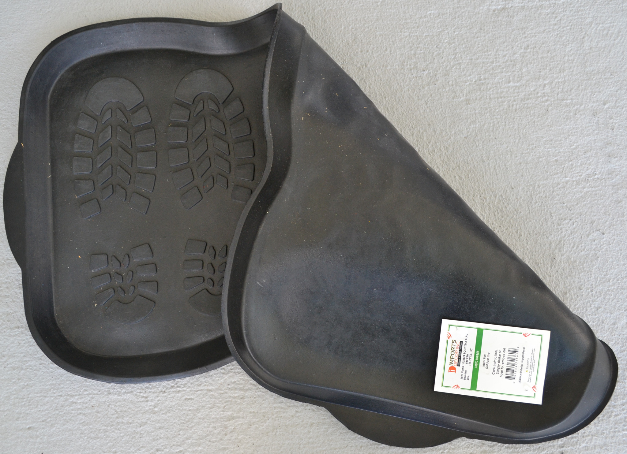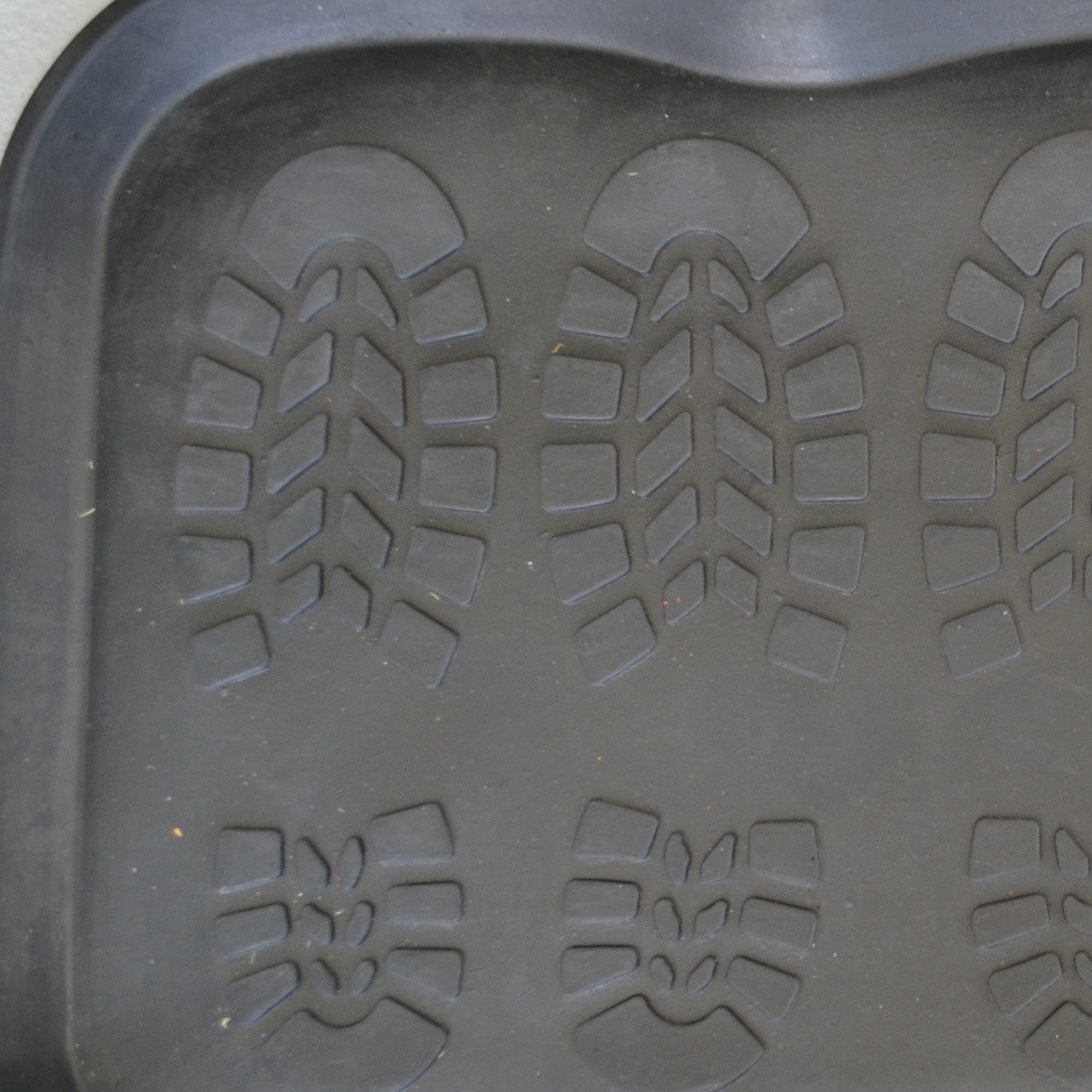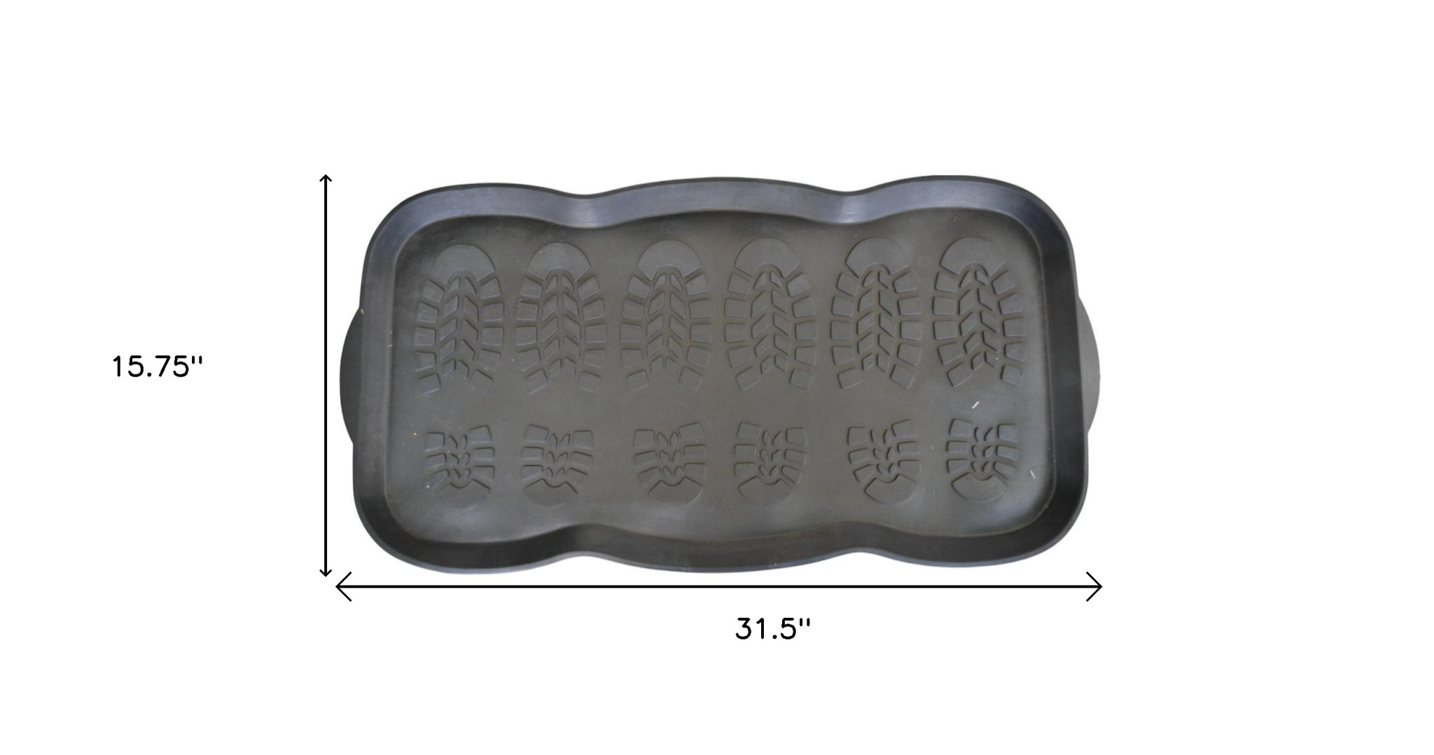 Ready to withstand heavy foot traffic, this 16-inch x 32-inch black rubber outdoor boot tray is an ideal option for the front door or entrance way of your home or business. Crafted from rubber, this mat is not only functional but is a visually appealing accessory to welcome people to your home or business. Add this decorative mat to create a practical yet inviting welcome to all who enter. 15.75-inch H x 31.5-inch W x 0.5-inch D