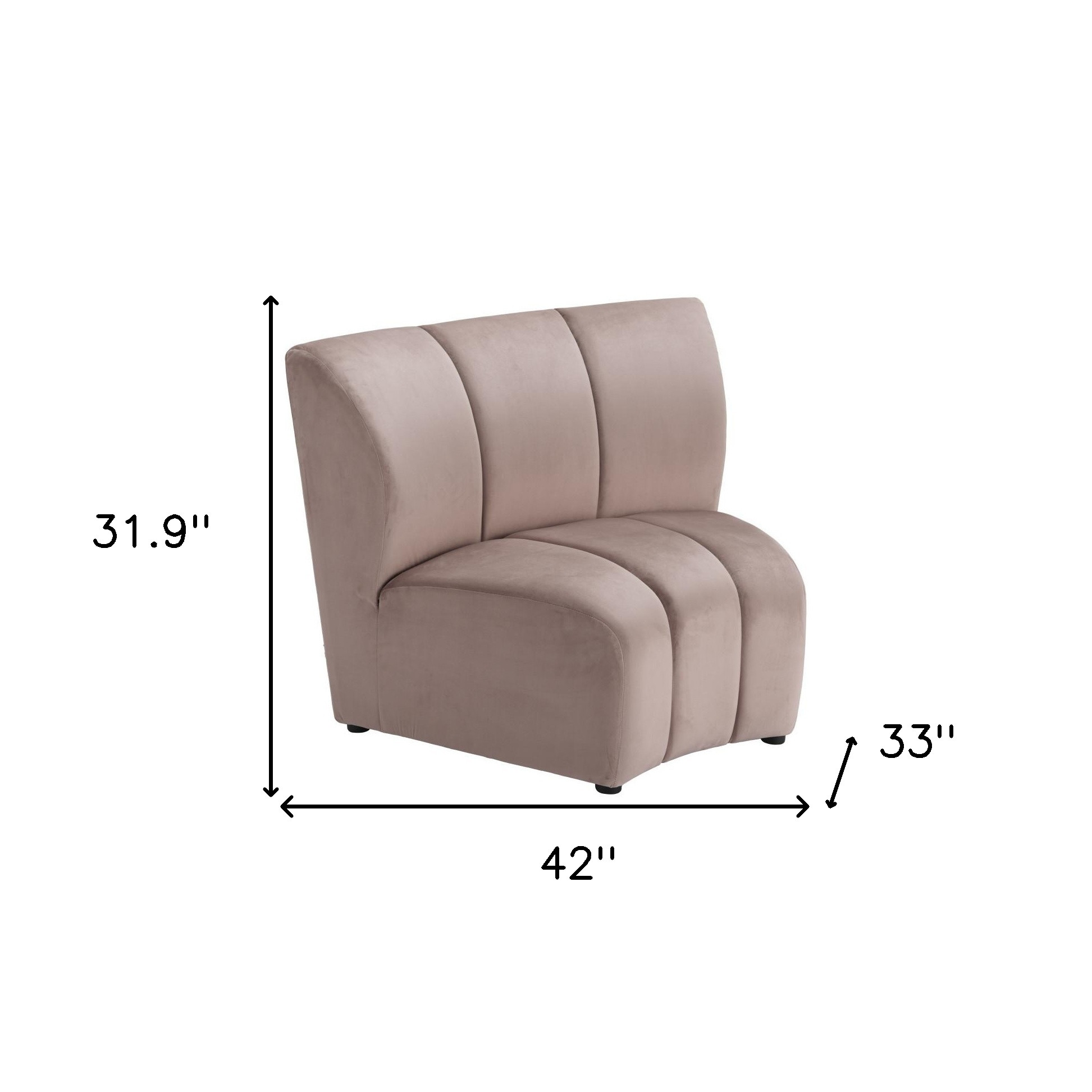 Designed for comfort and good looks, this 42-inch beige velvet modular sofa is a great option to anchor your space. With a warm and rich look to it, this solid color modular is upholstered in velvet that is designed to be super soft to the touch, sturdy and resilient. Solid colors give you lots of decorative options and are easy to work into your decor scheme. Designed with an updated and refreshing style, this sofa is armless to create that unique contemporary or modern aesthetic. Beige solid wood legs effortlessly elevate the room and add a touch of contemporary design. Built to last, this sofa will be a great centerpiece for your room. 31.90-inch h x 42.00-inch w x 33.00-inch d.