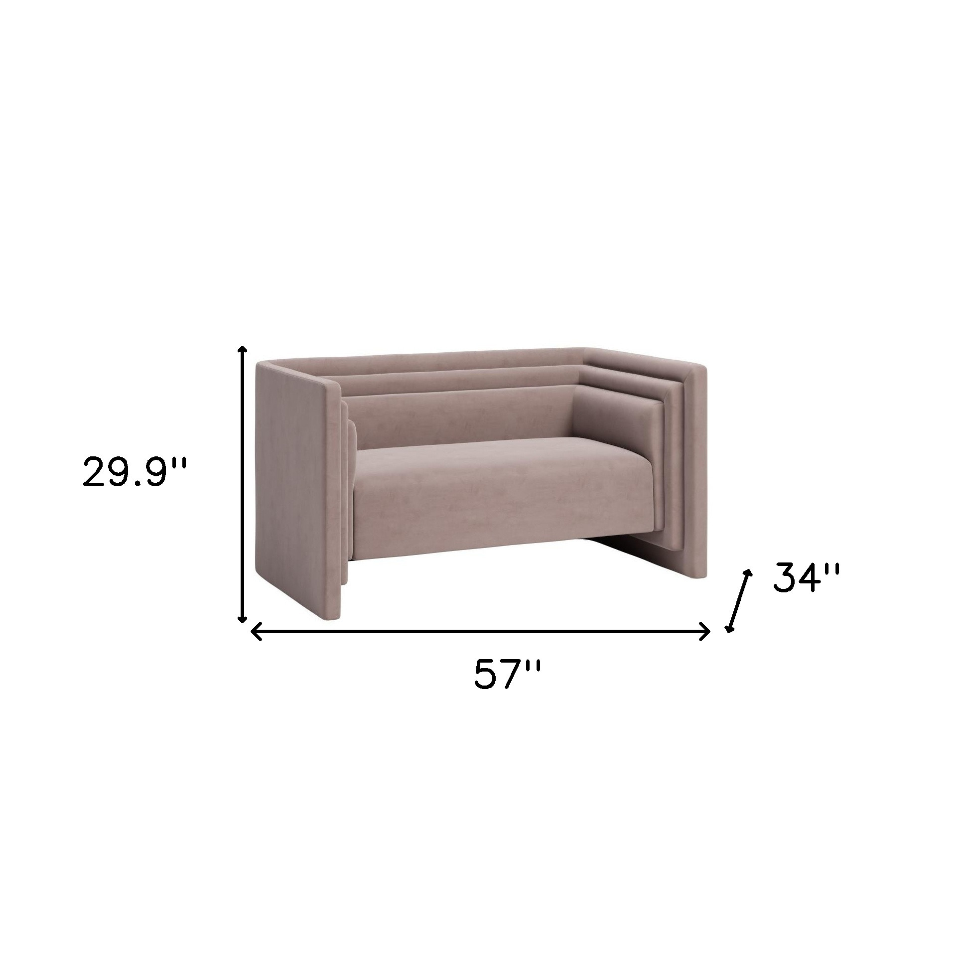 Add an air of fashion to your space with this fabulous 57-inch velvet loveseat. Square arms offer a comfy place to rest and give this piece some interest and shape. A great showpiece for your room, this sofa is a must have. Upholstered in luxurious velvet, it provides both style and comfort. The tight back design offers excellent support, while the solid and manufactured wood frame ensures durability. Embrace modern aesthetics with its sleek rectangular shape that complements any décor. 29.90-inch h x 57.00-inch w x 34.00-inch d.
