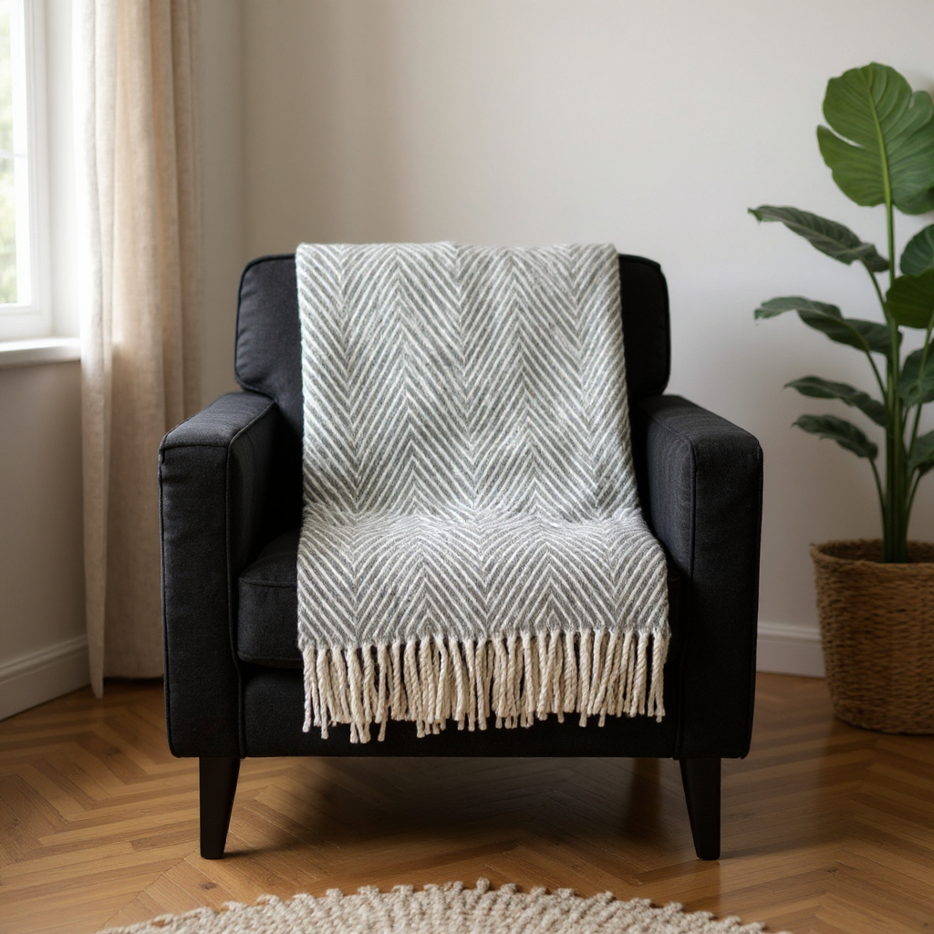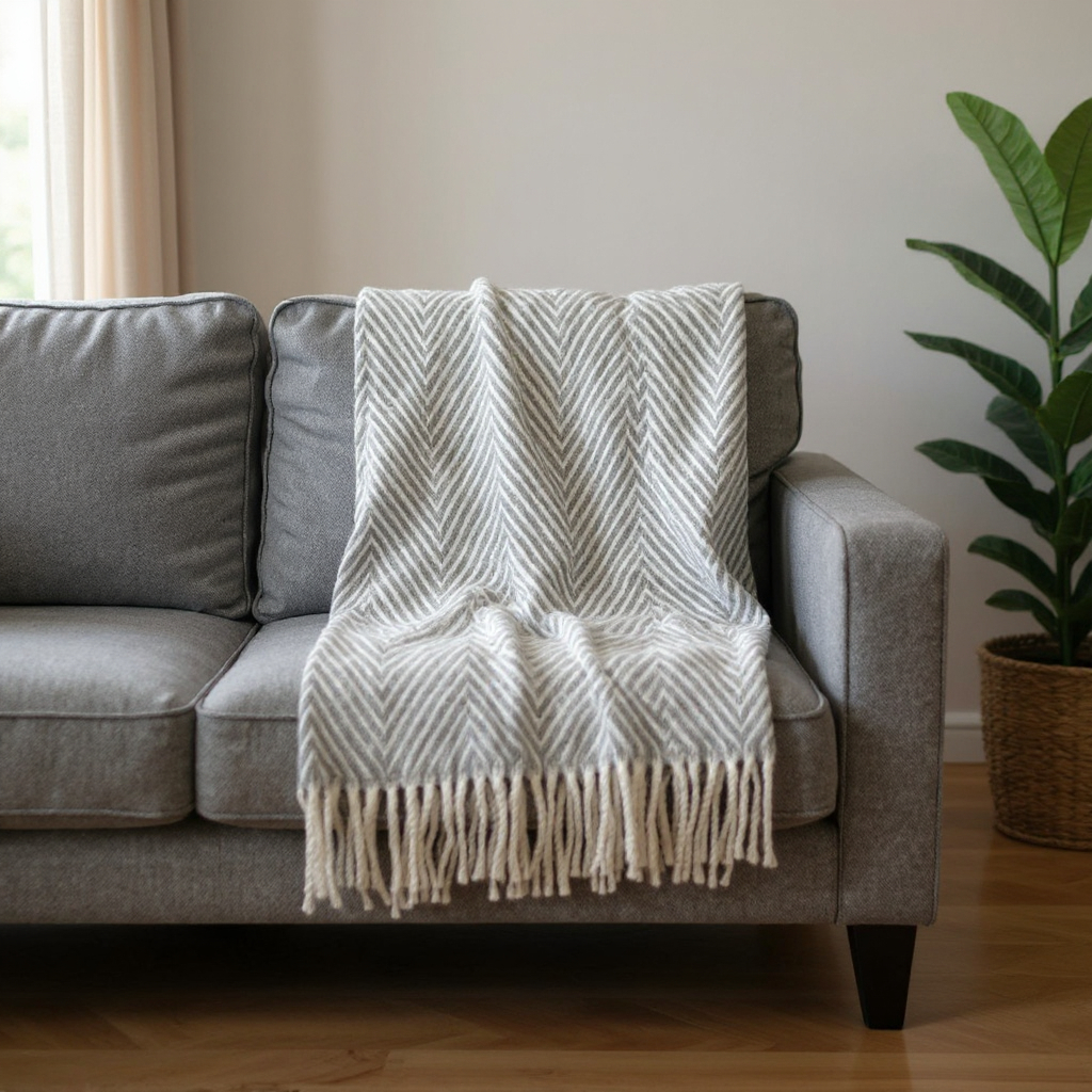 woven herringbone throw blanket fringe, cotton woven herringbone throw blanket, woven herringbone throw blanket, herringbone throw blanket fringe, 51" X 67" gray cotton woven |
