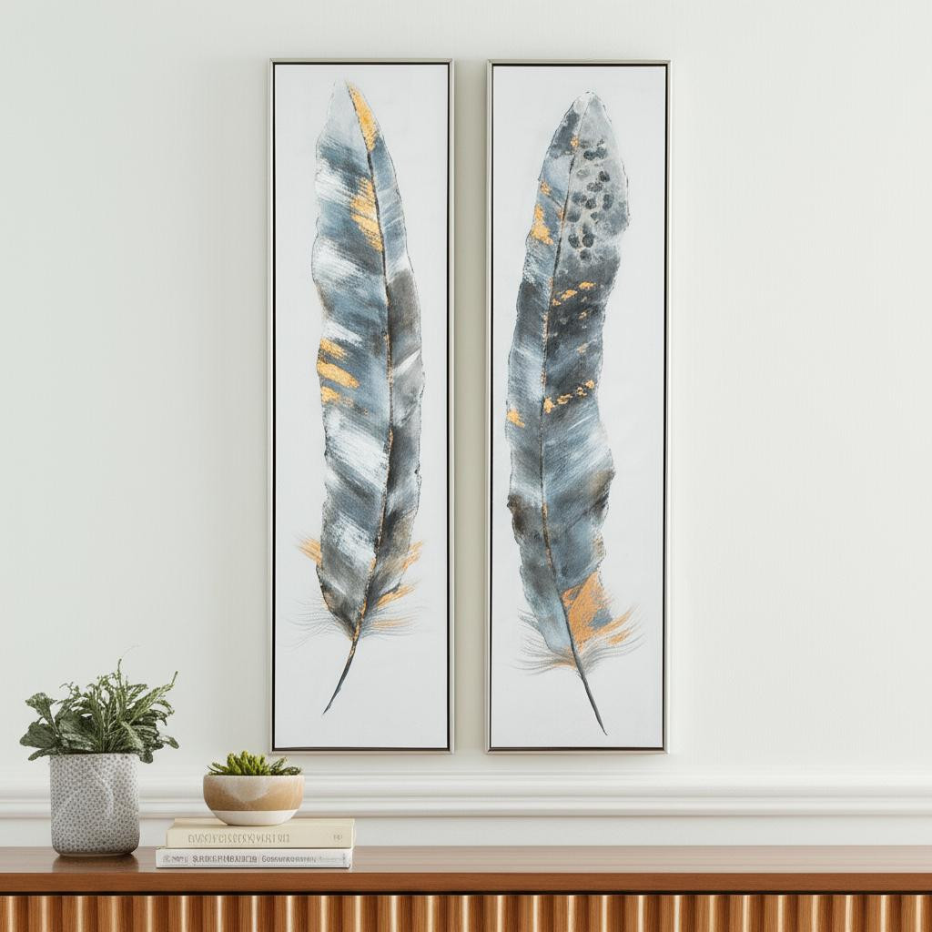 This calamus s2 silver floater frame painting wall art will add a beautiful decorative accent to your decor. Not a print, this fabulous work of art is truly hand-painted. Reproduced for you on canvas, this hanging decorative accent will be a trendy and fashionable way to dress your walls. Adding this hanging wall art to your space to make your room feel more finished and attractive. Instantly liven up your space with this art that brings color and dimension to your walls. 20-inch h x 65-inch w x 7-inch d.