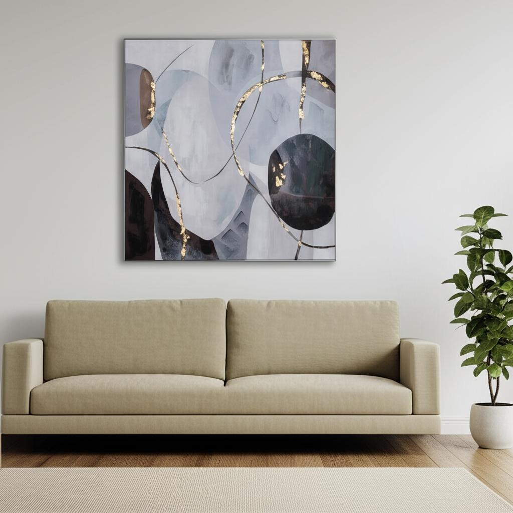 This graphite black floater frame painting wall art will add a beautiful decorative accent to your decor. Not a print, this fabulous work of art is truly hand-painted. Reproduced for you on canvas, this hanging decorative accent will be a trendy and fashionable way to dress your walls. Adding this hanging wall art to your space to make your room feel more finished and attractive. Instantly liven up your space with this art that brings color and dimension to your walls. 42-inch h x 42-inch w x 2.5-inch d.