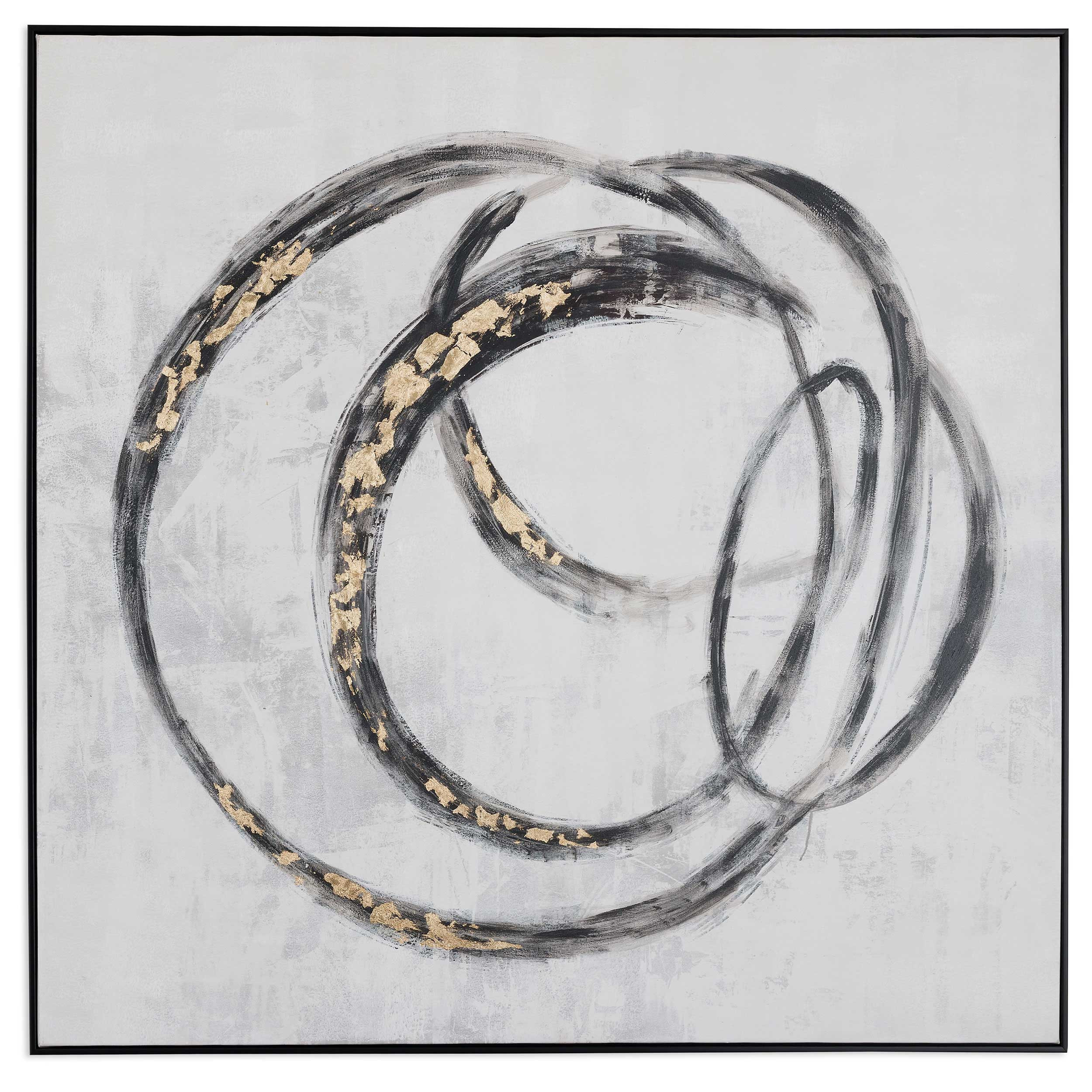 The circulo black floater frame painting wall art is the perfect decorative accessory for your home. Not a print, this fabulous work of art is truly hand-painted. Reproduced for you on canvas, this hanging decorative accent will be a trendy and fashionable way to dress your walls. Hang on your wall to add some up to date fashion and decoration. Utilize this opportunity to create a focal point in the room with this fabulous wall decor option. 49-inch h x 48.5-inch w x 3-inch d.
