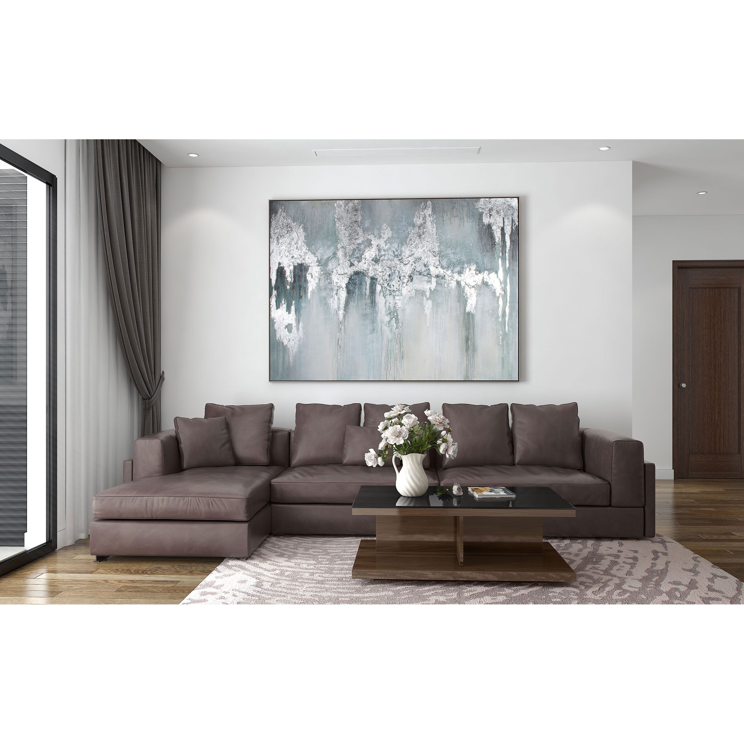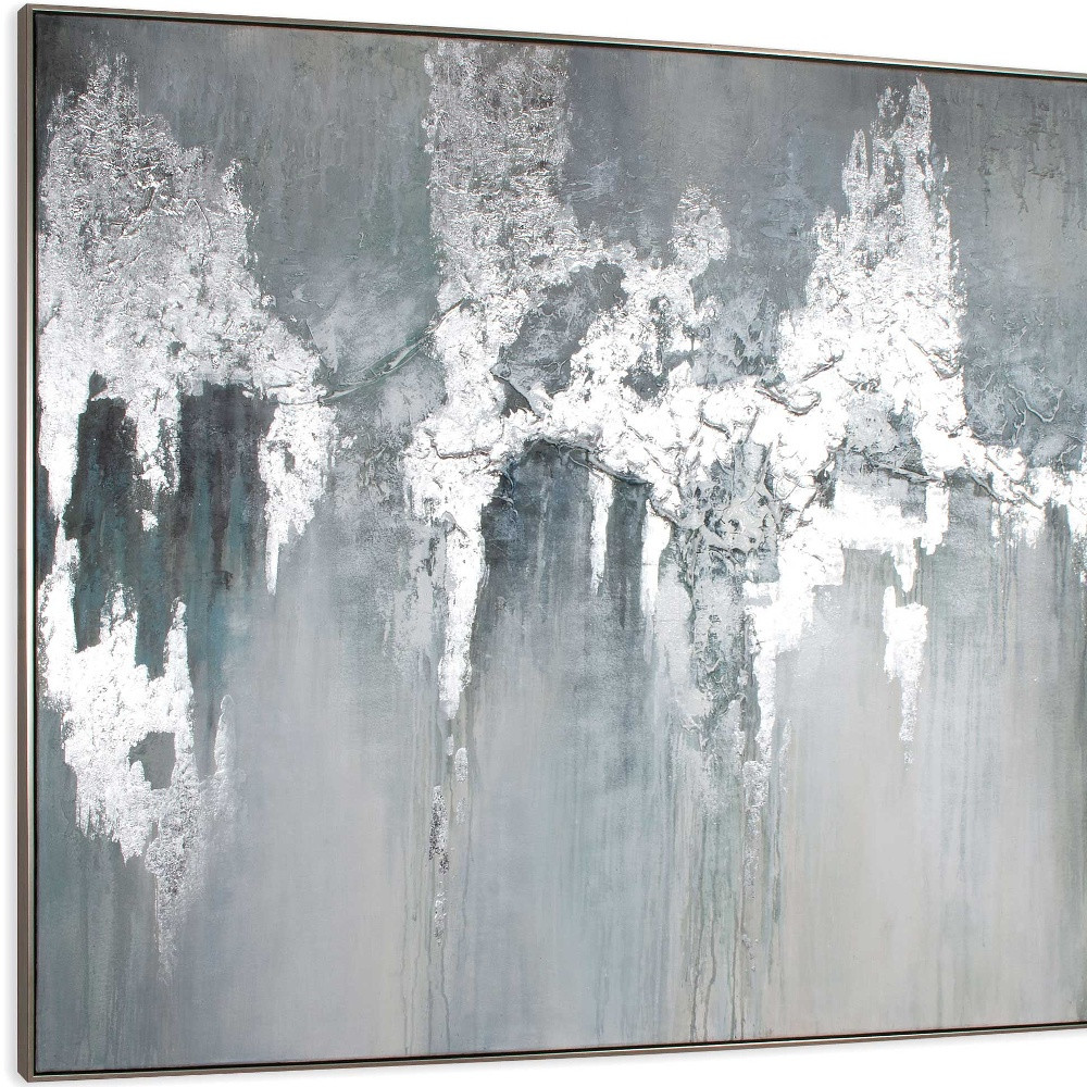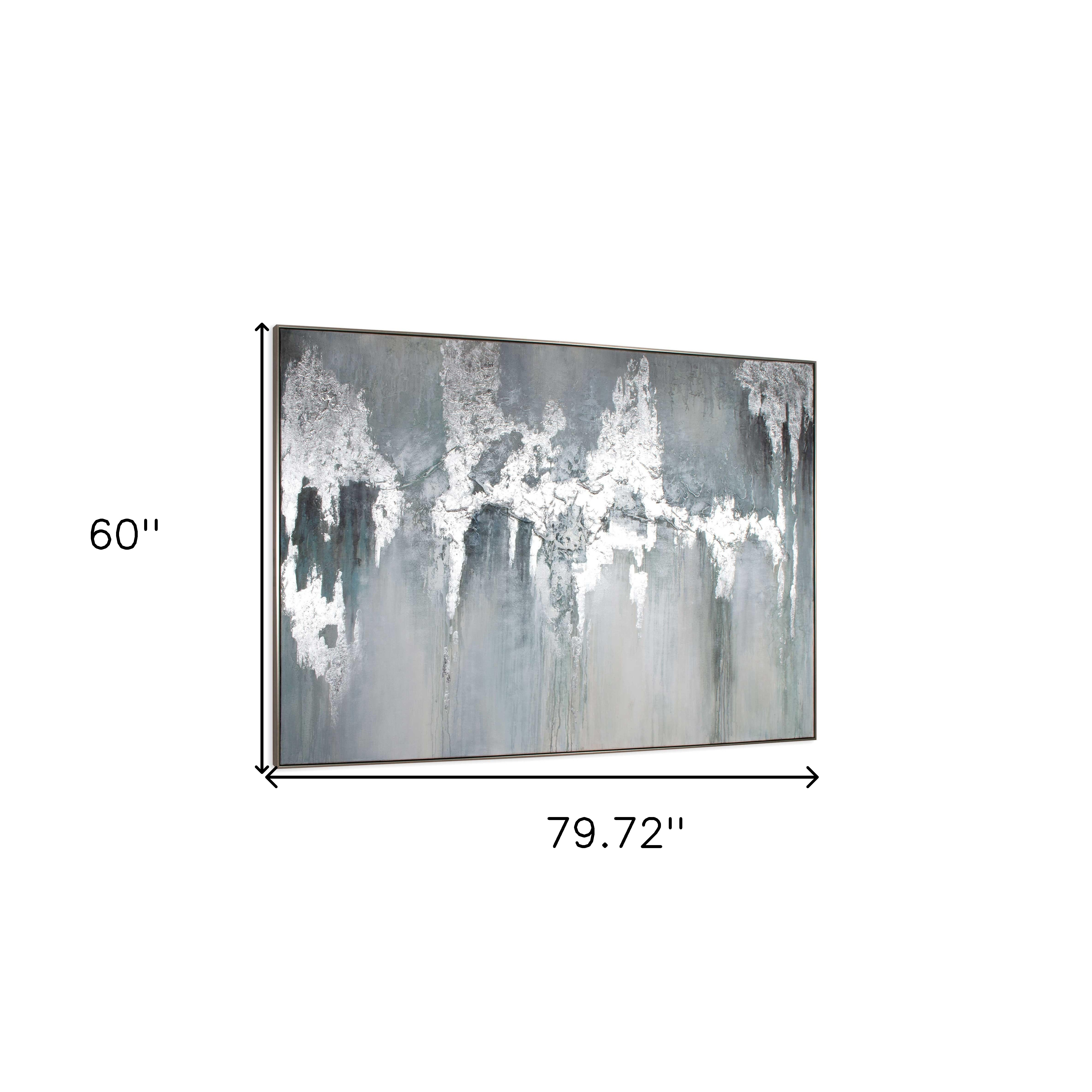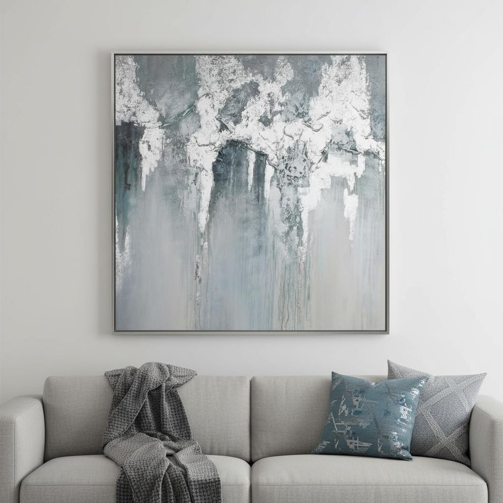 The exquisite aquamarine silver floater frame painting wall art is the perfect decorative accessory for your home. Not a print, this fabulous work of art is truly hand-painted. Reproduced for you on canvas, this hanging decorative accent will be a trendy and fashionable way to dress your walls. Hang on your wall to add some up to date fashion and decoration. Instantly liven up your space with this art that brings color and dimension to your walls. 60-inch h x 79.72-inch w x 3.5-inch d.