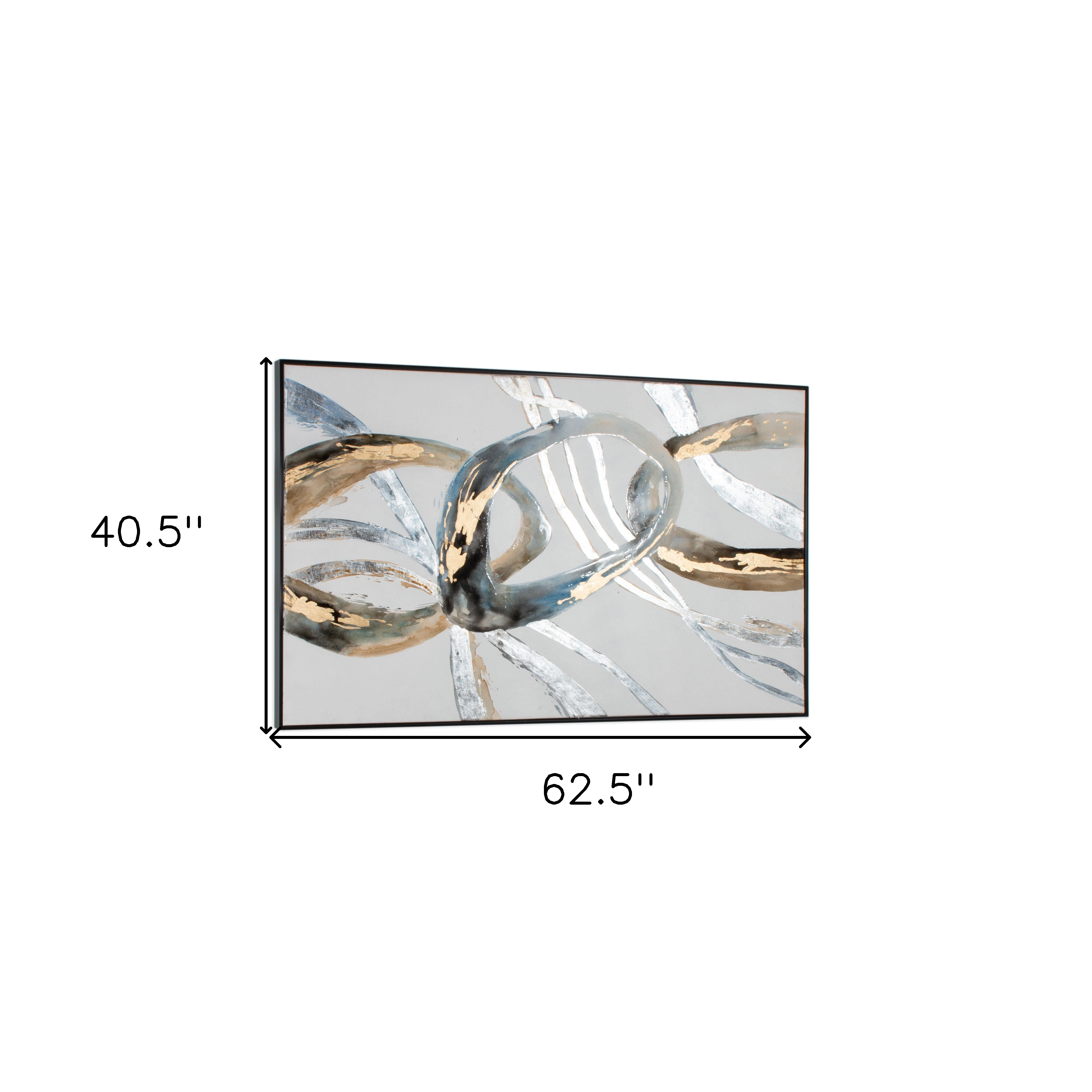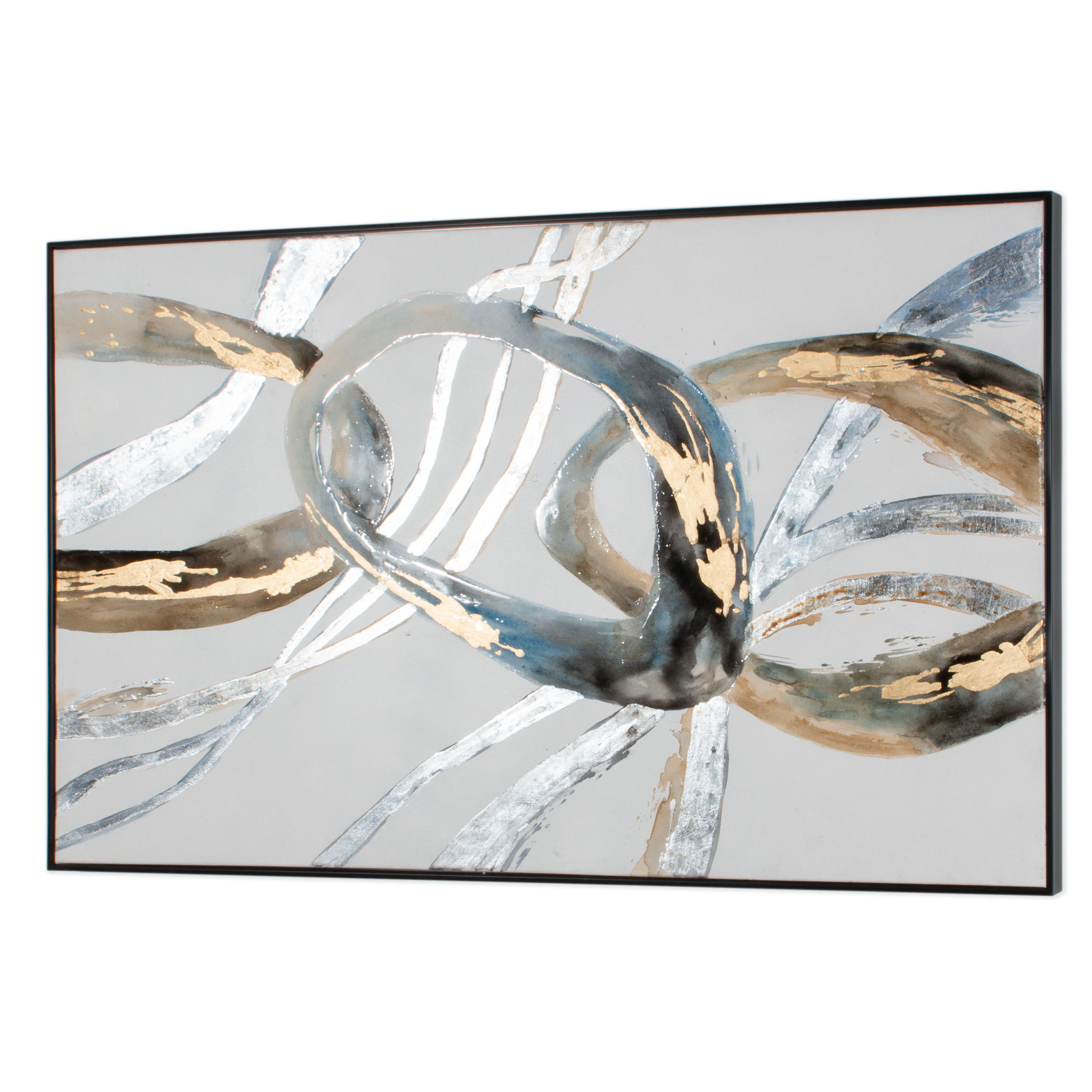 This looping rings black floater frame painting wall art will add a beautiful decorative accent to your decor. Not a print, this fabulous work of art is truly hand-painted. Reproduced for you on canvas, this hanging decorative accent will be a trendy and fashionable way to dress your walls. Hang on your wall to add some up to date fashion and decoration. Instantly liven up your space with this art that brings color and dimension to your walls. 40.5-inch h x 62.5-inch w x 3.5-inch d.