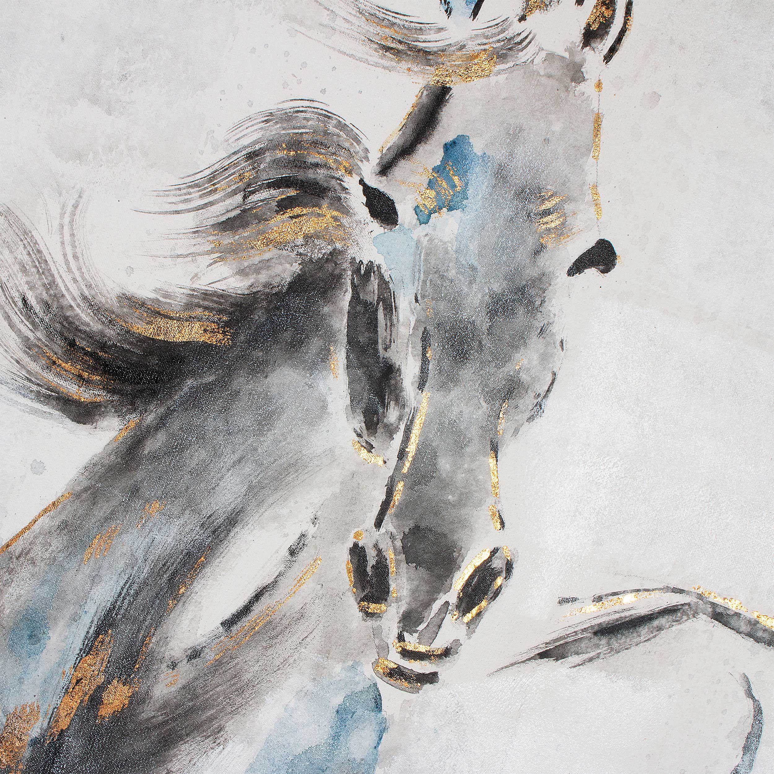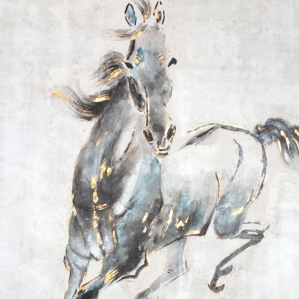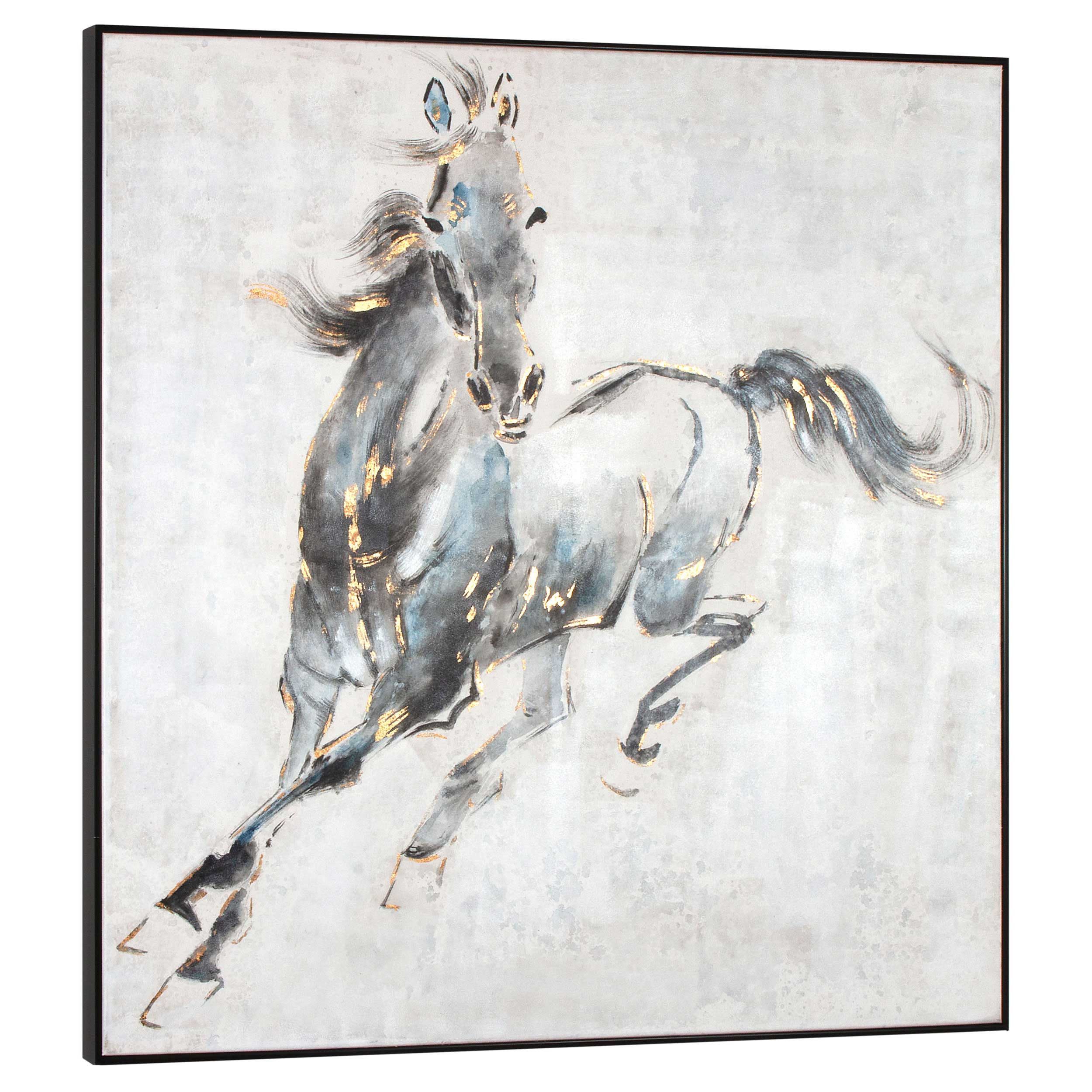 This prancing stallion black floater frame painting wall art will add a beautiful decorative accent to your decor. Bring a little bit of the farm indoors when you hang this horse artwork. Not a print, this fabulous work of art is truly hand-painted. Reproduced for you on canvas, this hanging decorative accent will be a trendy and fashionable way to dress your walls. Adding this hanging wall art to your space to make your room feel more finished and attractive. Utilize this opportunity to create a focal point in the room with this fabulous wall decor option. 54.5-inch h x 55.5-inch w x 3.5-inch d.