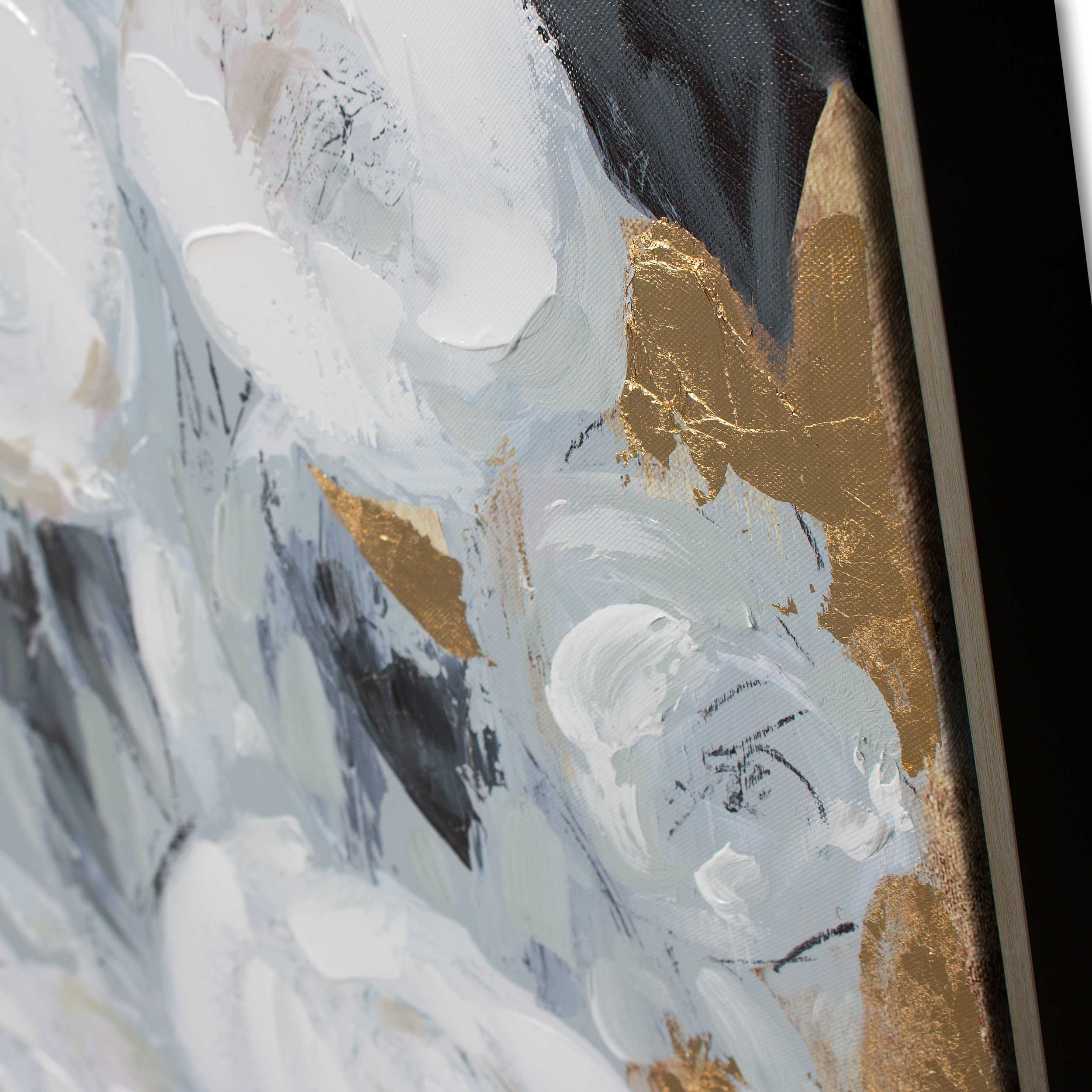 blanc fleur hand painted canvas, blanc fleur hand painted, fleur hand painted canvas black, hand painted canvas black floater, floater frame painting wall art |