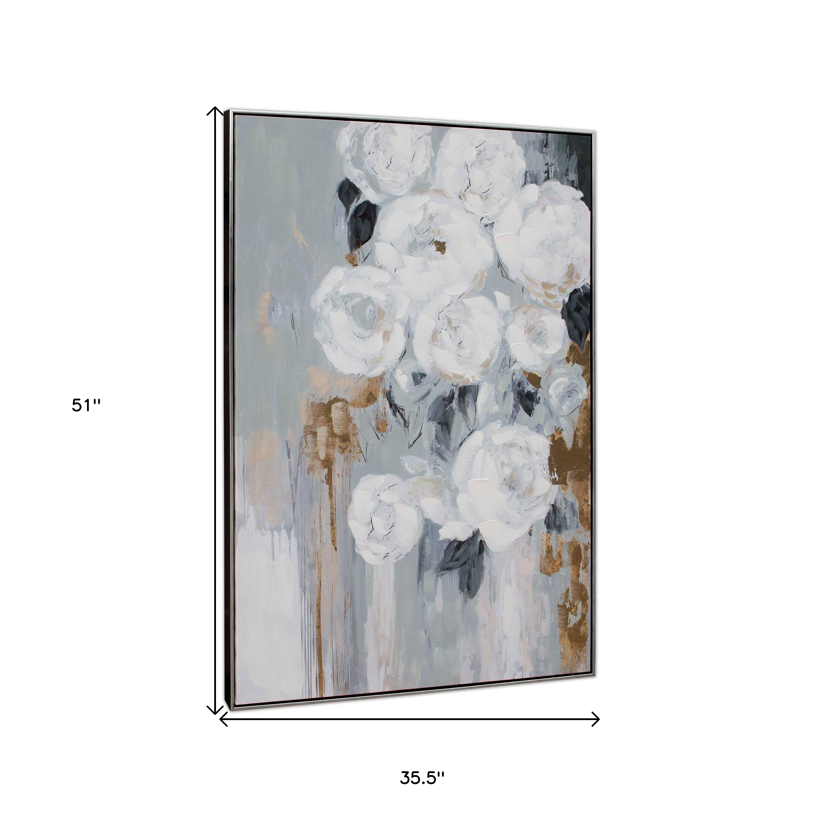 Add an air of fashion to your room and rejuvenate the space with this blanc fleur, hand painted canvas black floater frame painting wall art. Not a print, this fabulous work of art is truly hand-painted. Reproduced for you on canvas, this hanging decorative accent will be a trendy and fashionable way to dress your walls. Hang on your wall to add some up to date fashion and decoration. Adding this hanging wall art to your space to make your room feel more finished and attractive. Utilize this opportunity to create a focal point in the room with this fabulous wall decor option. Instantly liven up your space with this art that brings color and dimension to your walls. 51-inch H x 35.5-inch W x 3-inch D