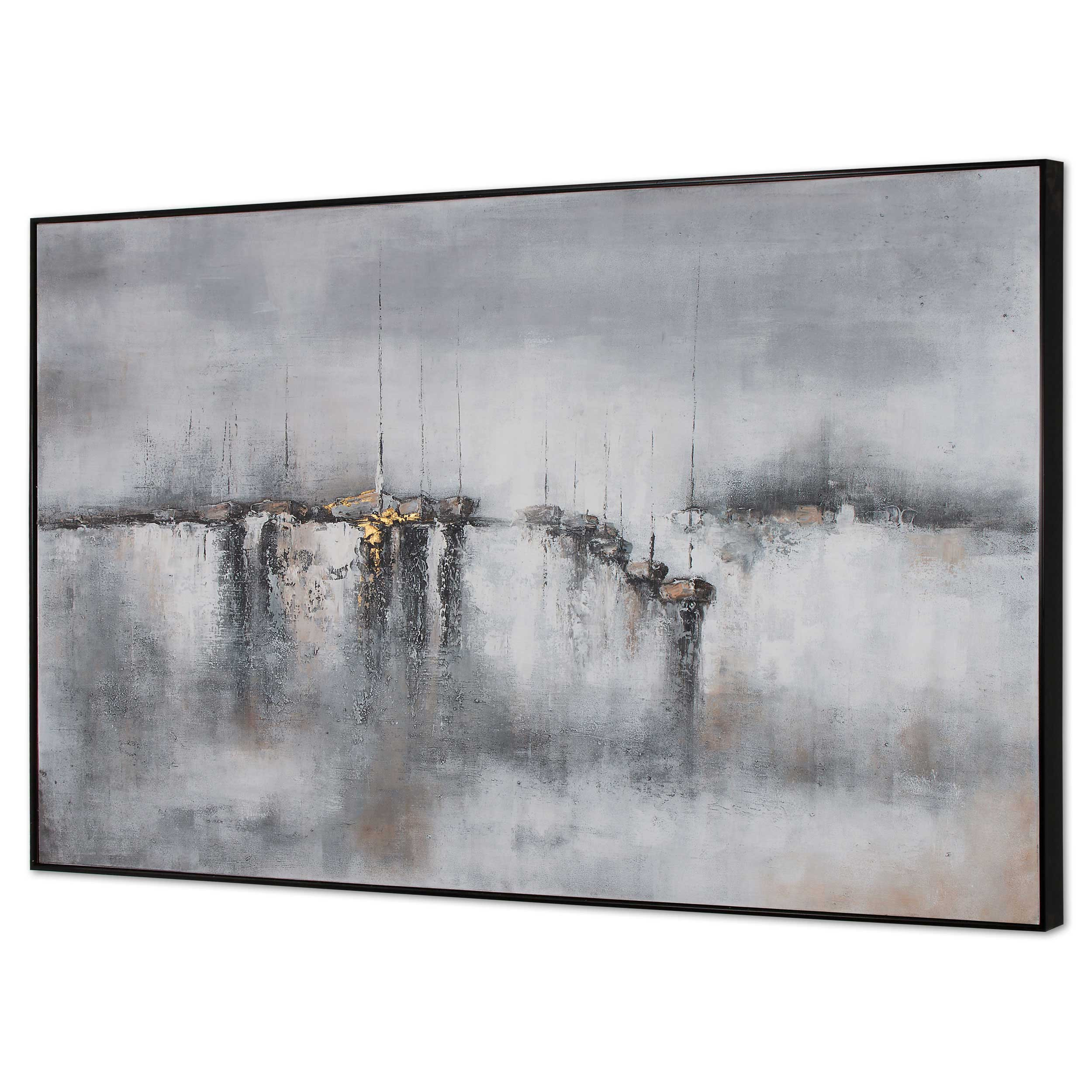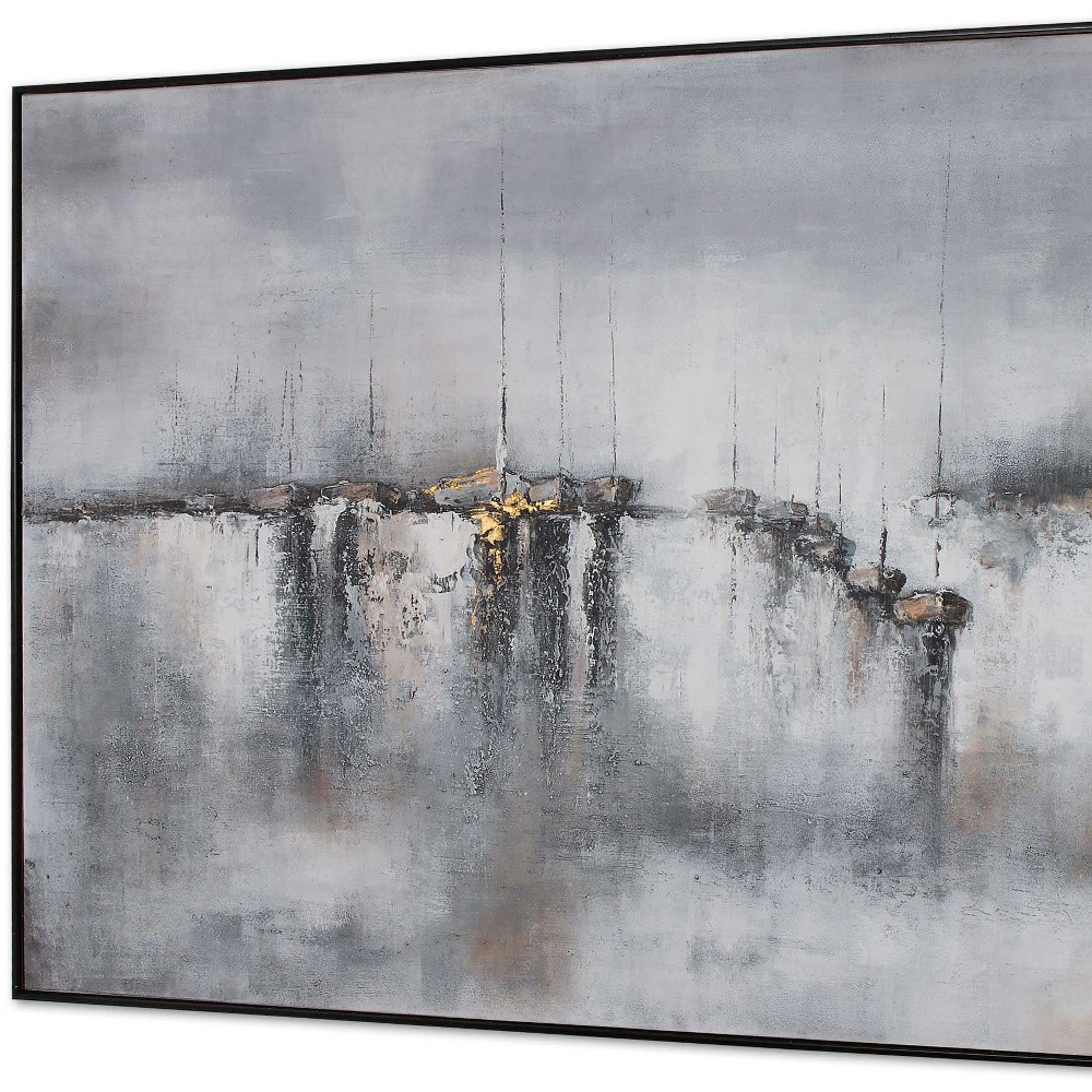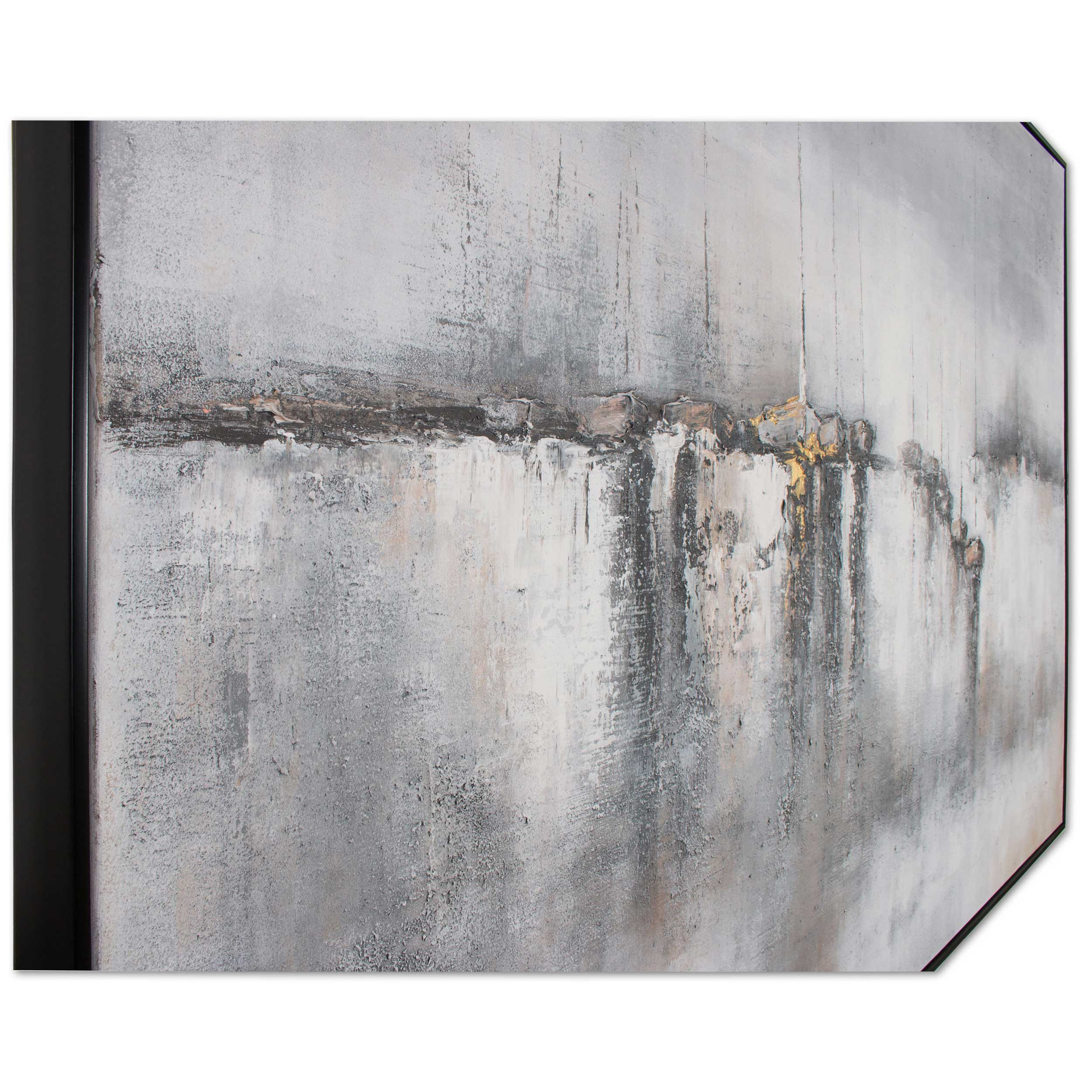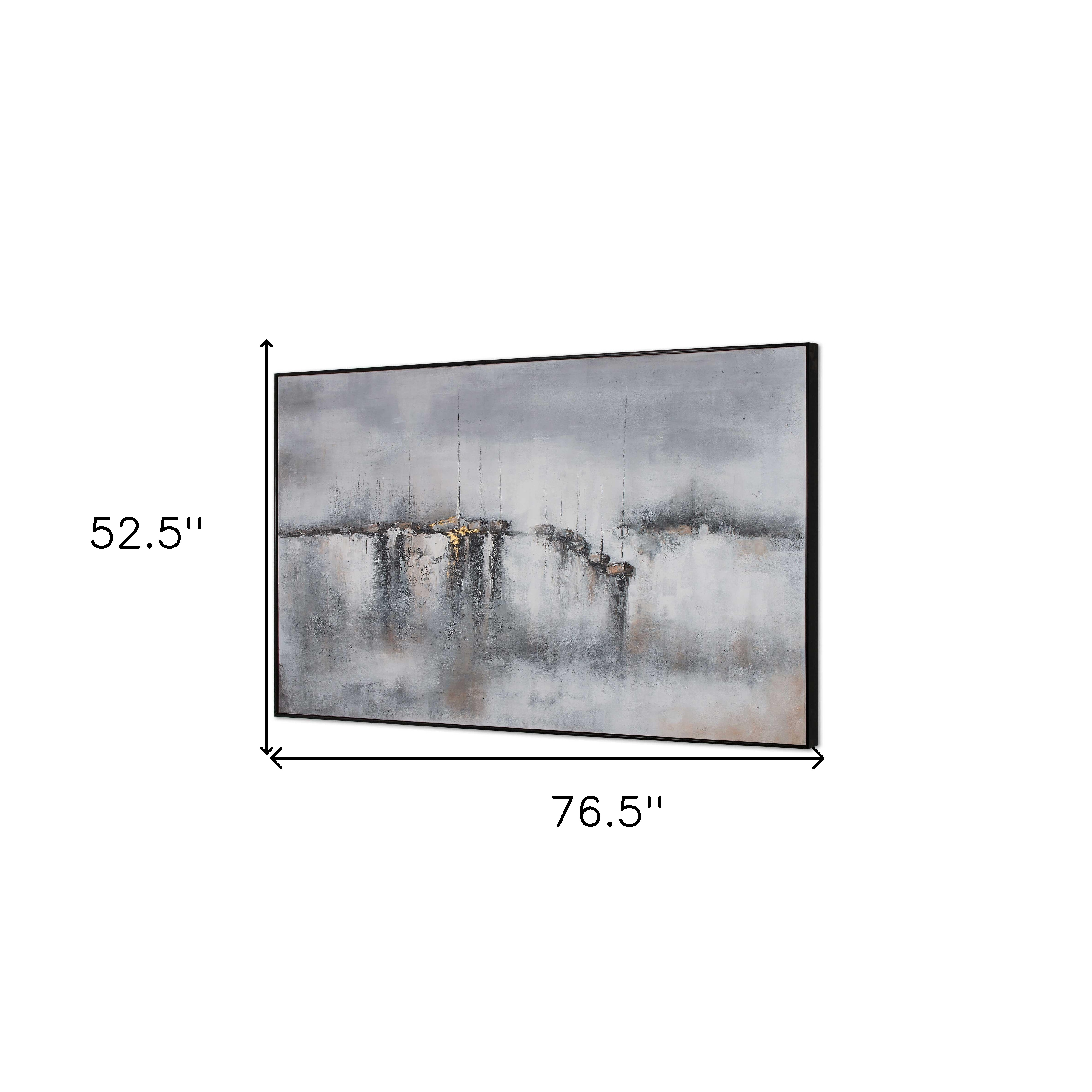Unique and decorative, this hushed breeze hand painted black floater frame wall art will leave a lasting impression. Not a print, this fabulous work of art is truly hand-painted. Reproduced for you on canvas, this hanging decorative accent will be a trendy and fashionable way to dress your walls. Hang on your wall to add some up to date fashion and decoration. Utilize this opportunity to create a focal point in the room with this fabulous wall decor option. 52.5-inch h x 76.5-inch w x 3.5-inch d.
