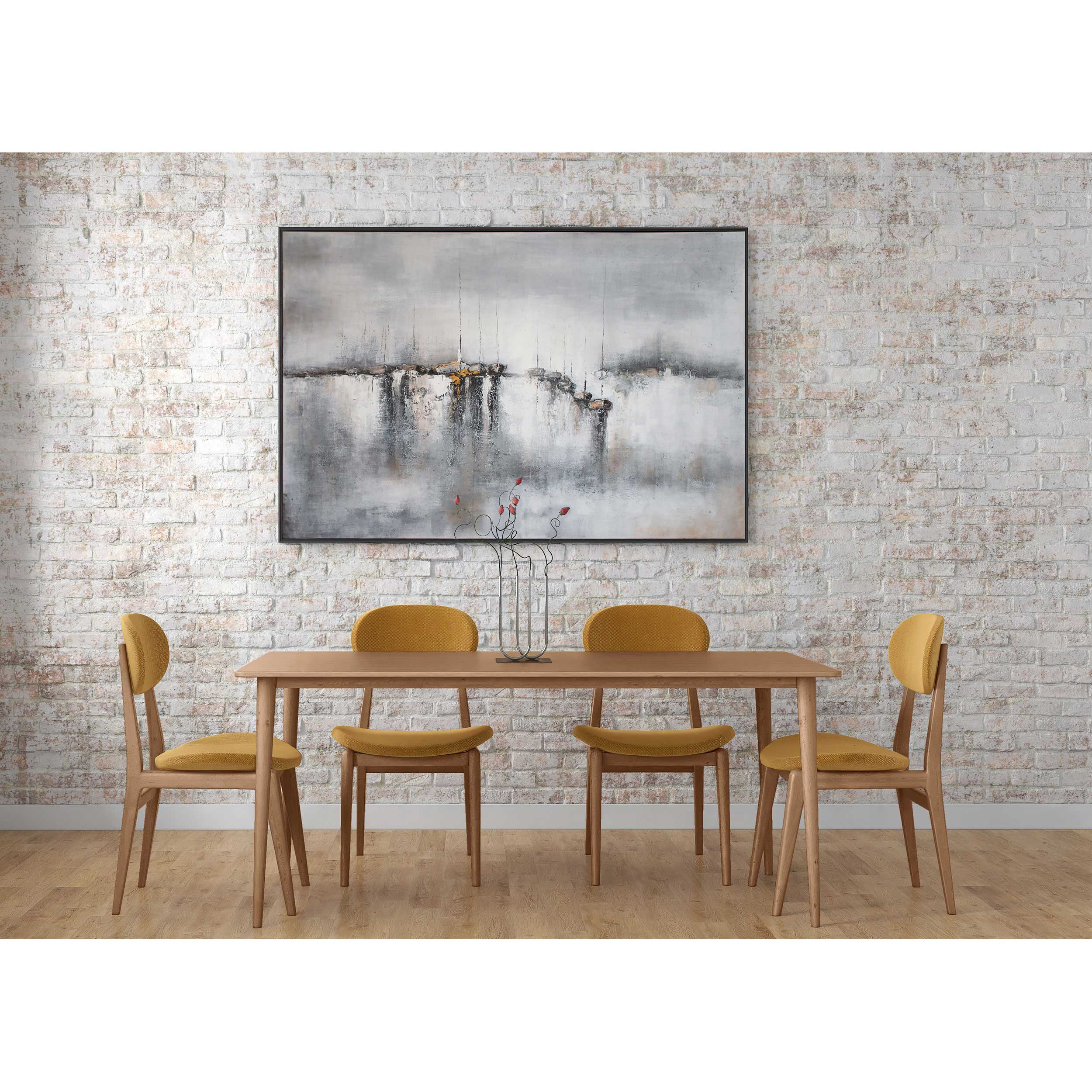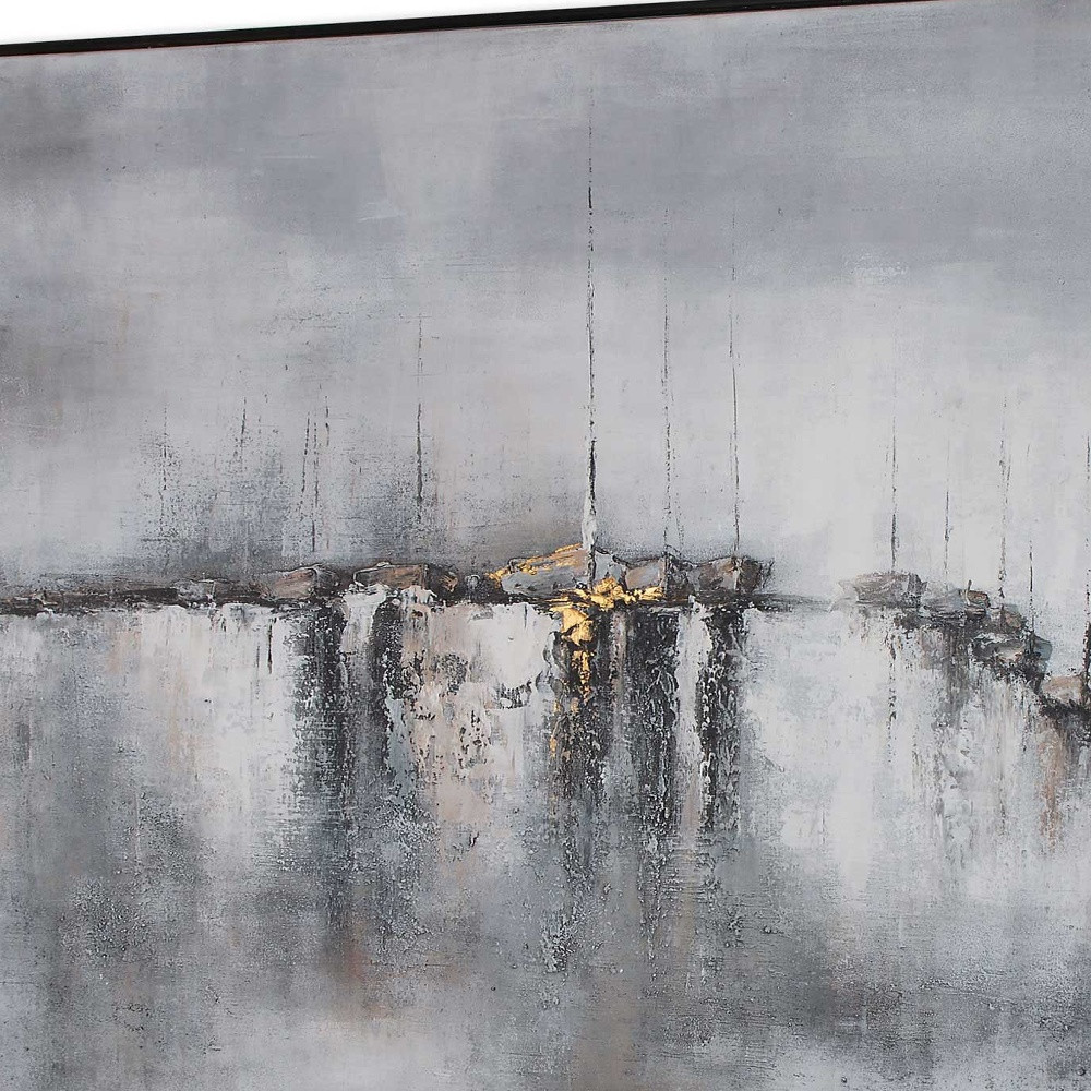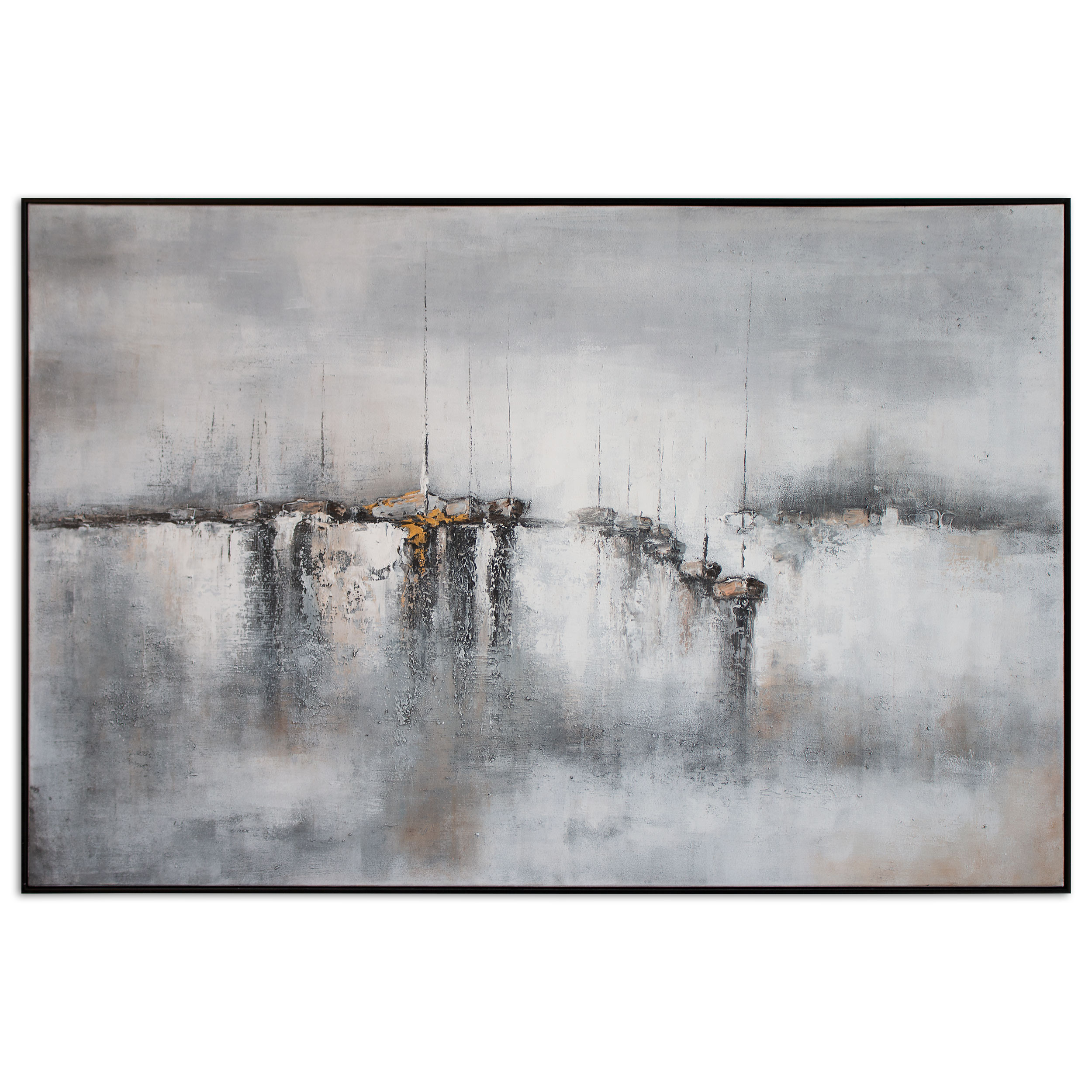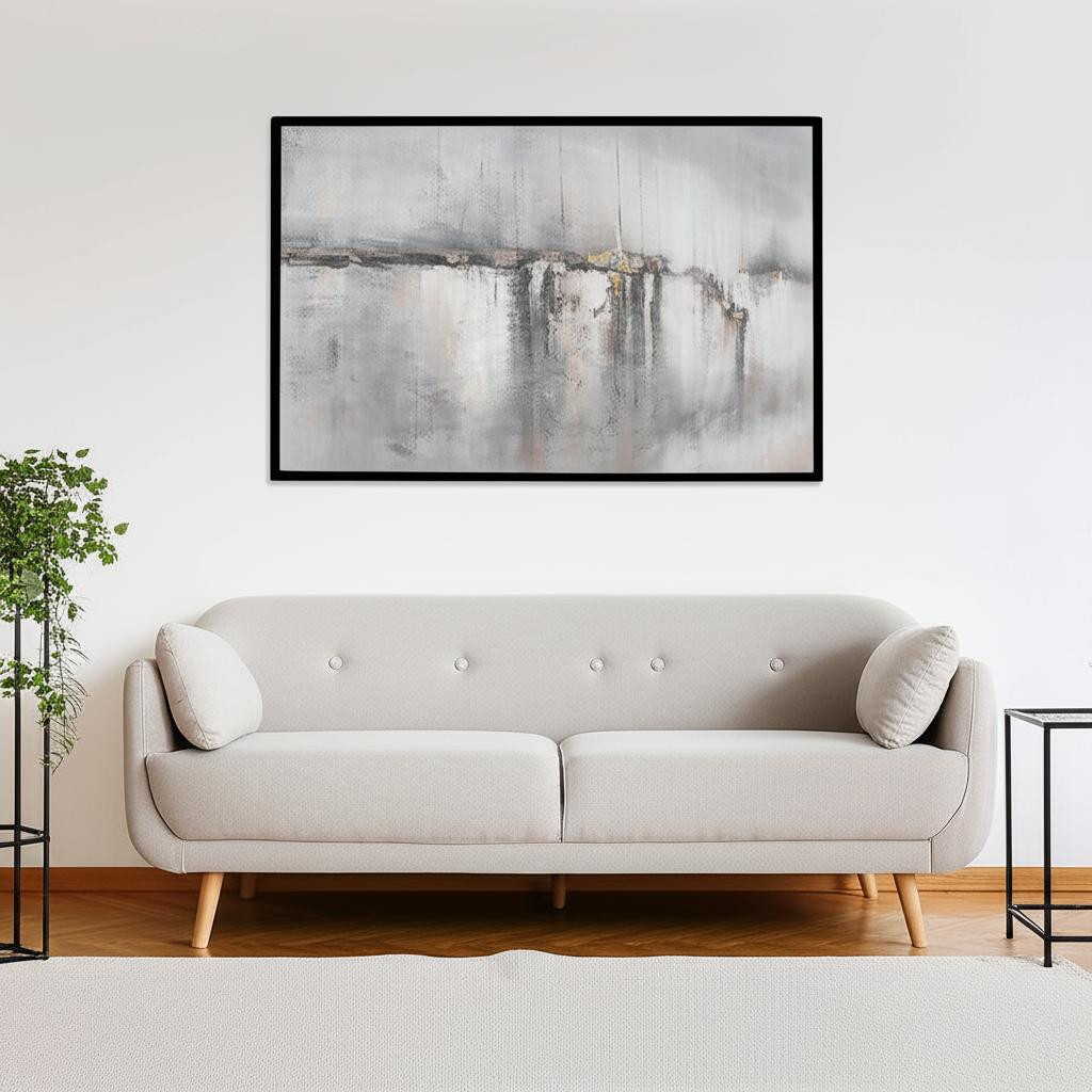 Unique and decorative, this hushed breeze hand painted black floater frame wall art will leave a lasting impression. Not a print, this fabulous work of art is truly hand-painted. Reproduced for you on canvas, this hanging decorative accent will be a trendy and fashionable way to dress your walls. Hang on your wall to add some up to date fashion and decoration. Utilize this opportunity to create a focal point in the room with this fabulous wall decor option. 52.5-inch h x 76.5-inch w x 3.5-inch d.