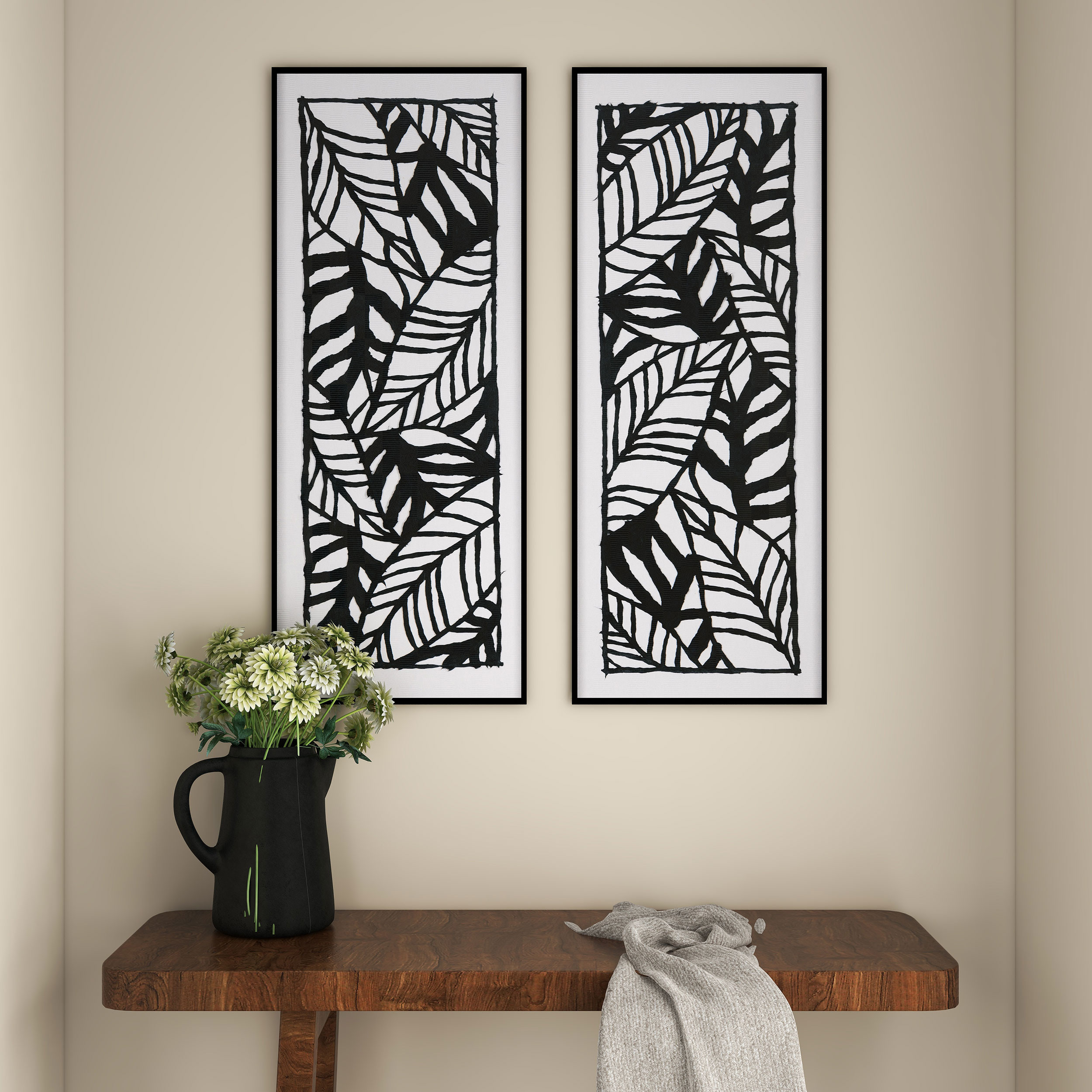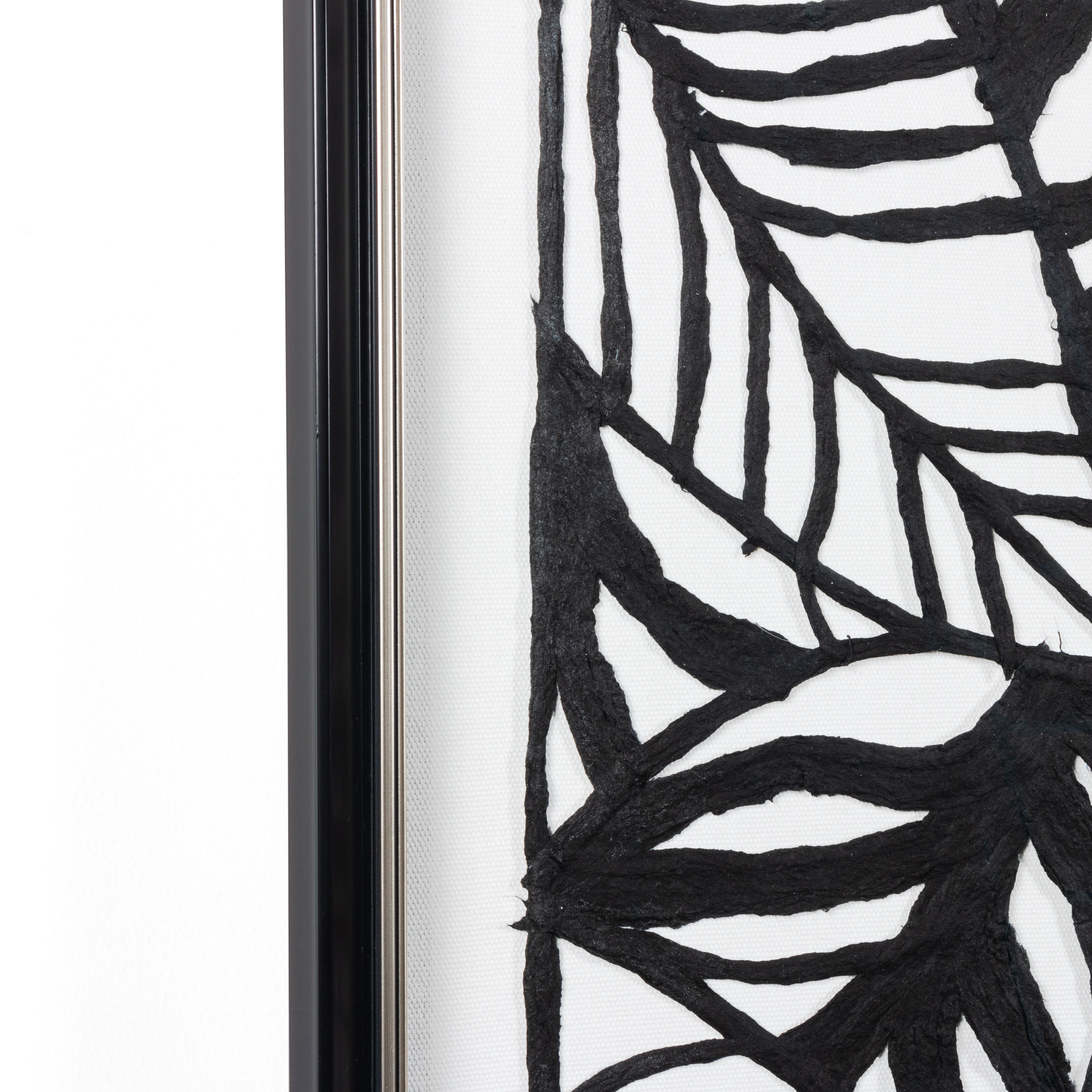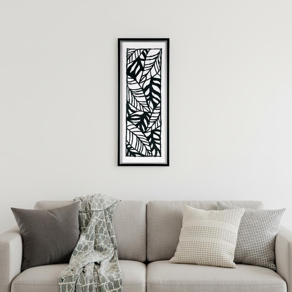 The modern palm leaves hand painted black floater frame textual art wall art is the perfect decorative accessory for your home. Not a print, this fabulous work of art is truly hand-painted. Reproduced for you on paper, this hanging decorative accent will be a trendy and fashionable way to dress your walls. Hang on your wall to add some up to date fashion and decoration. Utilize this opportunity to create a focal point in the room with this fabulous wall decor option. 41-inch h x 18-inch w x 3-inch d.