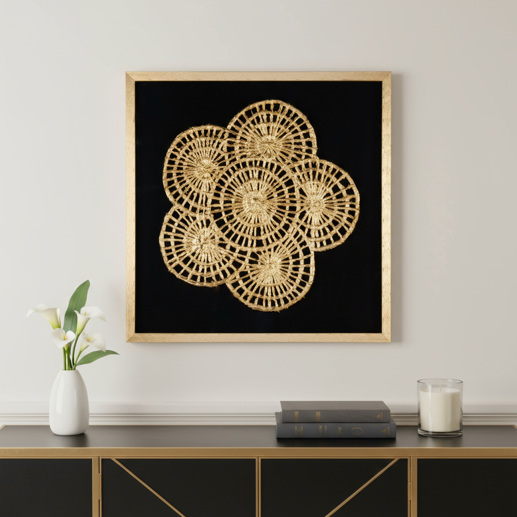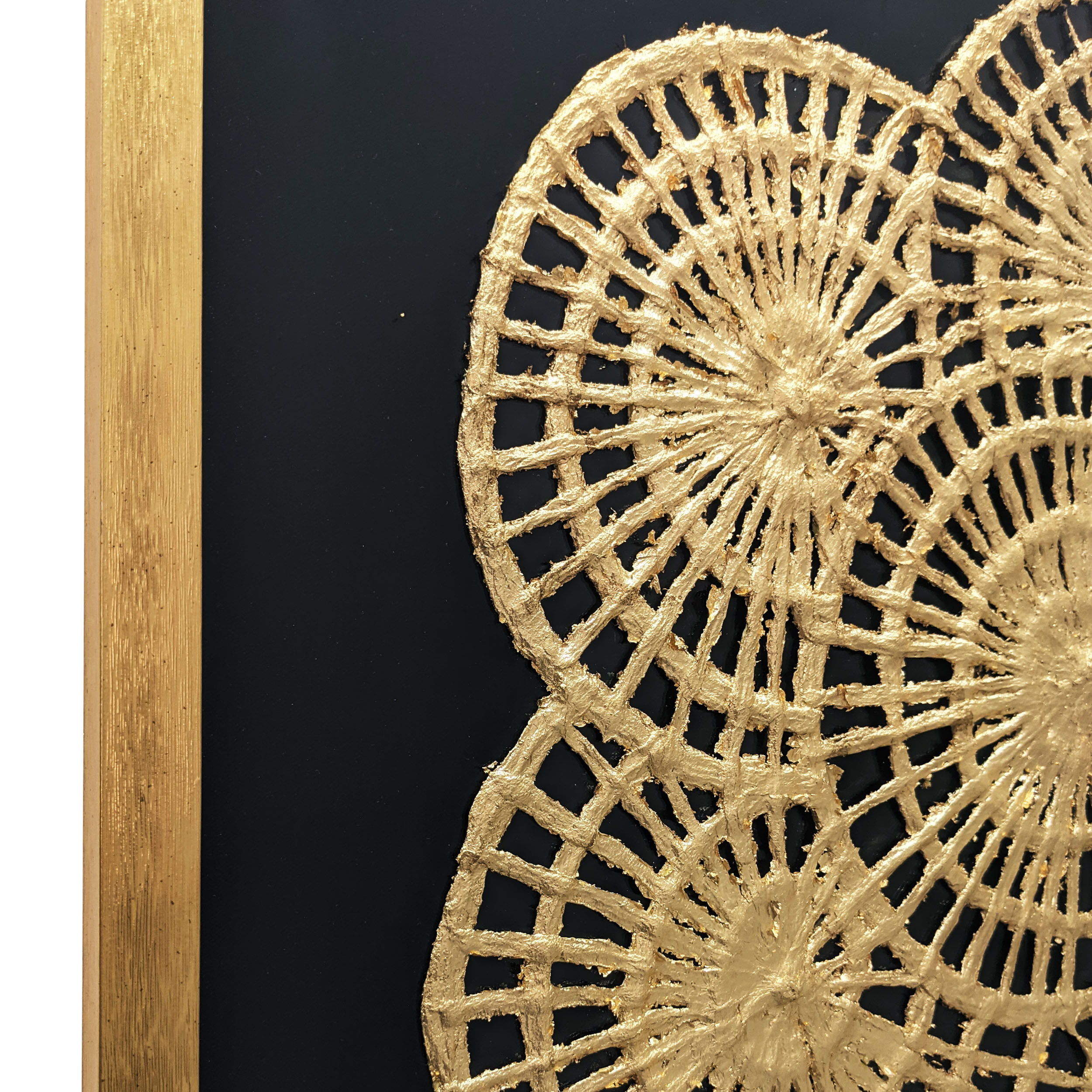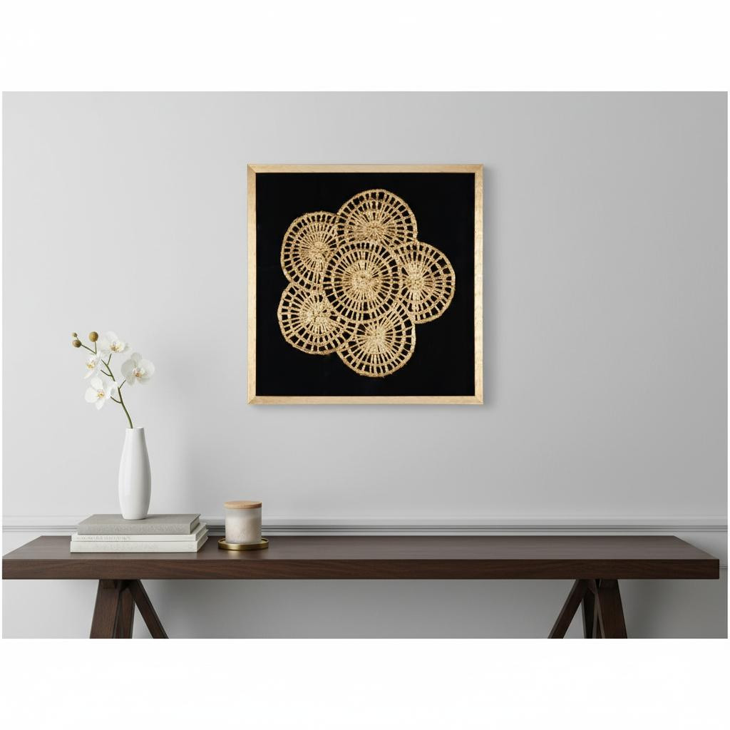 Add an air of fashion to your room and rejuvenate the space with this modern palm leaves gold shadowbox textual art wall art. This graphic art is a way to express your artistic style and add some fashion to your walls. Not a print, this fabulous work of art is truly hand-painted. Reproduced for you on paper, this hanging decorative accent will be a trendy and fashionable way to dress your walls. Hang on your wall to add some up to date fashion and decoration. Instantly liven up your space with this art that brings color and dimension to your walls. 32-inch h x 31.89-inch w x 3.93-inch d.