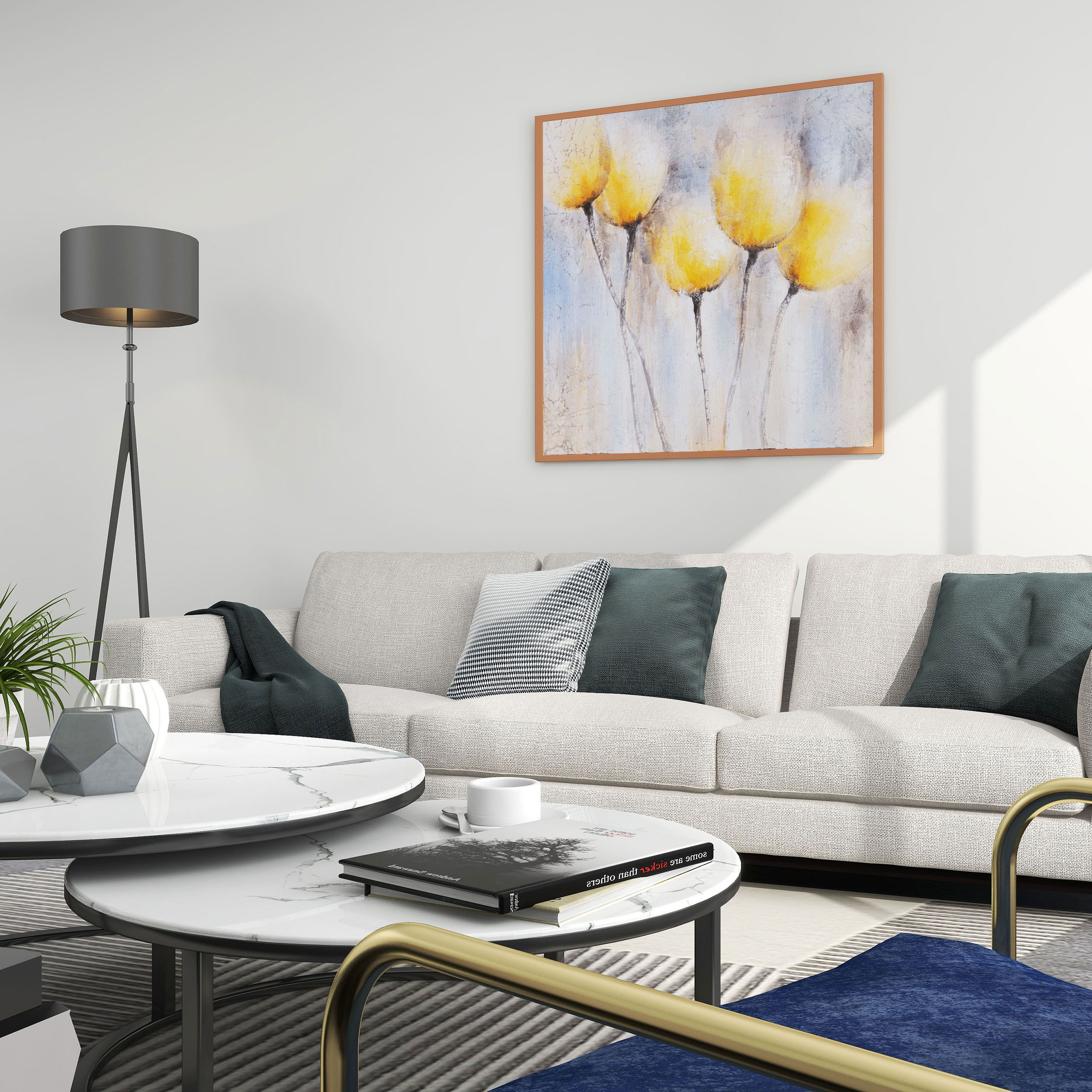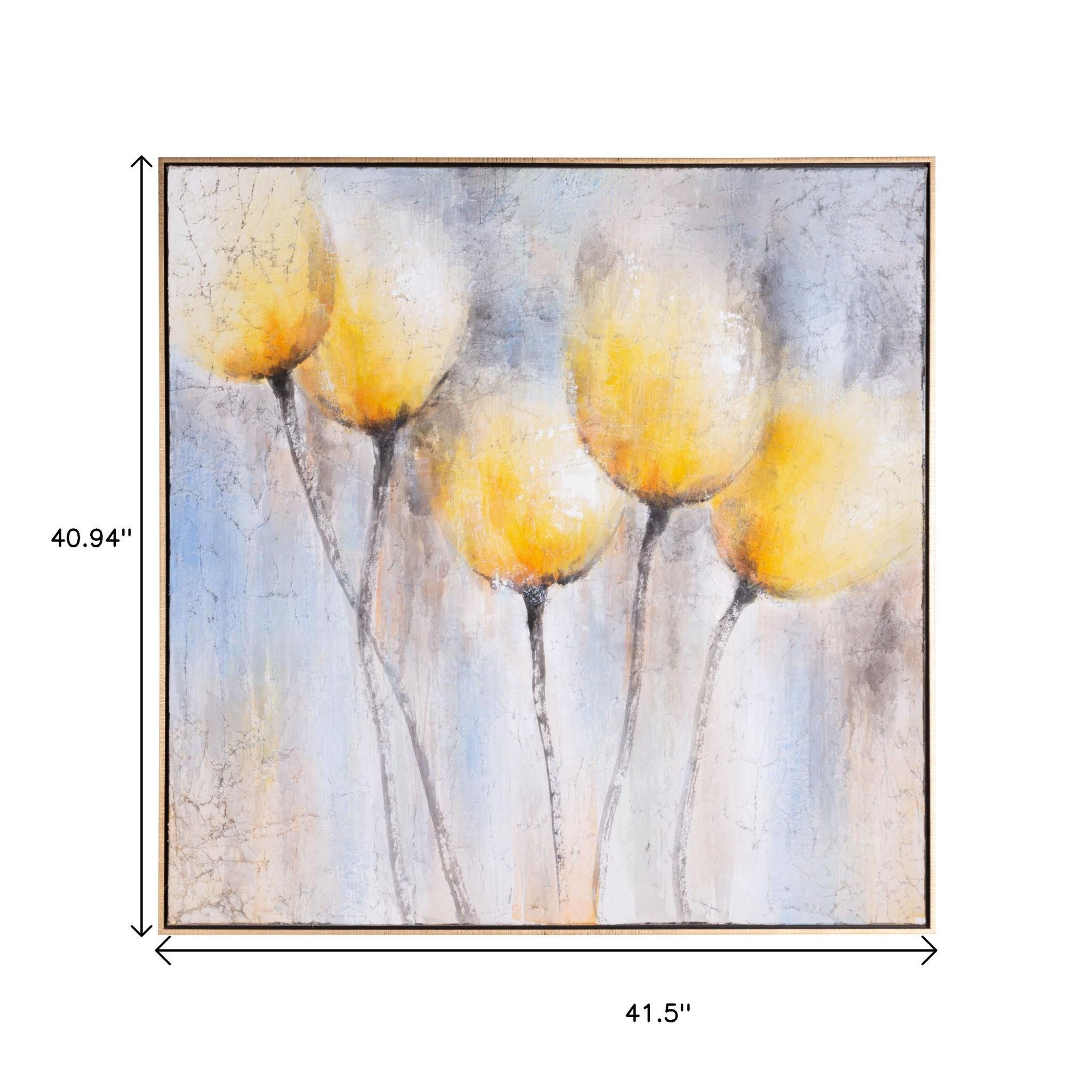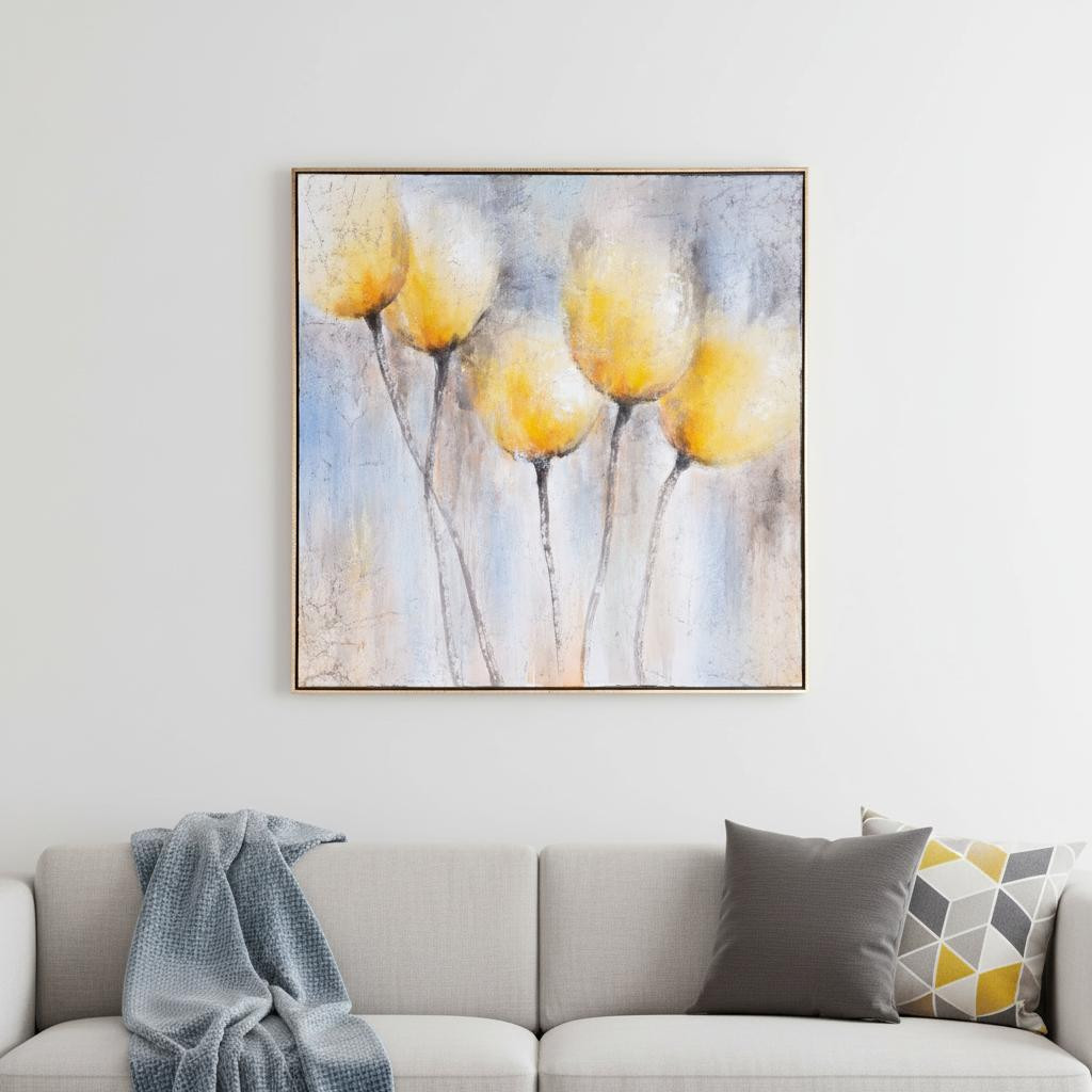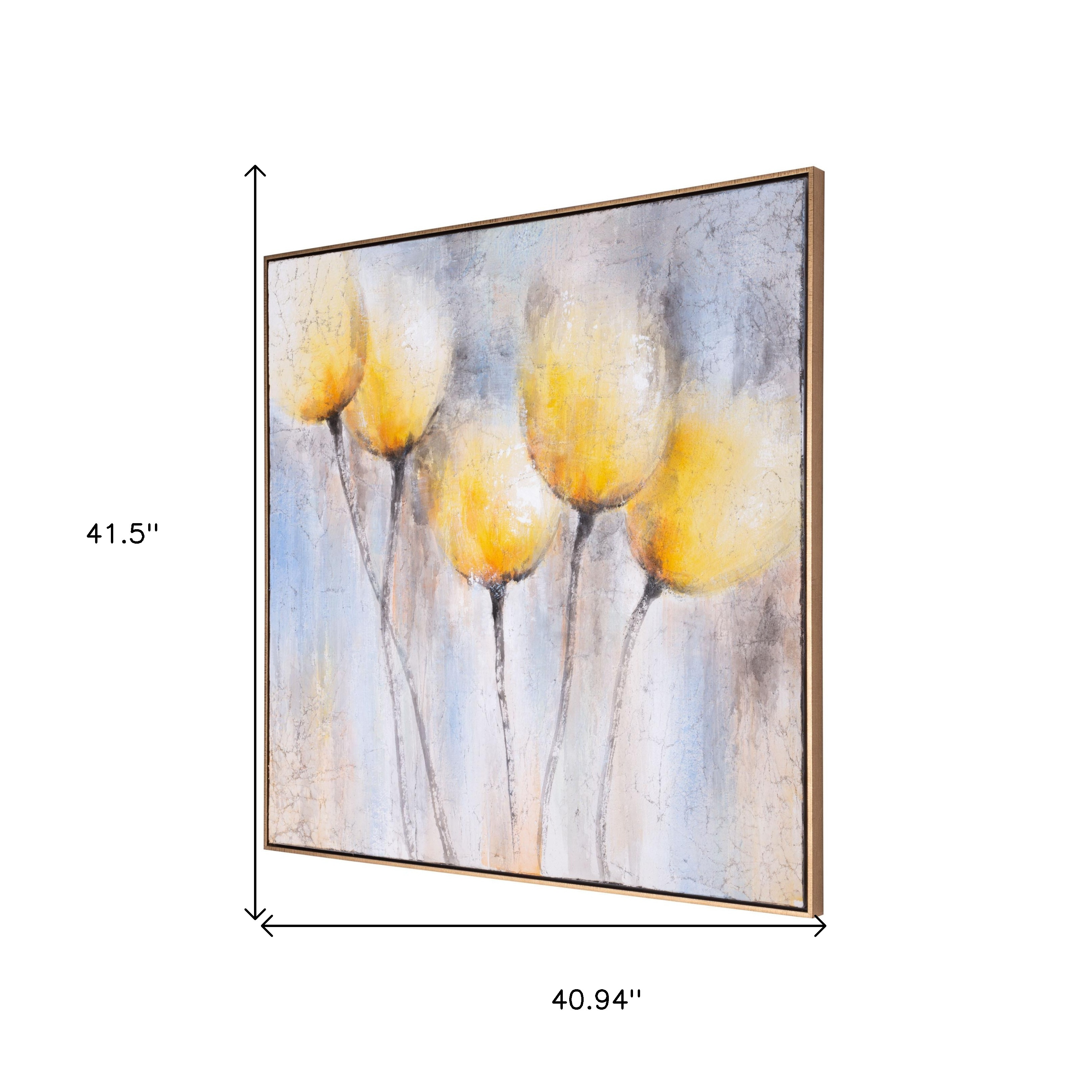 The sunny blooms gold floater frame painting wall art is the perfect decorative accessory for your home. Not a print, this fabulous work of art is truly hand-painted. Reproduced for you on canvas, this hanging decorative accent will be a trendy and fashionable way to dress your walls. Adding this hanging wall art to your space to make your room feel more finished and attractive. Instantly liven up your space with this art that brings color and dimension to your walls. 41.5-inch h x 40.94-inch w x 3.5-inch d.
