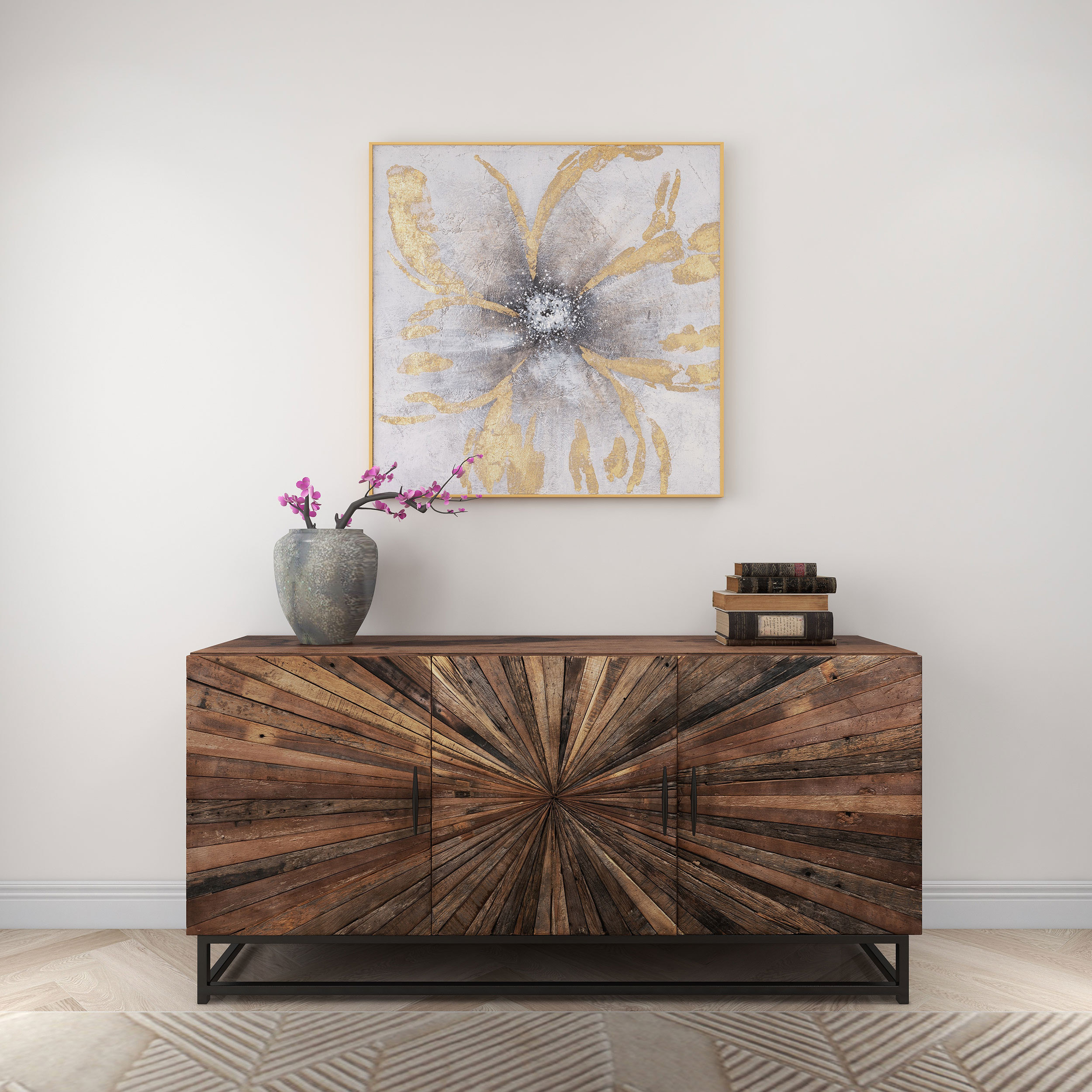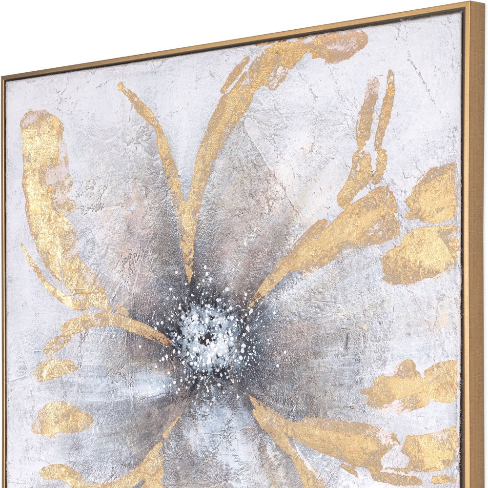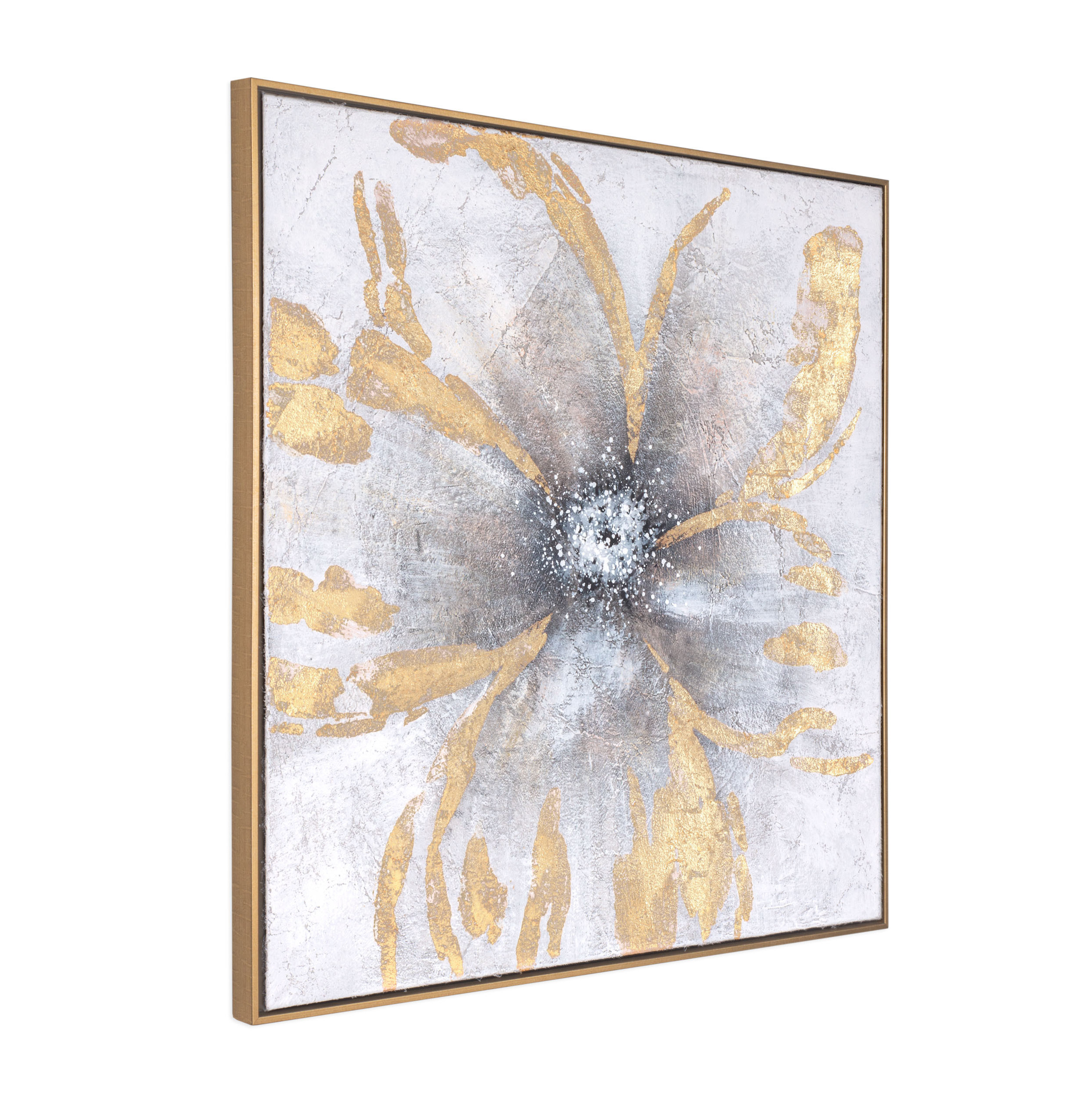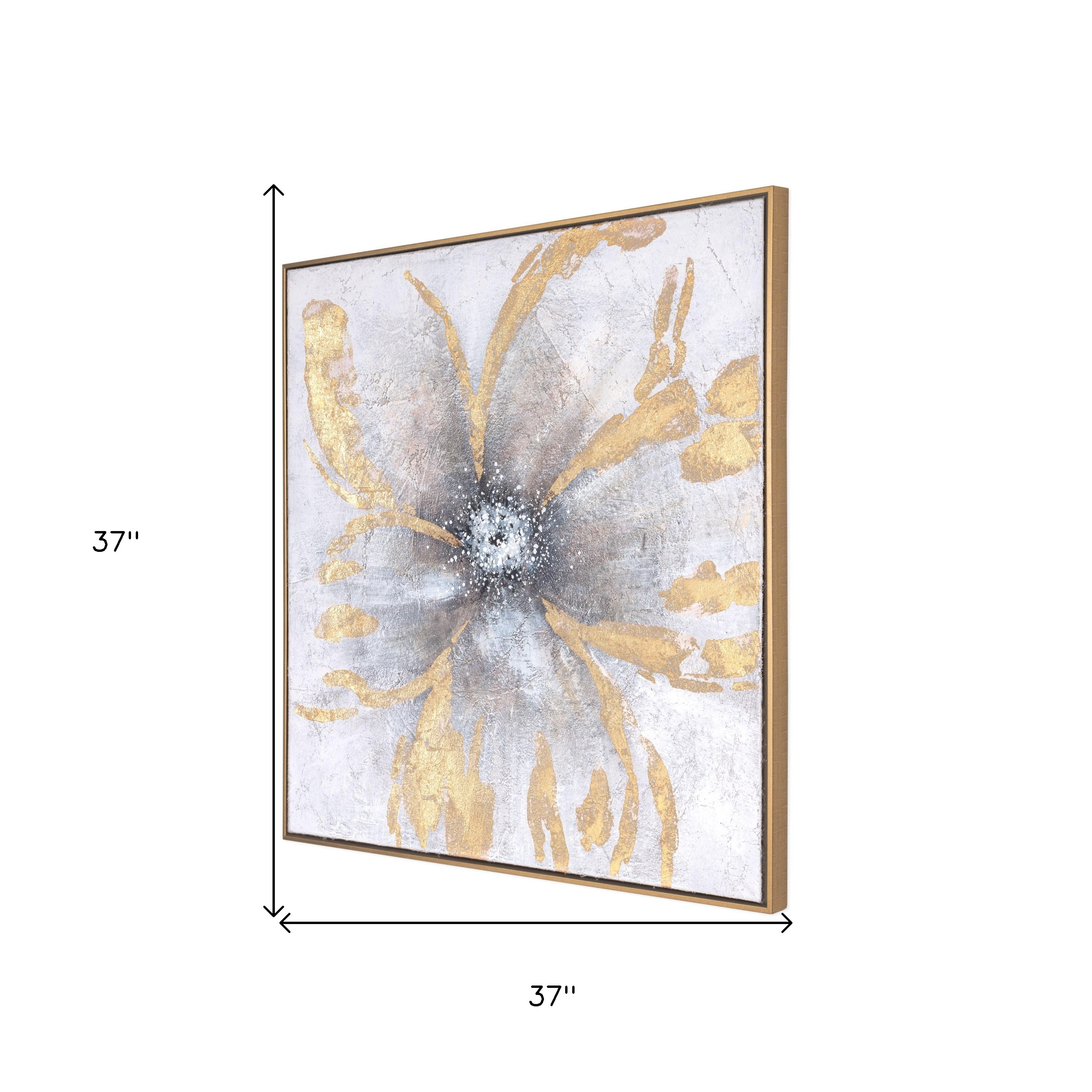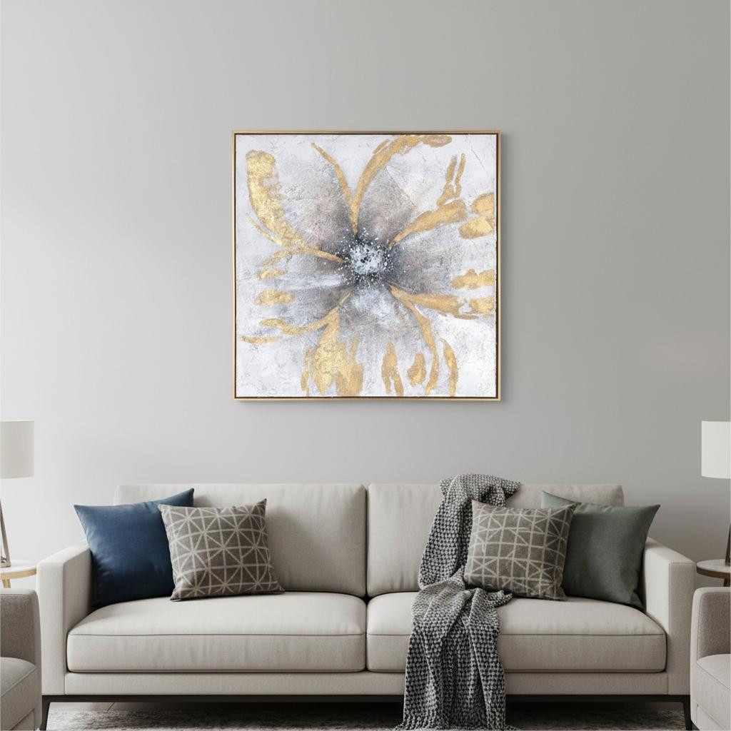 Bring some sizzle to your space with this eye-catching brilliant blossom gold floater frame painting wall art. Not a print, this fabulous work of art is truly hand-painted. Reproduced for you on canvas, this hanging decorative accent will be a trendy and fashionable way to dress your walls. Adding this hanging wall art to your space to make your room feel more finished and attractive. Utilize this opportunity to create a focal point in the room with this fabulous wall decor option. 37-inch h x 37-inch w x 4-inch d.