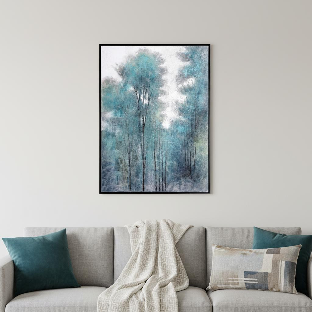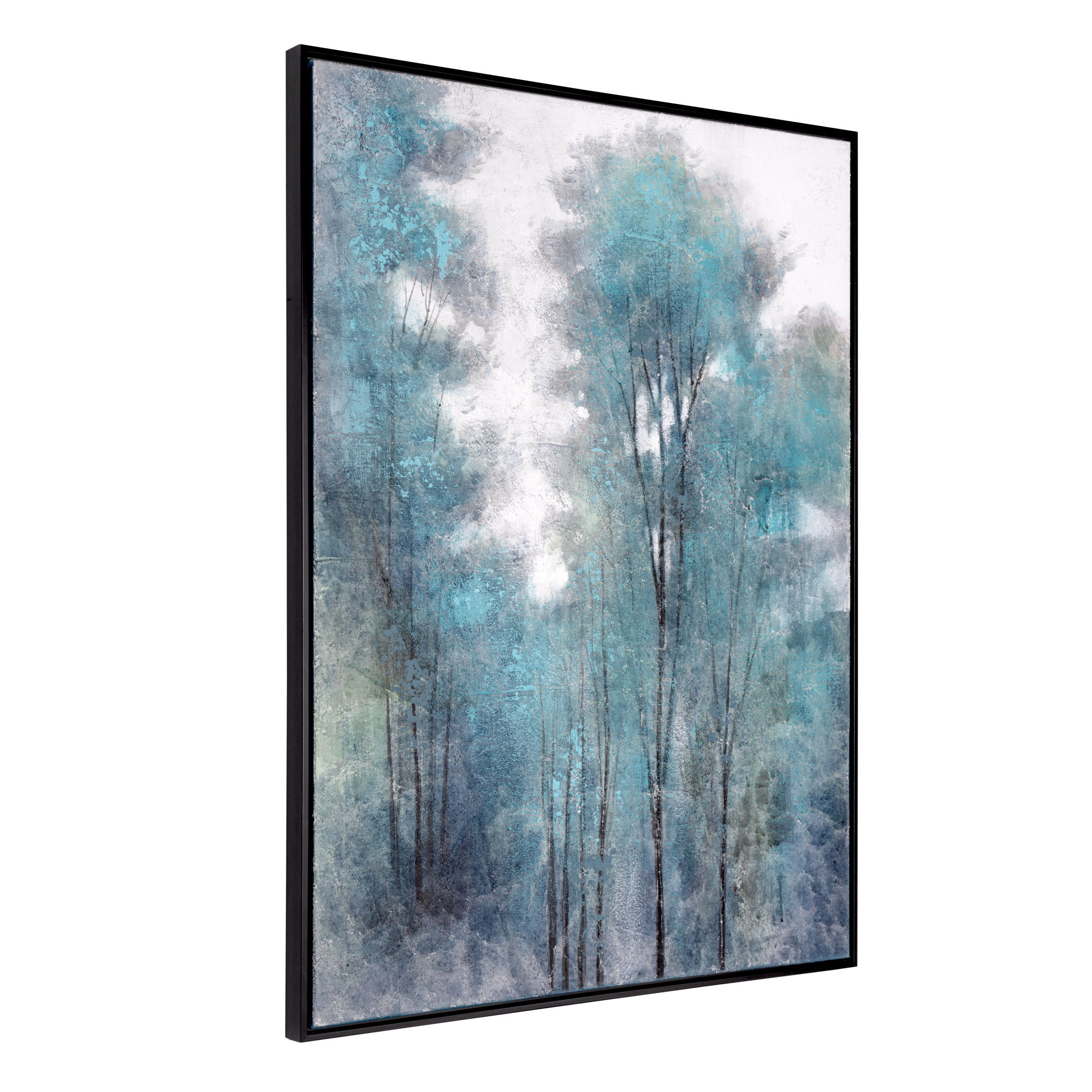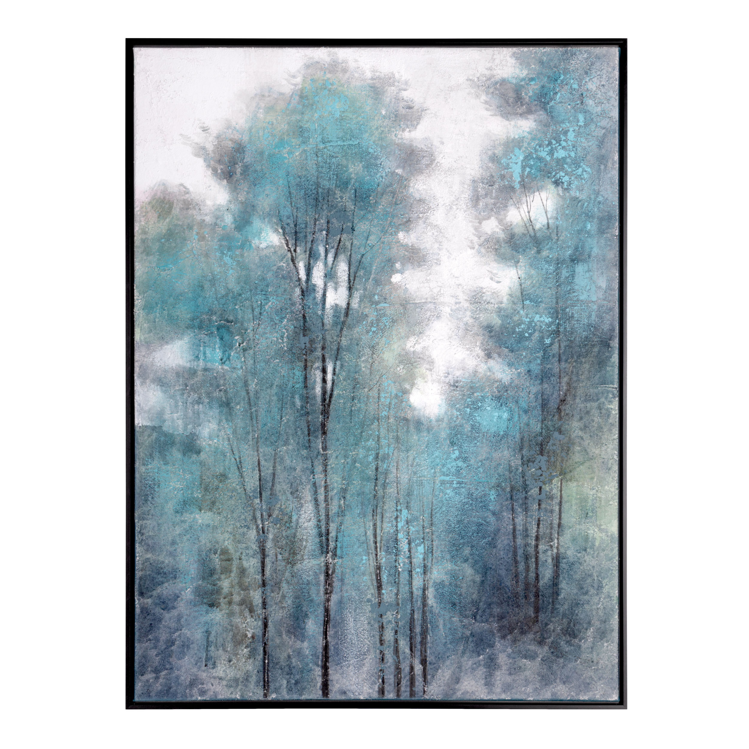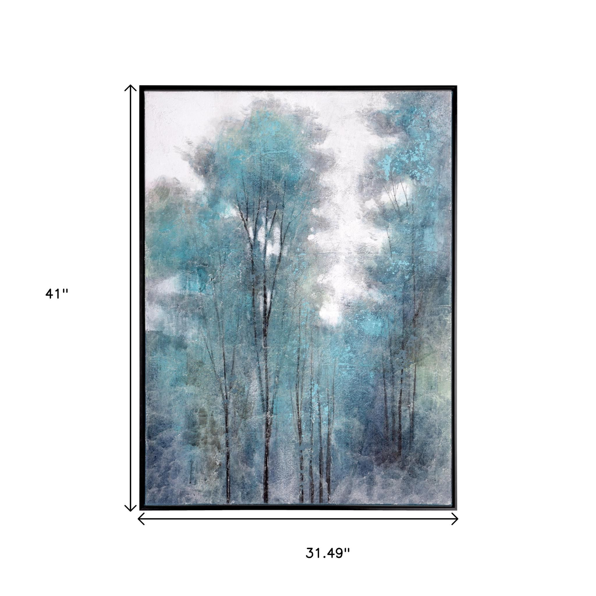 The aquamarine forest hand painted black floater frame wall art is the perfect decorative accessory for your home. Not a print, this fabulous work of art is truly hand-painted. Reproduced for you on canvas, this hanging decorative accent will be a trendy and fashionable way to dress your walls. Adding this hanging wall art to your space to make your room feel more finished and attractive. Instantly liven up your space with this art that brings color and dimension to your walls. 41-inch h x 31.49-inch w x 3.5-inch d.