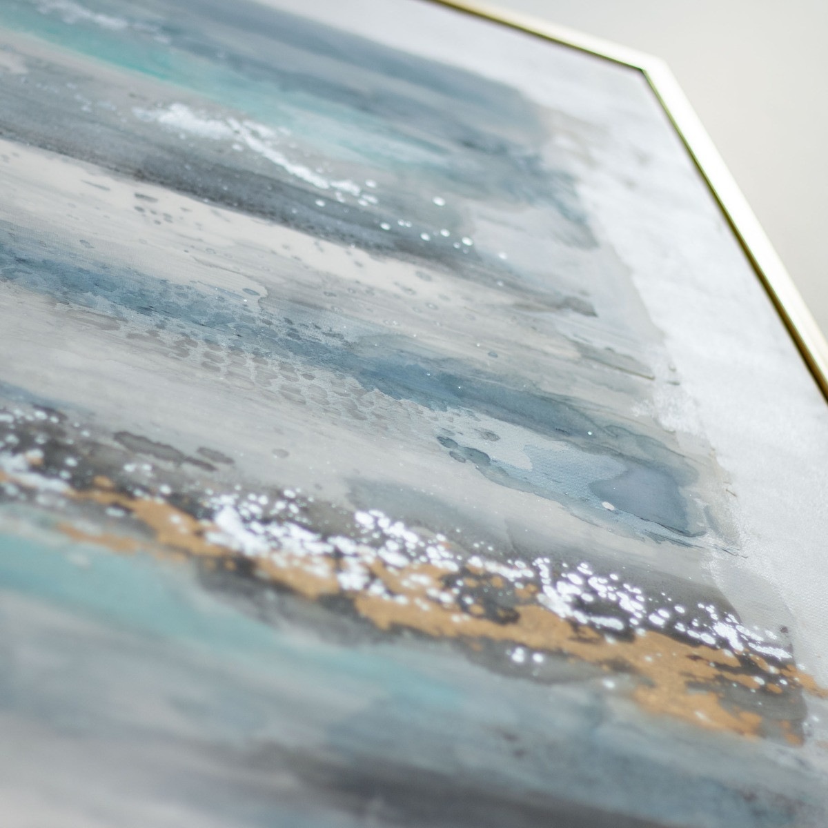 This blue ribbons gold floater frame painting wall art will add a beautiful decorative accent to your decor. Not a print, this fabulous work of art is truly hand-painted. Reproduced for you on canvas, this hanging decorative accent will be a trendy and fashionable way to dress your walls. Adding this hanging wall art to your space to make your room feel more finished and attractive. Instantly liven up your space with this art that brings color and dimension to your walls. 64.5-inch h x 44.5-inch w x 3-inch d.