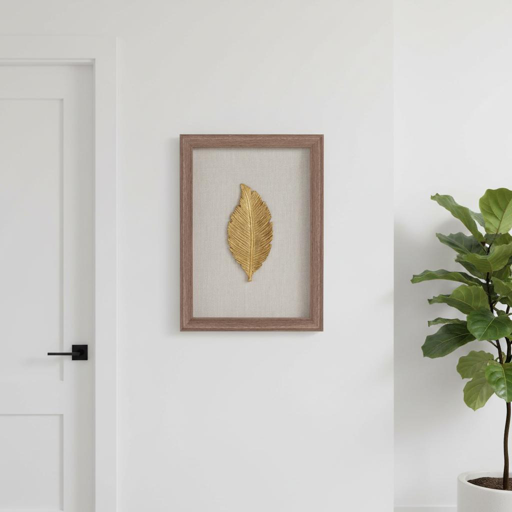 This golden leaves ii brown shadowbox textual art wall art will add a beautiful decorative accent to your decor. This graphic art is a way to express your artistic style and add some fashion to your walls. Reproduced for you on polyresin, this hanging decorative accent will be a trendy and fashionable way to dress your walls. Hang on your wall to add some up to date fashion and decoration. Utilize this opportunity to create a focal point in the room with this fabulous wall decor option. 13-inch h x 10-inch w x 2-inch d.