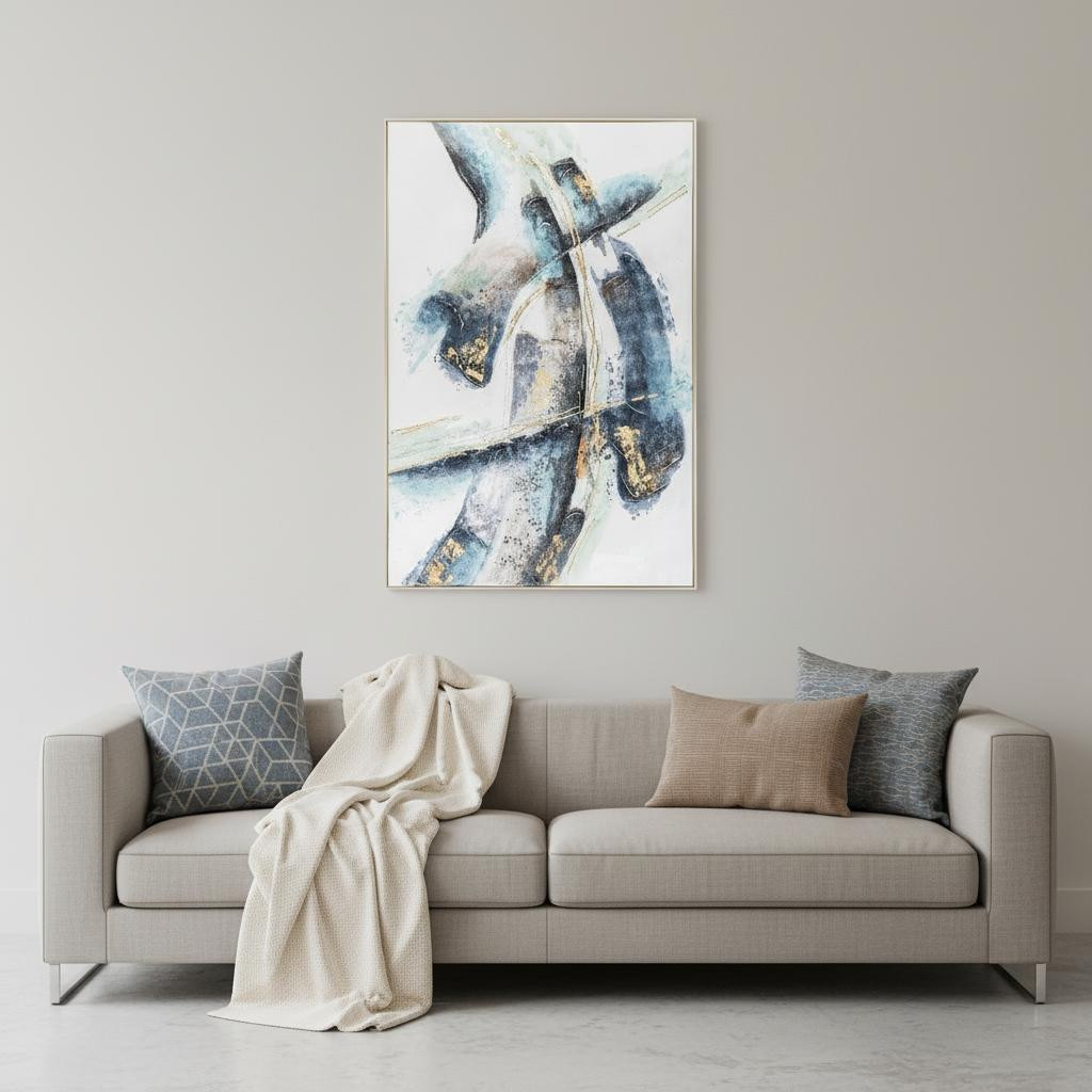 Bring some sizzle to your space with this eye-catching traverse silver floater frame painting wall art. Not a print, this fabulous work of art is truly hand-painted. Reproduced for you on canvas, this hanging decorative accent will be a trendy and fashionable way to dress your walls. Adding this hanging wall art to your space to make your room feel more finished and attractive. Utilize this opportunity to create a focal point in the room with this fabulous wall decor option. 77-inch h x 52.5-inch w x 3.5-inch d.