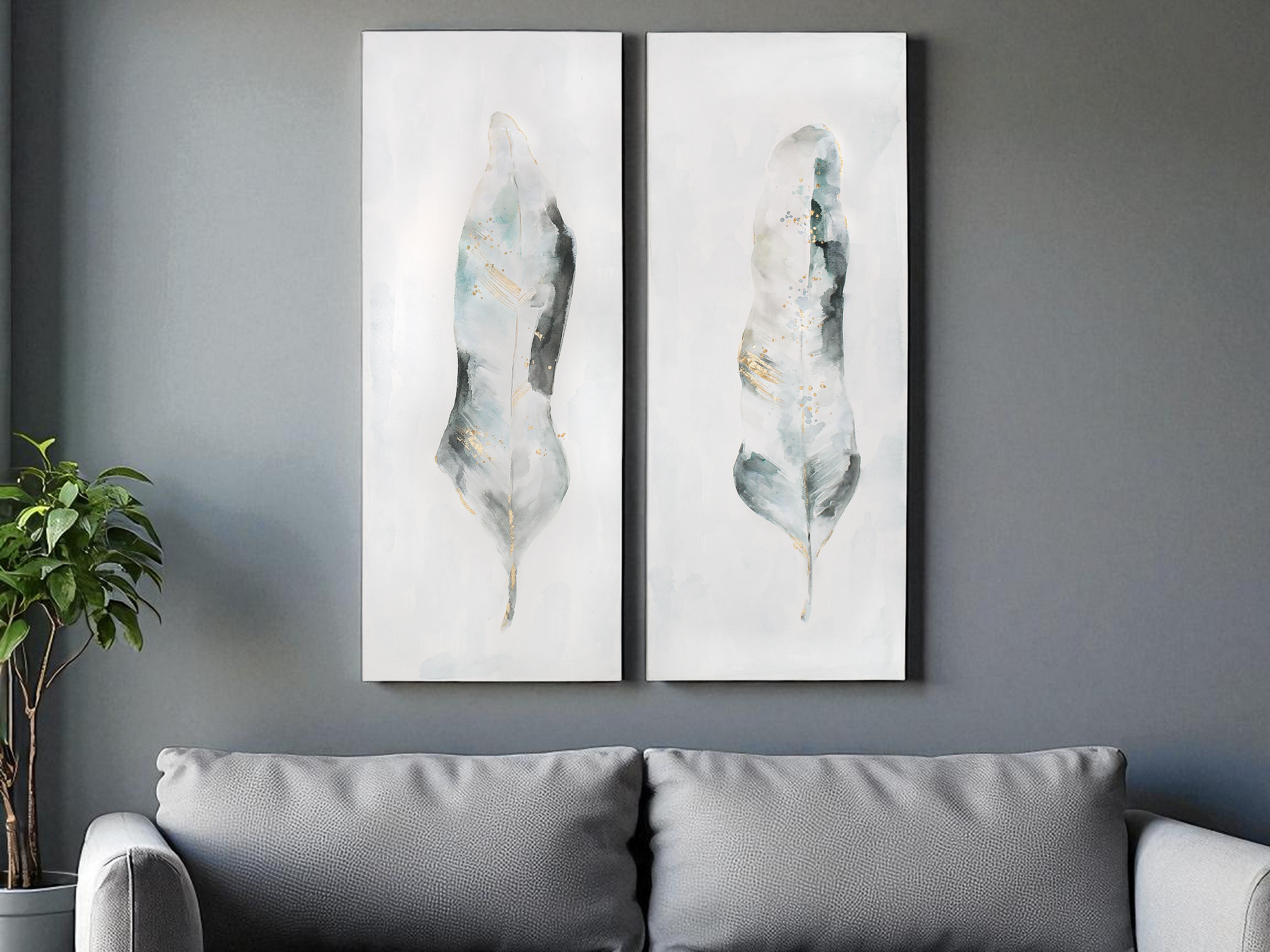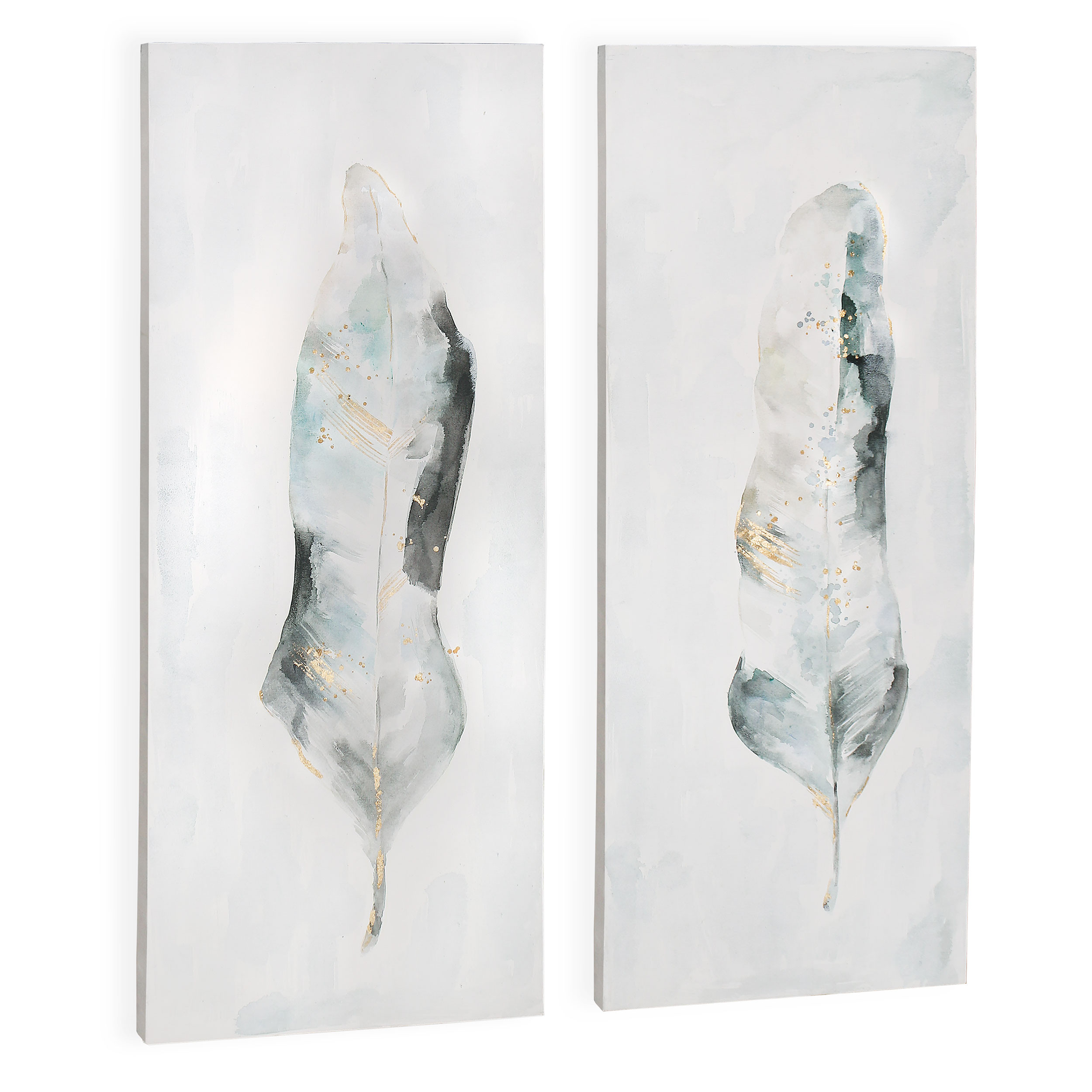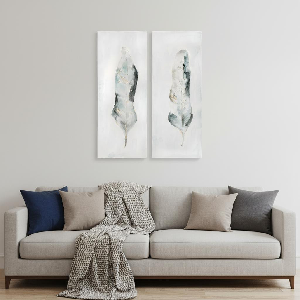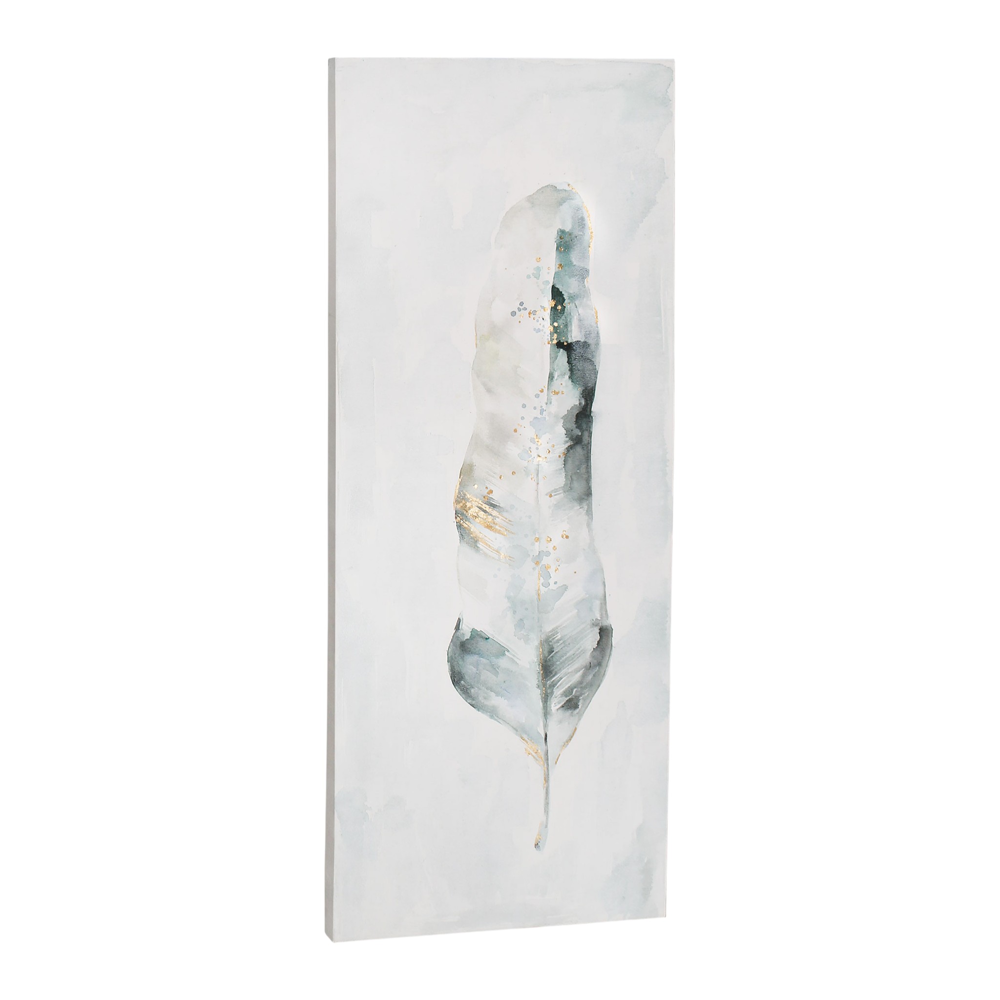 Unique and decorative, this plume s2 hand painted unframed wall art will leave a lasting impression. Not a print, this fabulous work of art is truly hand-painted. Reproduced for you on canvas, this hanging decorative accent will be a trendy and fashionable way to dress your walls. Adding this hanging wall art to your space to make your room feel more finished and attractive. Utilize this opportunity to create a focal point in the room with this fabulous wall decor option. 52-inch h x 22-inch w x 4.5-inch d.