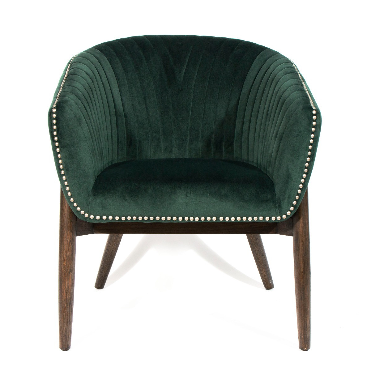 Give your living room, bedroom, or office a facelift with this beautifully crafted 28-inch green and brown velvet arm chair. This sturdy velvet upholstered arm chair comes in a chic channel tufted emerald green color to give your space just the right look. The sturdy inner frame is built with high quality solid wood, includes armrests, and features a cushion back that is accented with soft and comfortable cushioning. Nailhead trim gives this chair a refined look that adds additional texture and visual interest. 32-inch h x 28-inch w x 27-inch d.