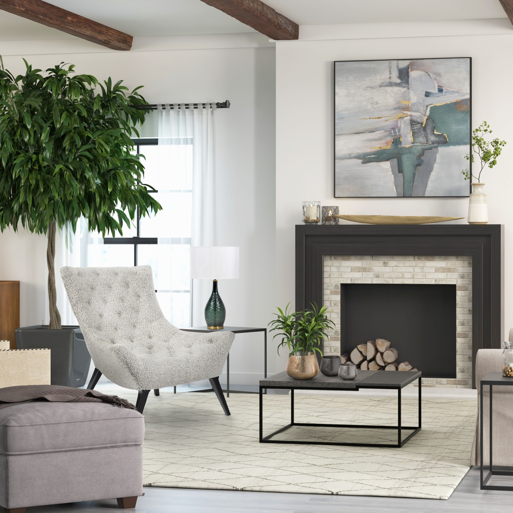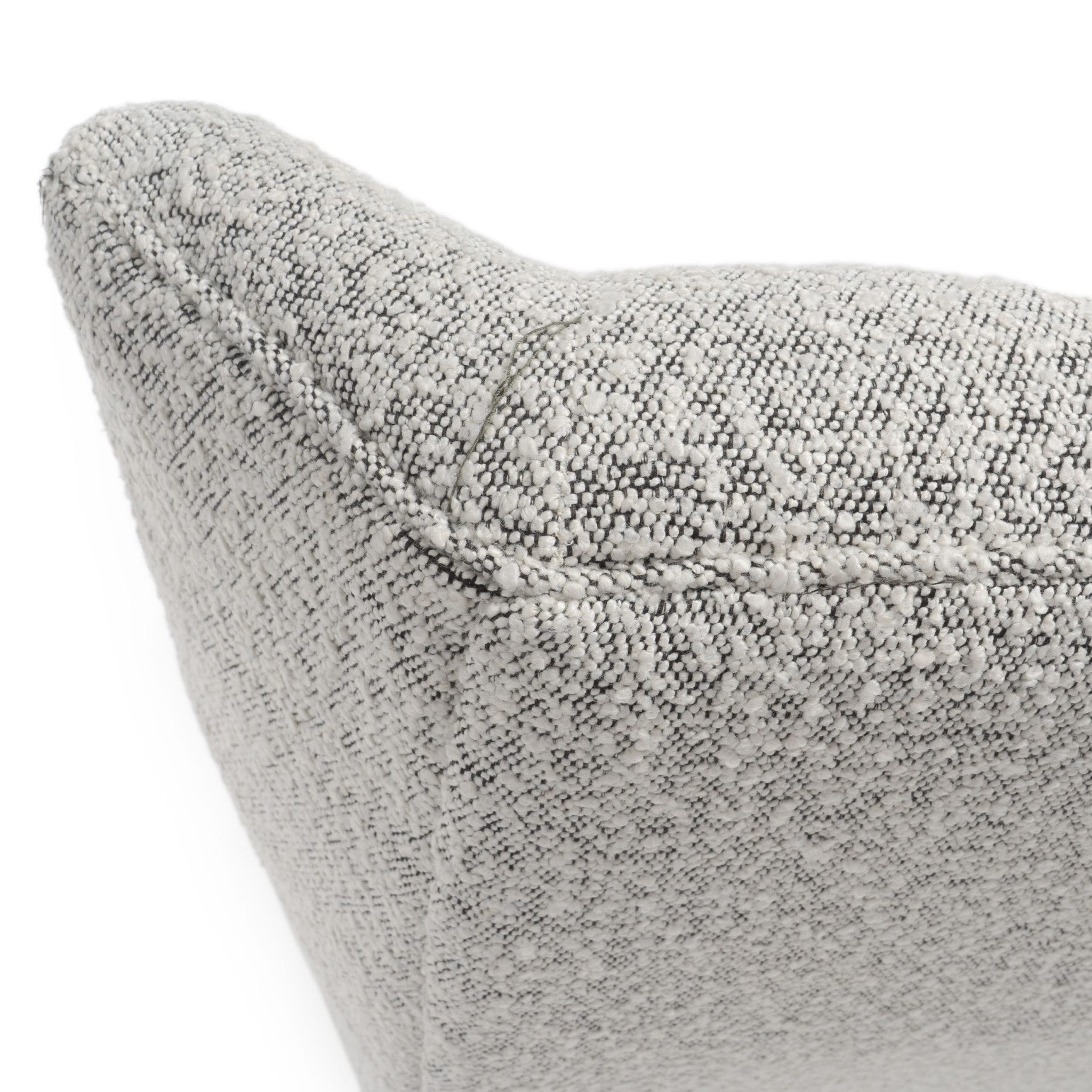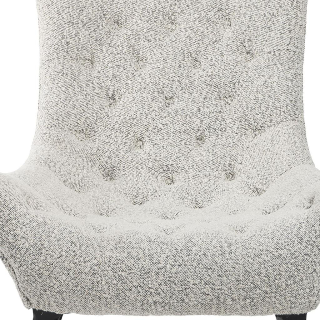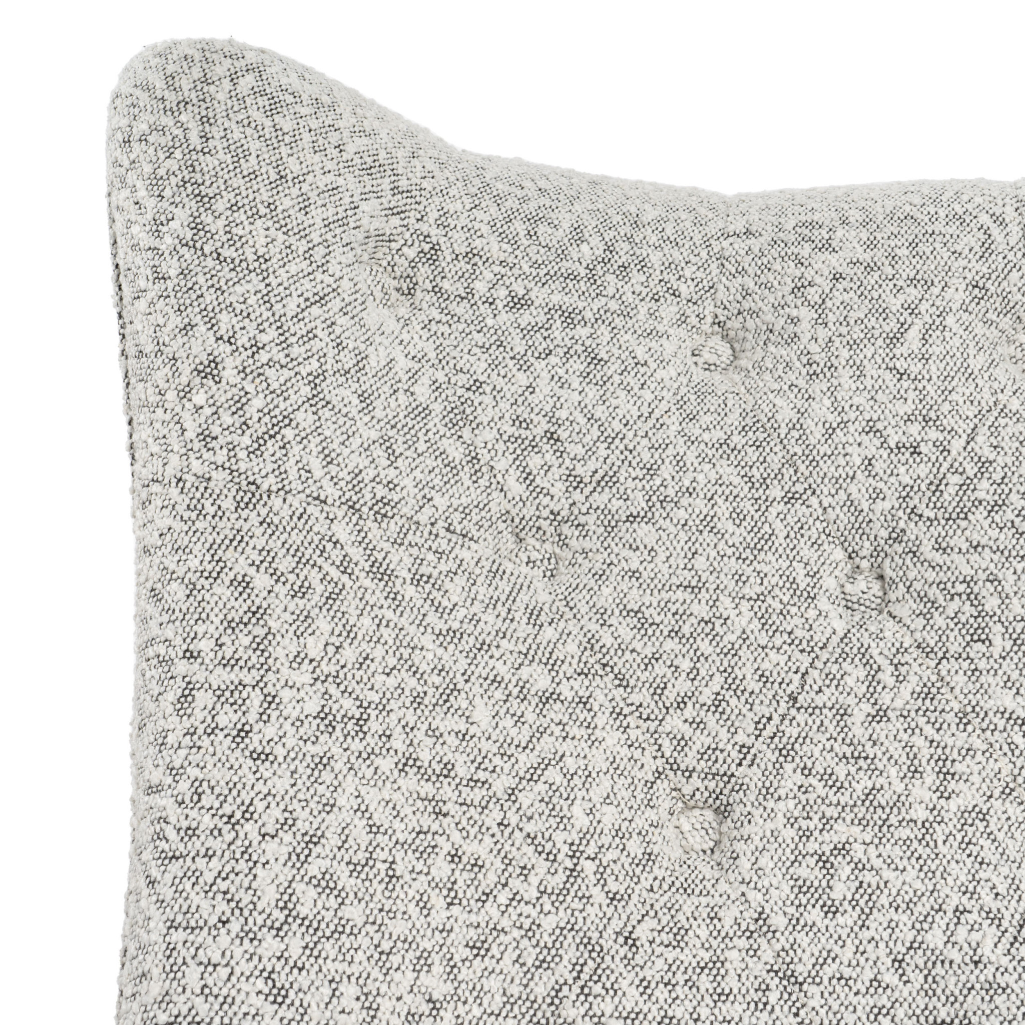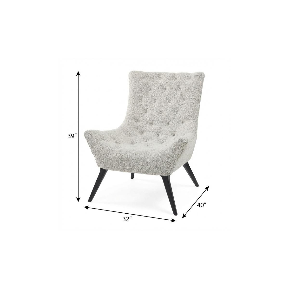 Give your living room, bedroom, or office a facelift with this beautifully crafted 32-inch gray and black tufted boucle lounge chair. This gorgeous armless accent chair is masterfully upholstered in durable button tufted boucle. The sturdy inner frame and legs is built with high quality solid wood, and is upholstered soft and comfortable cushioning. The textural boucle and retro shape give this chair a fresh and updated look. 39-inch h x 32-inch w x 40-inch d.