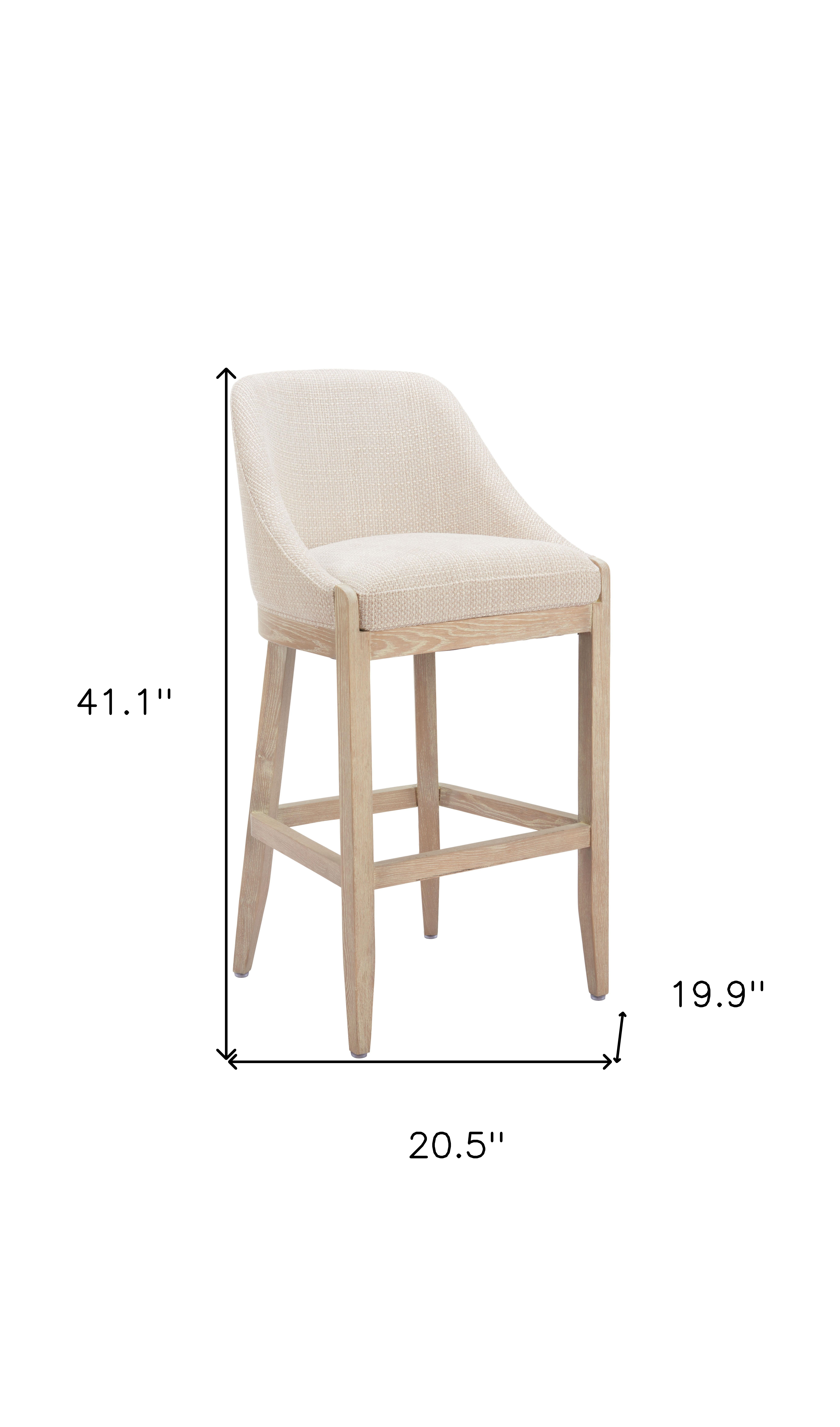 Comfortable enough to sit in for awhile, this 31-inch beige and natural fabric and solid wood bar height bar chair will transcend the look of your room. The base of this stool is made from solid wood in a natural color that is a nice contrast to the beige upholstered seat. Not only good looking and stylish, this chair features a bucket shaped seat and a full back for the ultimate in comfort and enjoyment. 41.10-inch h x 19.90-inch w x 20.50-inch d.