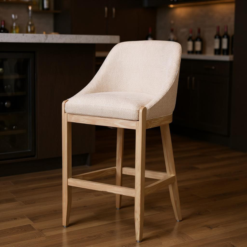 31" beige natural fabric, 31" beige natural fabric solid, beige natural fabric solid wood, wood bar height bar chair, natural fabric solid wood bar |