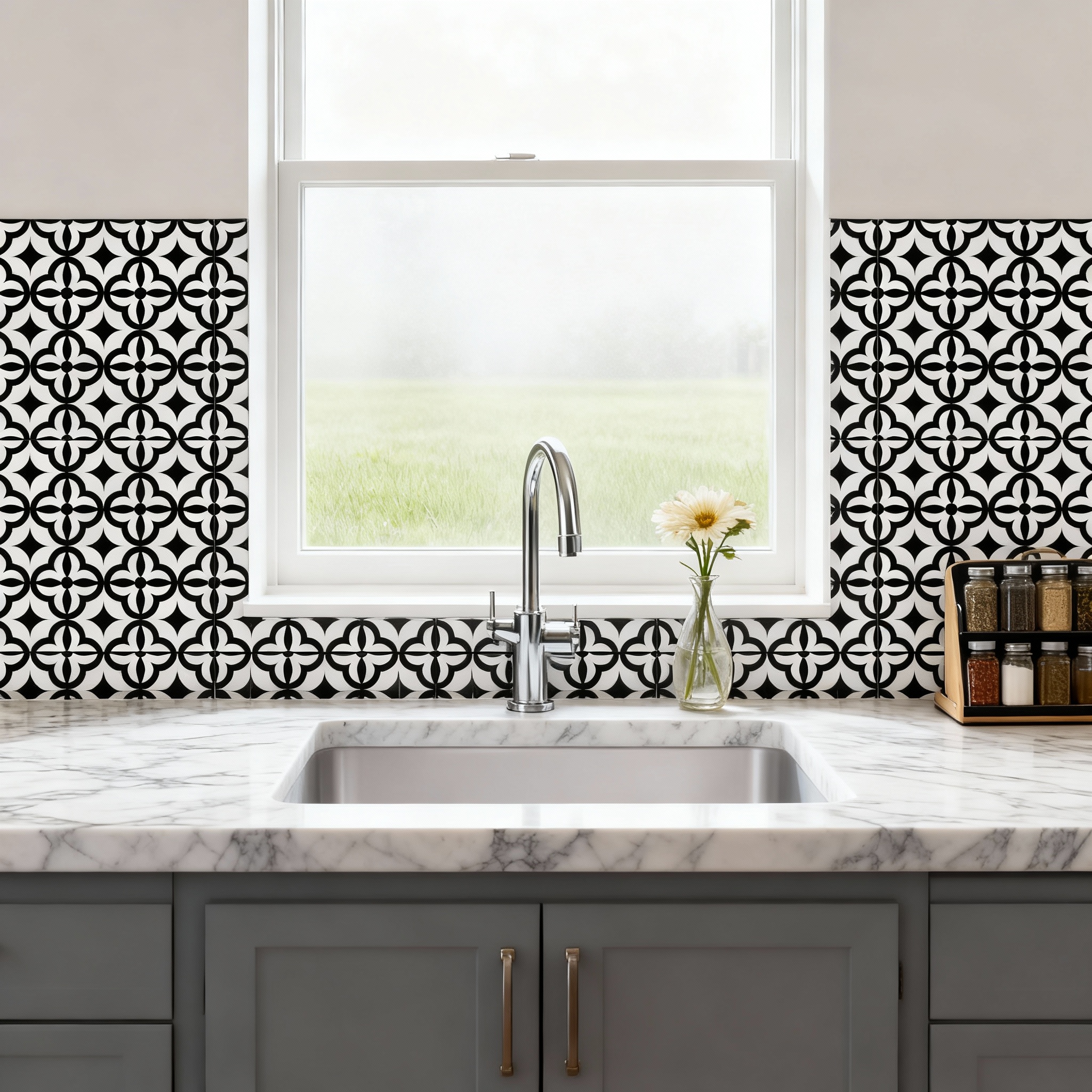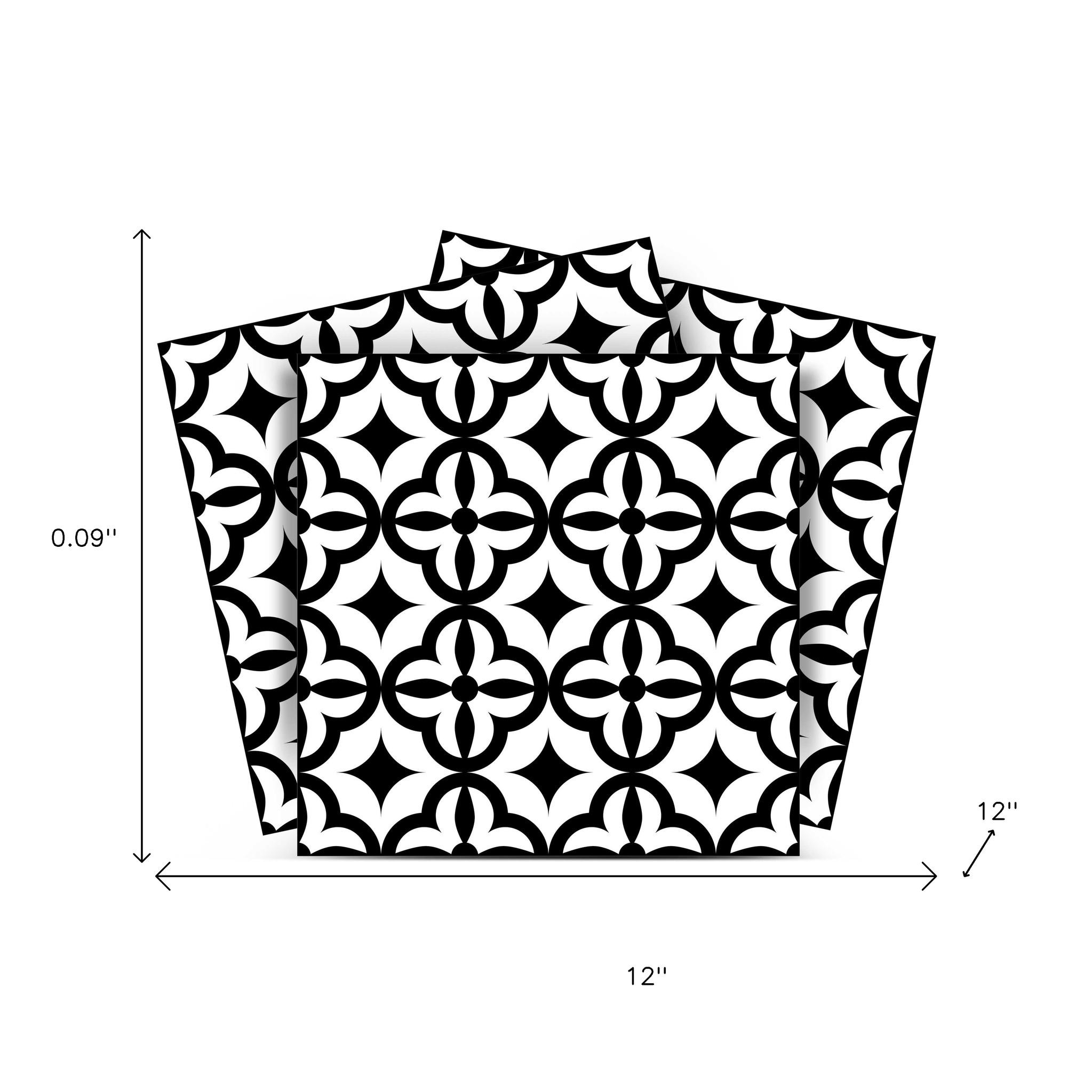 Enhance your space effortlessly with these 12-inch x 12-inch black vinyl arabesque peel and stick removable tiles. The mosaic pattern brings a touch of elegance, while the matte surface adds a subtle sophistication. Made of high-quality vinyl, these impervious tiles are not only water-resistant but also compatible in shower and on fireplace surrounds. The square shape offers a modern twist to any room, perfect for those who appreciate transitional style. Whether you're looking to revamp your kitchen backsplash or upgrade your bathroom, these versatile tiles make the process a breeze. Add a timeless charm to your home decor with these easy-to-install peel and stick tiles. 0.09-inch h x 12-inch w x 12-inch d.