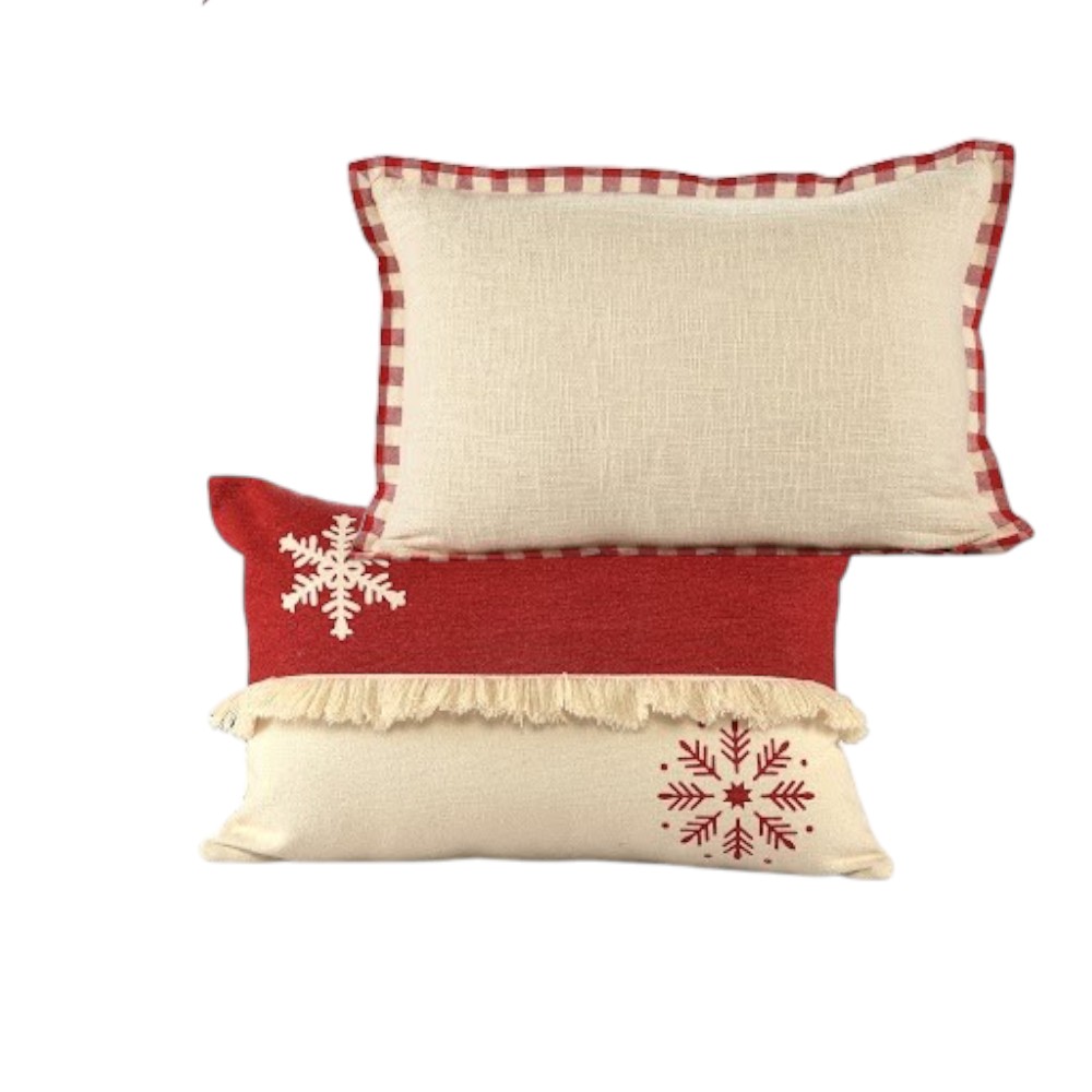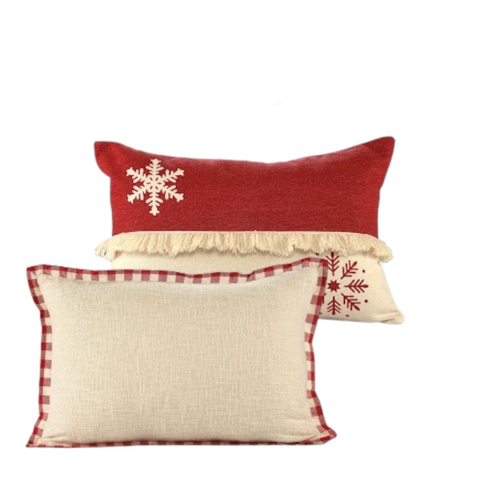 cotton throw pillow covers embroidery, pillow covers embroidery, throw pillow covers embroidery, plaid cotton throw pillow covers, 16" X 24" ivory red christmas plaid |