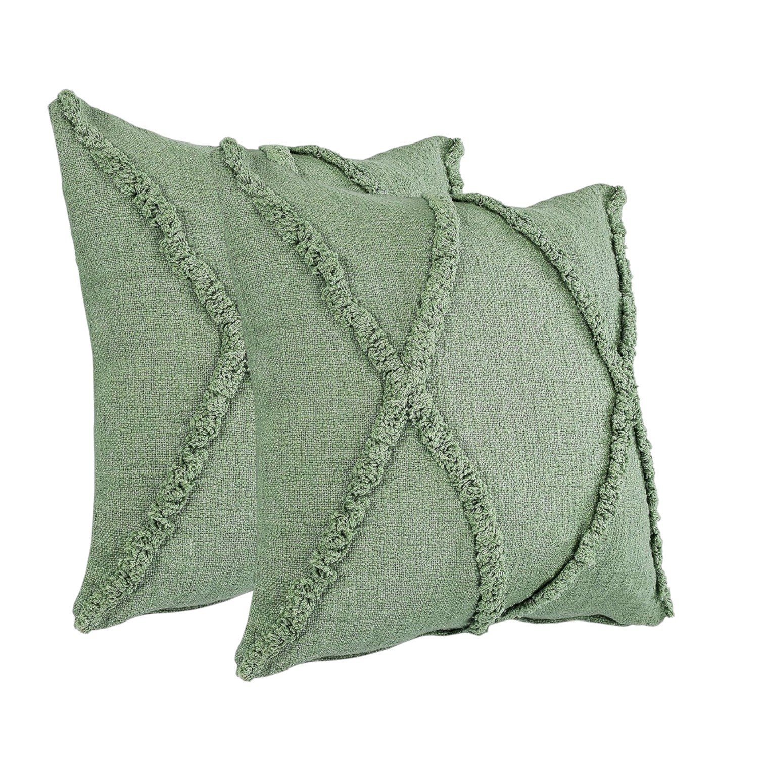 Add an air of fashion to your room and rejuvenate the space with this cute and fashionable set of two 20-inch forest green geometric throw pillows. The forest green coloring of the extremely durable and long lasting pillows will add dimension and texture to your space. This soft polyester filled pillow not only is decorative but made to be comfy and cozy all day long. For anyone that loves to decorate or accent their space with color and texture. Decorative throw pillows not only add color and dimension to your space but can be comfy and supportive when you are lounging and cuddling as well. 20-inch h x 20-inch w x 4-inch d.
