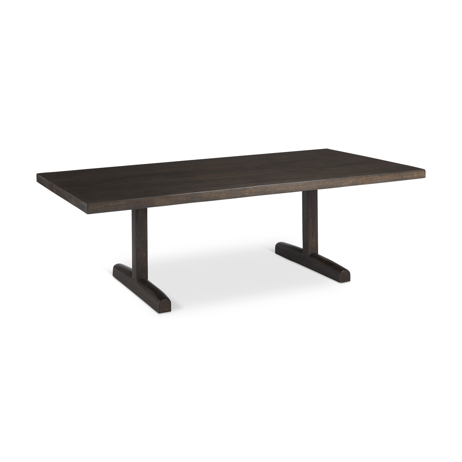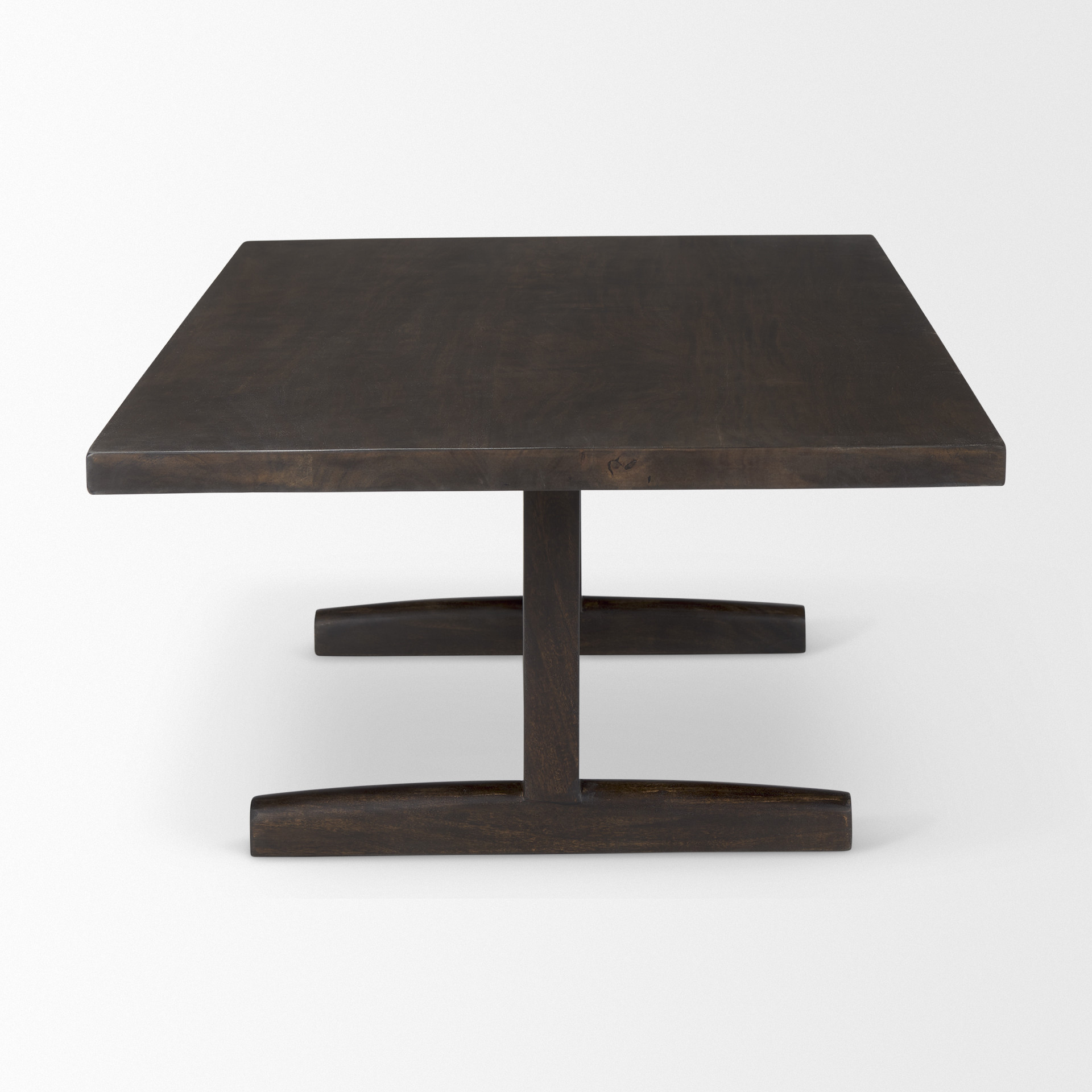 wood double pedestal coffee table, double pedestal coffee table, solid wood double pedestal coffee, brown solid wood double pedestal, 55" dark brown solid wood |